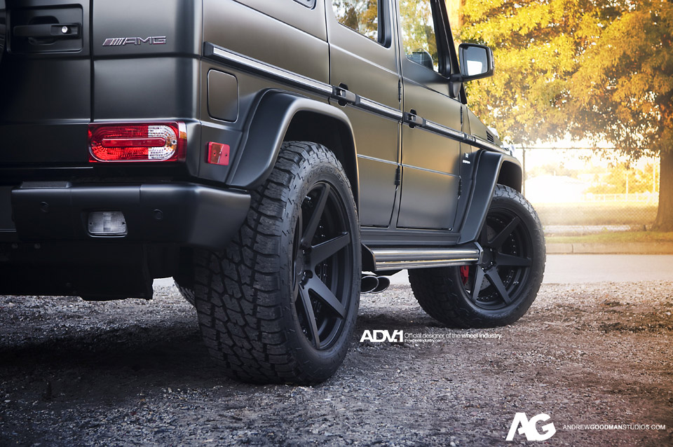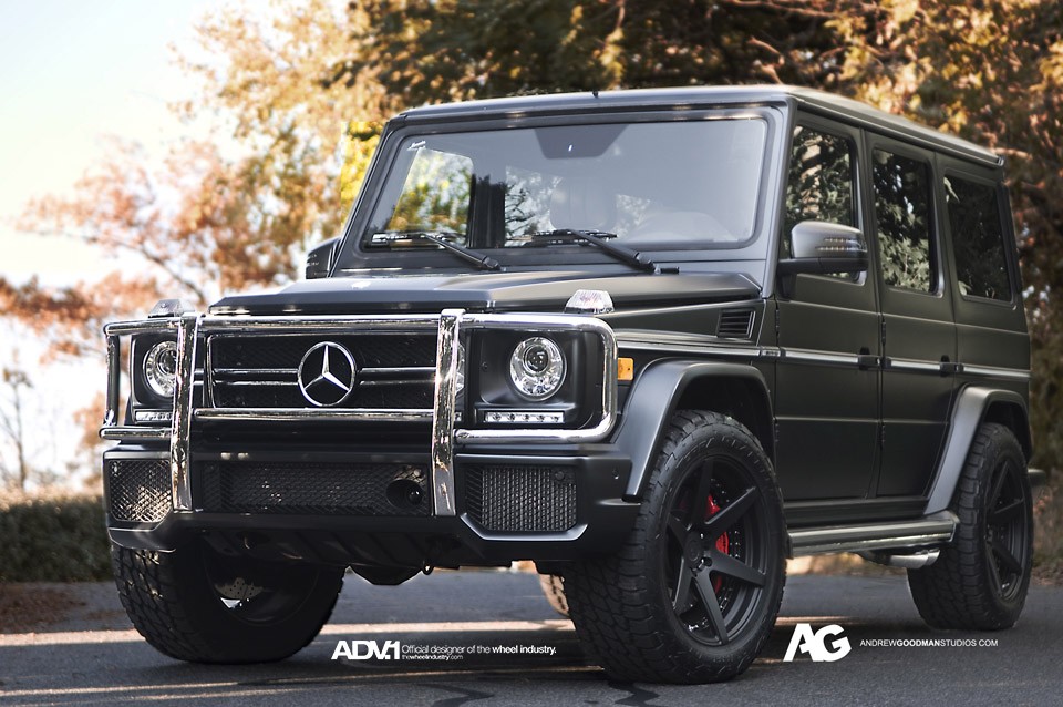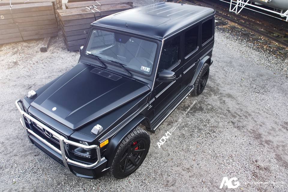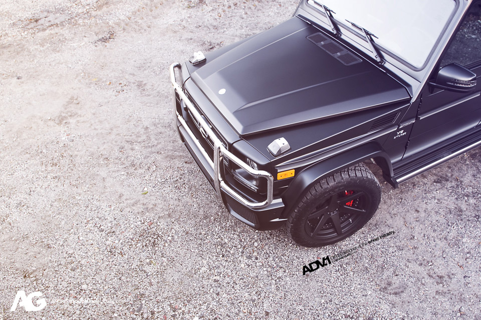 2013年款式的Mercedes Benz G63 AMG擁有全新設計的前保桿、水箱護罩與側邊排氣管等特徵,內裝質感更是大幅度地提升,粗曠的行車風格配上奢華精緻的內裝,讓人有種跳tone感受,難怪讓許多資深玩家愛不釋手。本文主角則是以消光黑色車身亮相,並且裝上原廠打獵價營造出相當獨特的車頭氣勢。輪圈方面,該車選用知名品牌ADV.1 Wheels出品、型號ADV6MV2的20吋輪圈搭配高扁平比的巧克力胎,造型粗曠帶點軍事風格,似乎在暗示著它能撫慰車主偶爾有off-road需求的靈魂。