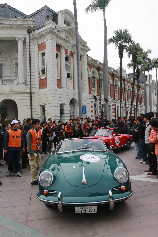 首日古董車行經路線,從總統府出發後,繞行圓山飯店,之後直達新竹縣政府廣場。在廣場中進行的精準控時測試,由於屬於動態展示的型態,參觀者可以聞到古董車的油氣味、聽到古董車引擎的運轉聲浪,以及古董車奔跑時的姿態,因此帶給現場觀眾的感受與靜態展示截然不同。在新竹縣政府廣場稍事停留後,古董車隊再前往台中舊市政府廣場。在此地古董車受到熱情車迷的包圍,古色古香的舊市政府建築搭配古董車,彷彿重現昔日之綺麗風華。