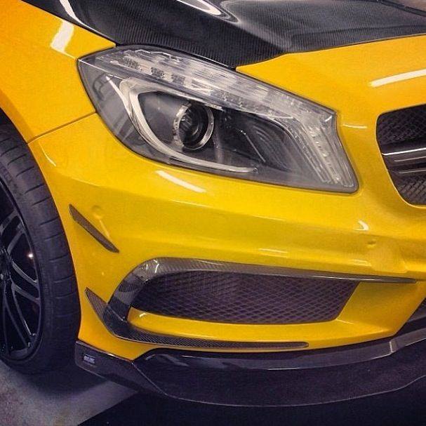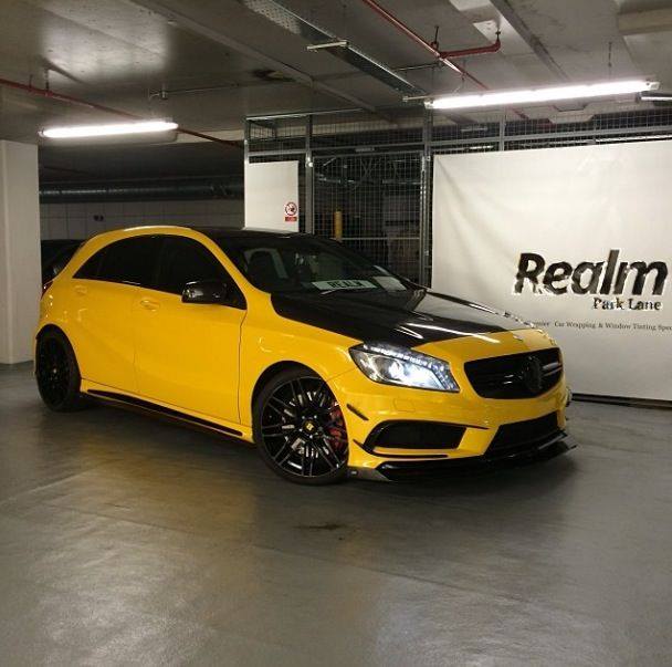 再者,這部Mercedes Benz A45 AMG透過車身包膜工程將顏色轉變成極具有Black Series風格的鮮黃色,另外換裝Brabus輪圈、黑色水箱護罩、RevoZport碳纖維前下巴、引擎蓋、後視鏡飾蓋、側裙組、後上擾流尾翼與後下擾流板等部品,並將煞車卡鉗施以紅色塗裝。代號W176的Mercedes Benz新生代鋼砲無疑是近年來期待度最高的車款之一,搭載2.0升渦輪增壓四缸引擎,原廠最大馬力為驚人的360HP,百里加速僅需4.6秒便可達成,而改裝廠RevoZport則是在第一時間開發出專屬於A45 AMG的空力套件,動力部分也有電腦程式與進排氣系統等相關套件,在尚未以官方資訊方式發表之前,知名汽車媒體Shmee150先以短片方式呈現,讓我們來一起欣賞以下影片。