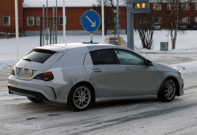 測試中的2015 Mercedes-Benz CLA Shooting Brake跑旅車款,被捕捉到其在雪中測試的身影,這也是她第一次被拍到。 雖然我們都知道CLA Shooting Brake將會看起來像是什麼樣子,透過其相當輕度的偽裝,我們可以感受到這輛原型車仍然相當運動化,從尾門的設計看到其尾燈幾乎毫不遮掩,與一般版本的CLA sedan有很大的相似性。 在引擎蓋之下,Mercedes-Benz CLA Shooting Brake將使用與一般版本的CLA-Class相同之動力鏈,包括1.5升柴油引擎擁有109hp最大馬力、1.8升柴油引擎擁有136hp、2.1升柴油引擎擁有170hp、2.0升引擎擁有211hp,據了解沒有意外的話她也將獲得AMG套件的支援,就像是CLS 63 AMG Shooting Brake一般,如果真的出現,預料其表現將與CLA 45 AMG擁有相同之表現。Mercedes-Benz CLA 45 AMG幾乎與Mercedes-Benz A 45 AMG釋出於同一時間,兩輛車都擁有2.0升渦輪增壓四缸引擎支援,都能夠壓榨出360 hp最大馬力,也就是說除了在車體外觀之外,他們幾乎是一模一樣的。