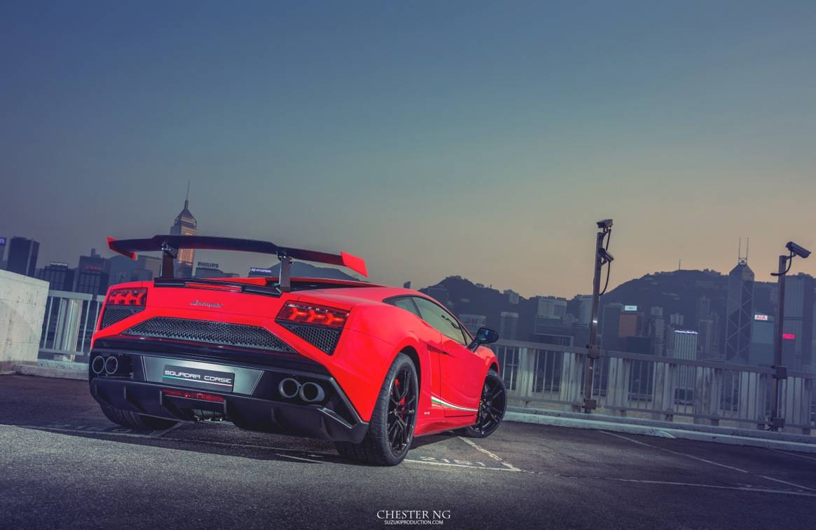 今天帶給各位的是一部已經抵達香港(Hong Kong)、車身為Rosso Mars紅色塗裝的Lamborghini Gallardo LP570-4 Squadra Corse,由攝影專家Chester Ng拍攝精美圖片,乍看之下頗像於本地人氣頗高、俗稱 "小紅牛"、全球限量150部的紅色Lamborghini Gallardo LP570-4 Super Trofeo Stradale。附帶一提,Lamborghini Gallardo LP570-4 Squadra Corse搭載5.2升V10自然進氣引擎,最大馬力為與前代Superleggera相同的570HP,車重同樣為1,340公斤,輔以四輪傳動系統與E-Gear變速箱,百里加速僅需3.4秒、由靜止加速至時速200km/hr僅需10.4秒。