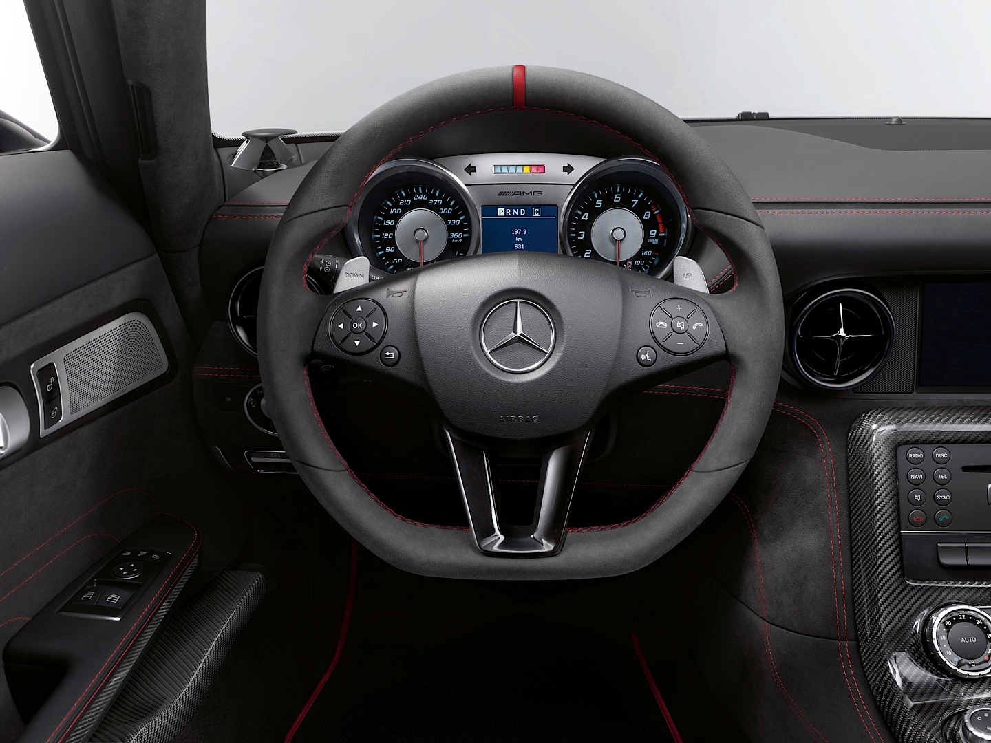 附帶一提,Mercedes Benz SLS AMG Black Series搭載代號M159的6.2升V8自然進氣引擎,最大馬力為631HP,扭力可達64.3kgm,百里加速僅需3.6秒,並且於紐柏林賽道(Nürburgring Nordschleife)繳出7分25秒的佳績,恭喜這部Black Series首腦!
