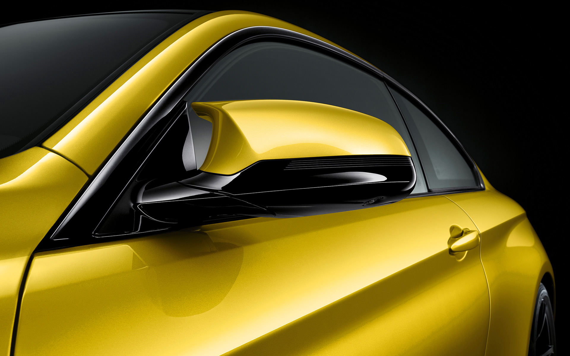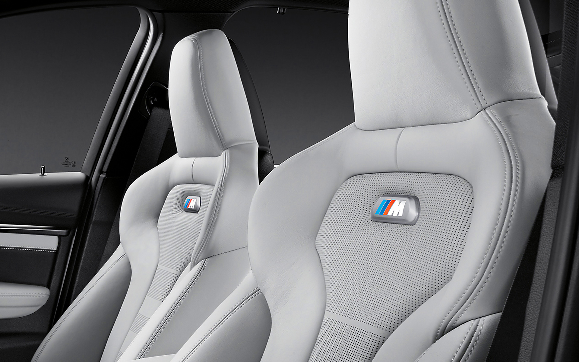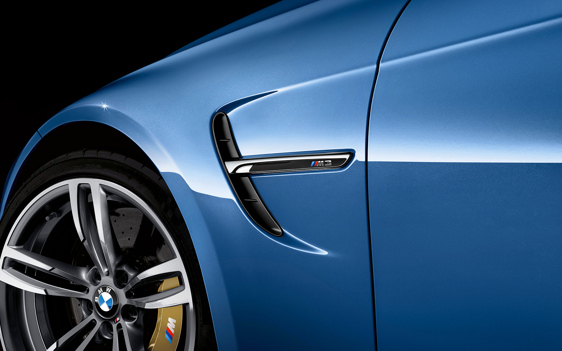 外觀部分,原廠選擇Yas Marina Blue淺藍色的四門車款M3與Austin Yellow芥末黃色的雙門跑車M4進行官方發布,兩者皆搭配19吋型號style 437 M的五幅雙肋式輪圈,這款輪圈目前僅有銀/槍灰雙色與黑色兩種塗裝供選擇。內裝方面,四門車款M3以Silverstone Merino灰銀色真皮包覆,而雙門跑車M4則是以標準的Black Merino黑色真皮內裝現形,而目前官方僅公布數種內裝材質的搭配,包含競技風格濃烈的碳纖維飾板。值得一提的是,在前座座椅方面,新款式的M3與M4極具誠意,雖然目前還不知道包覆性如何,但至少在造型上,比起上一代被譽為沙發座椅的配置,熱血許多。相信在不久的將來,連同M Performance部品等選配項目將會陸續公布。