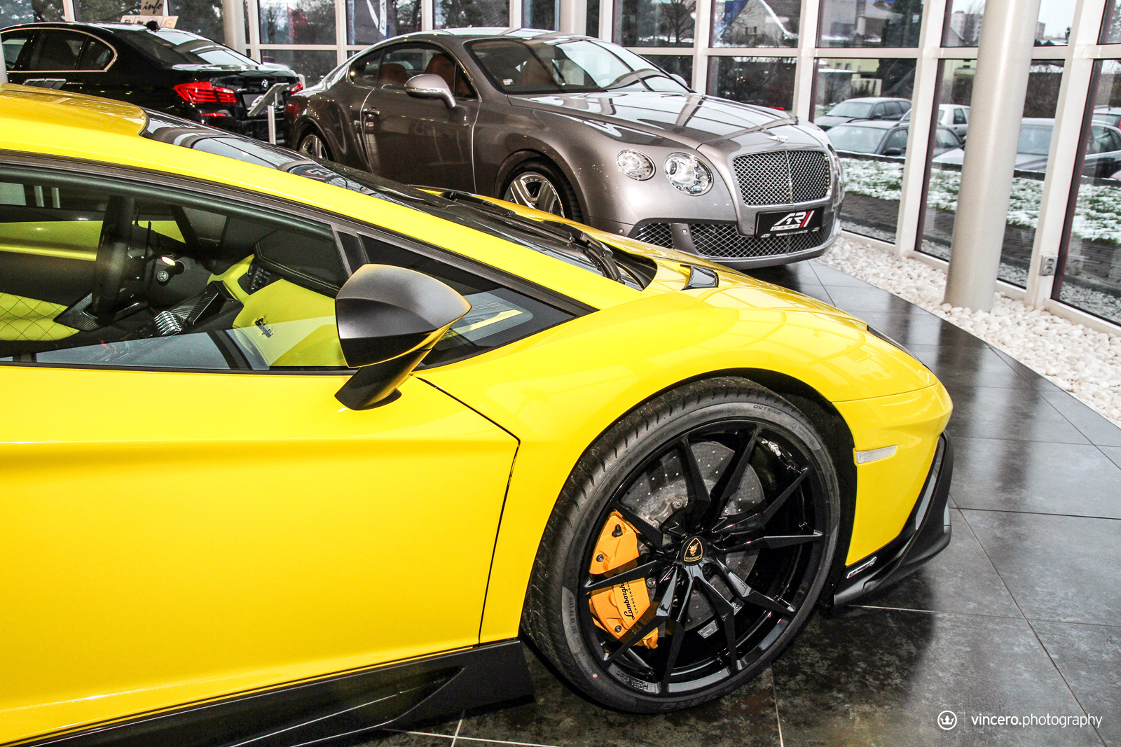 Lamborghini為了慶祝品牌滿50周歲而打造了全球限量100部的Lamborghini Aventador LP720-4 50° Anniversary,搭載與普通版本Lamborghini Aventador LP700-4同樣的6.5升V12自然進氣引擎,透過原廠技師的精密調校將最大馬力提升至720HP,扭力達到71.6kgm,百里加速僅需2.9秒便可完成。 這部Giallo Maggio黃色塗裝的Lamborghini Aventador LP720-4 50° Anniversary是全球限量100部當中、今年生產的第九部,其限量編號為70,含稅報價504,560歐元。