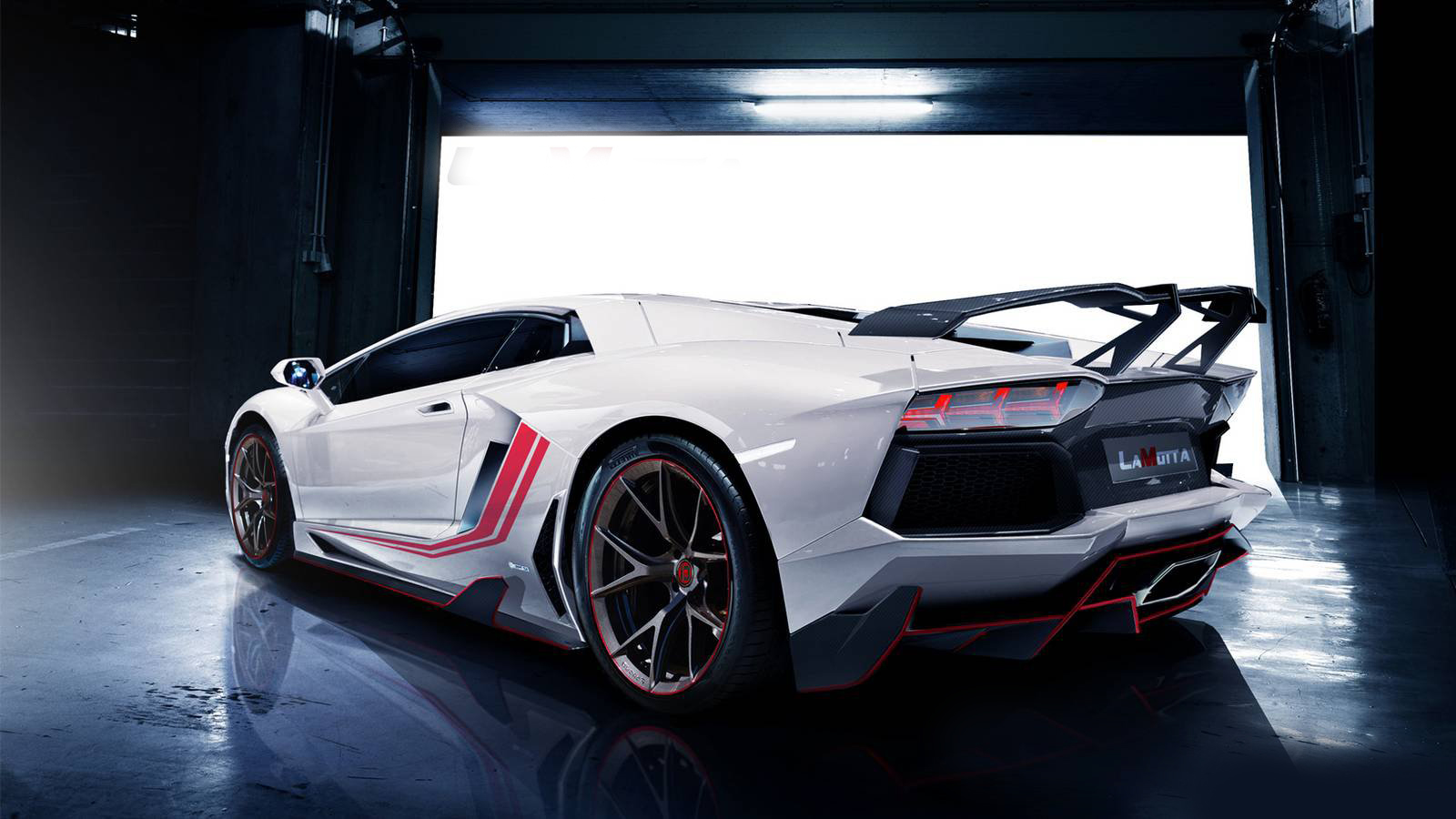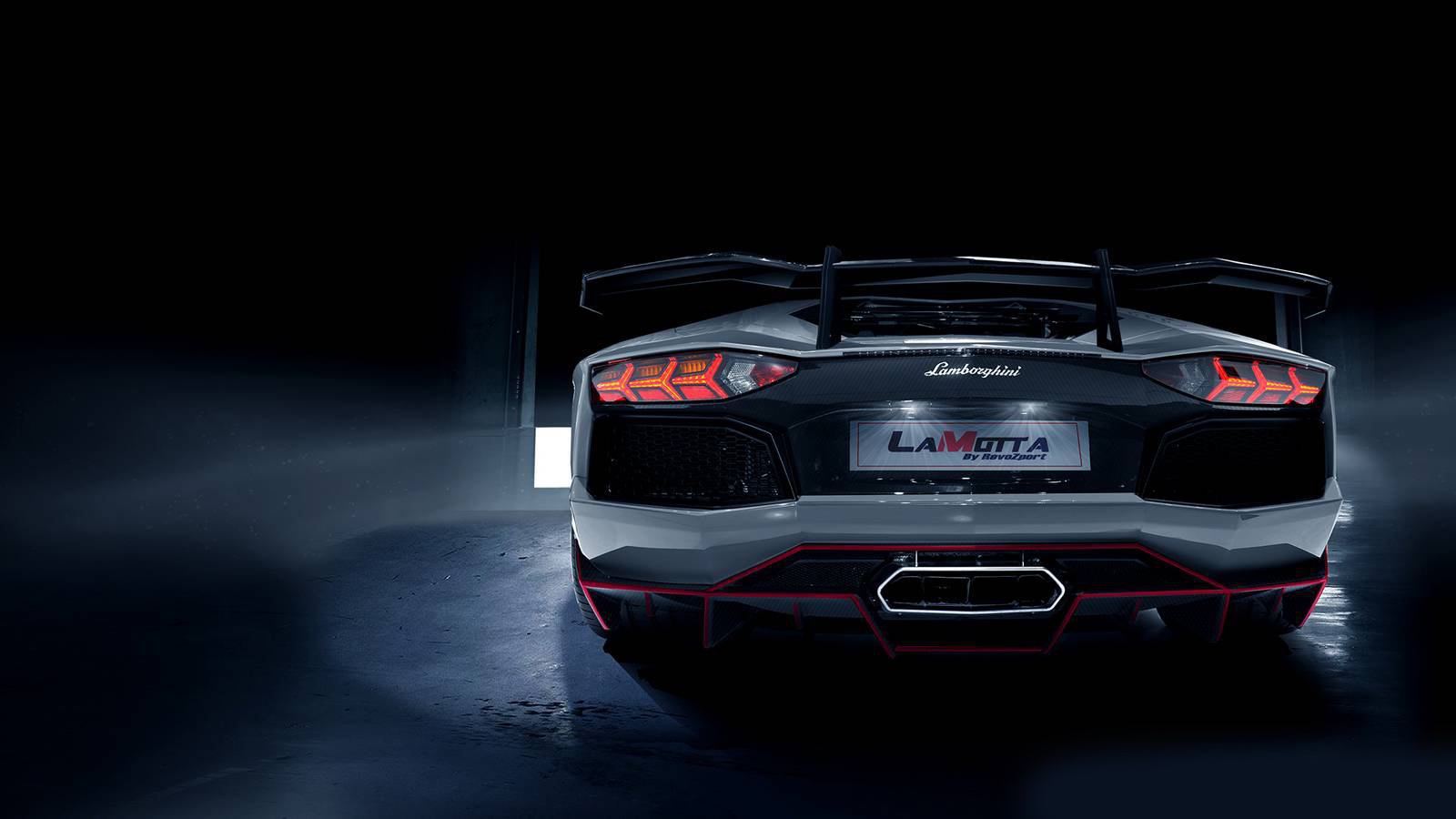 RevoZport改裝專家最近把腦筋動到Lamborghini Aventador上頭,在幾張關於該車的照片公布後的幾週今天,他們終於正式揭開了這輛820hp LaMotta的真面目,這一輛狂氣大牛以靈活、力量以及有型外觀為標準來打造,而這輛車不僅僅是在外觀上著墨,事實上其一切外觀套件都擁有其實質功能性,事實上這項作品的首要工程就是去除不必要的重量並且增加其額外之下壓力以及直線速度的提升。 而未了達成以上的這些目標,首先他們從LP700身上削去了80kg,使的其重量剩下1520kg,這80kg要減少可不太容易,主要是採用碳纖維套件去取代原有鈑件,諸如剩下3kg重的引擎蓋、美麗的Alcantara碳纖維座椅、碳纖維門板、全新設計的前後保險桿等等,才能削去這80kg的重擔。