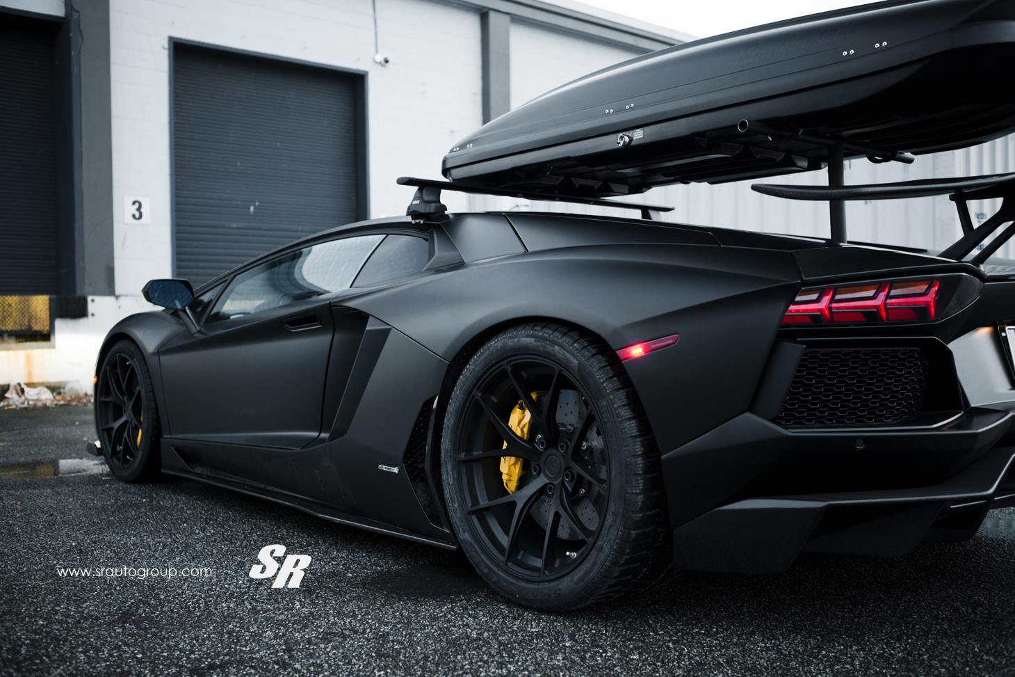 改裝廠SR Auto Group將這部Aventador取名Project 700 Winter Mode,除了車身外觀採用消光黑色塗裝以外,這部Lamborghini Aventador還裝有PUR Aero空力套件,包含碳纖維前下巴、側裙組、後上擾流尾翼與後燈飾板等部品,輪圈則是選用PUR Wheels出品、型號4OUR的黑色塗裝款式,尺寸為前19x9.5J、後20x12J的前後配規格,配上前255/35R19、後335/30R20的Pirelli Sotto Zero高性能雪地專用跑胎,另外透過專用懸吊組將車身略為降低,刻意downsize的輪圈規格與雪胎配置顯示Thule雪橇盒絕非僅是裝飾品而已,且我們相信它必須是耐得起動輒300km/hr以上強風吹襲的優質品,這樣的滑雪蠻牛,各位覺得如何?