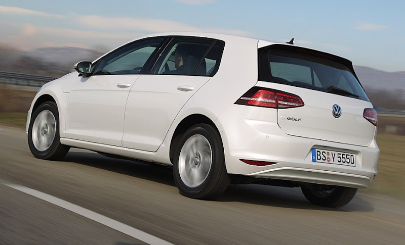 日內瓦車展上,VW最新世代Golf MK7電動車Golf-e,將與自家最新款性能鋼砲Golf R一起展出。當然Golf R是注重性能的汽油車款,但身為全球熱賣款的一員,Golf必須回應電動車的熱潮。在2010年的時候,VW即聲明將在2013年加入電動車或是油電混合車的生產行列,旗下Golf當然率先上陣參予名為Blue-e-Motion的計畫。根據消息指出,Golf-e的動力輸出約為85kW馬力與270Nm扭力,百里加速需要12秒,算是可接受的範圍內(畢竟這不是Tesla)。極速可達175km/hr,這比起Nissan Leaf的160km/hr高些。Golf-e雖然身背205kg的電池的狀況下,但因為空間配置妥當,不會犧牲後行李箱容積。在充電方面,如果用專用充電設備,充飽僅需20分鐘,而自家的插頭則需大約5小時。看來,我們離接插頭充電的時代更近了。