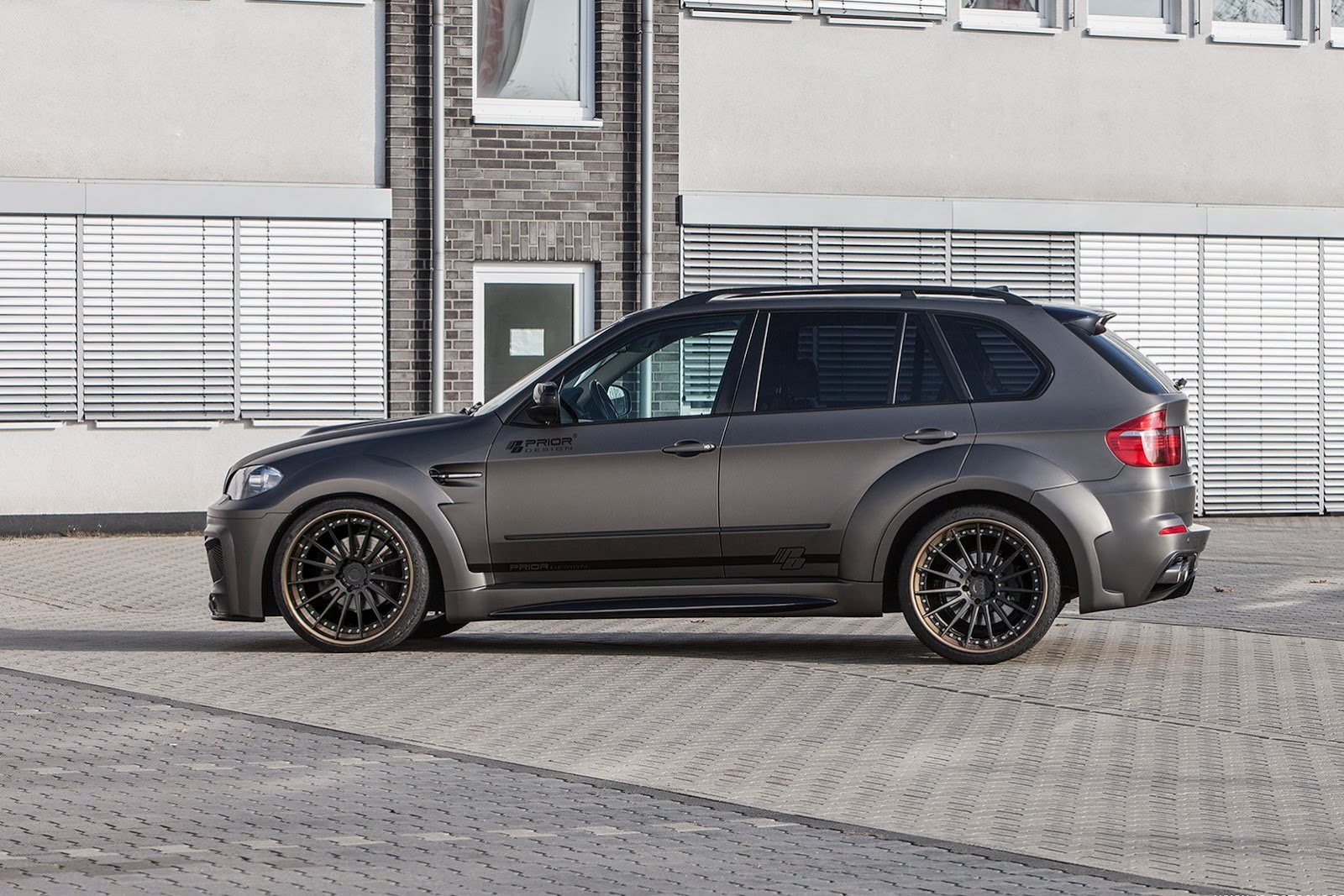 今天要帶給各位的是一部由知名改裝品牌Prior Design所操刀的BMW E70 X5M,換裝全車寬車體套件,包含全新設計的前保桿、開孔式樣引擎蓋、側裙組、前下巴、後保桿與後下擾流版等部品,輪圈則是搭配ADV.1放射狀款式,再加上透過高低軟硬避震器組而降低的消光灰色塗裝車身,霸氣盡現。