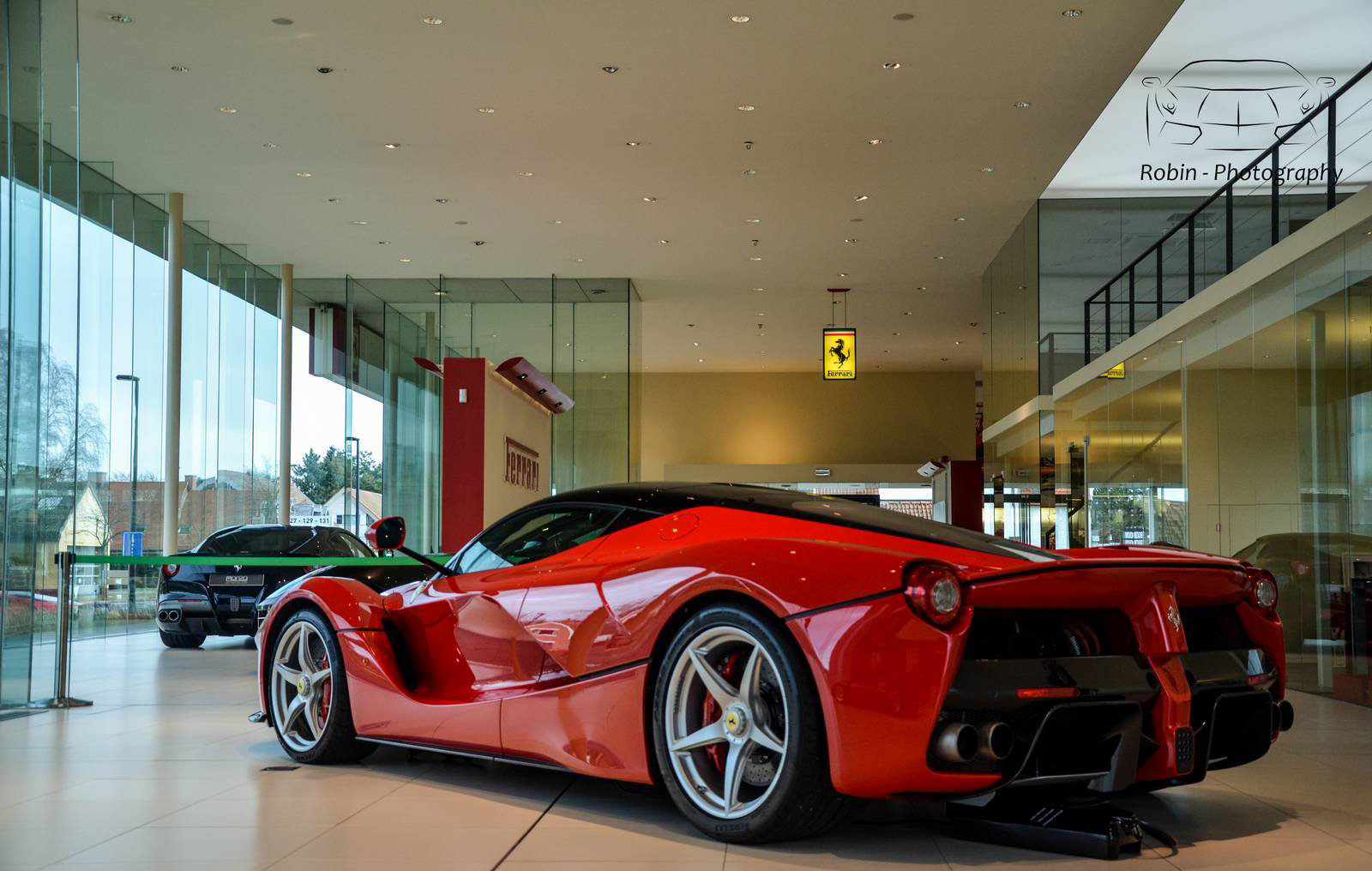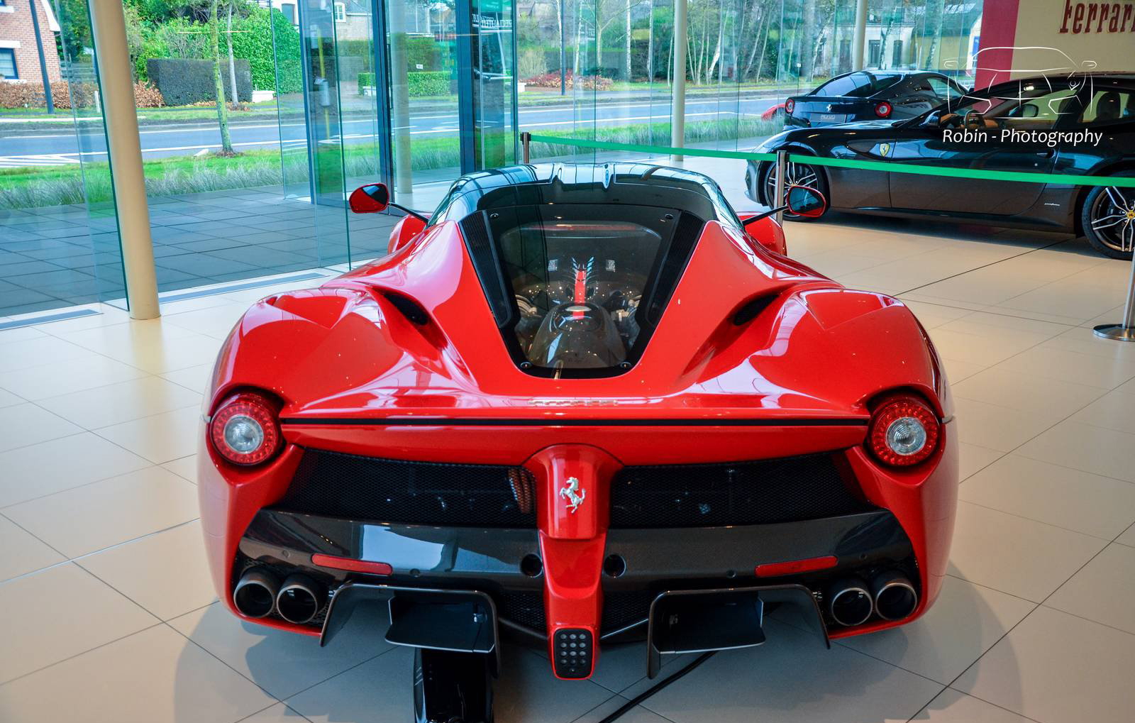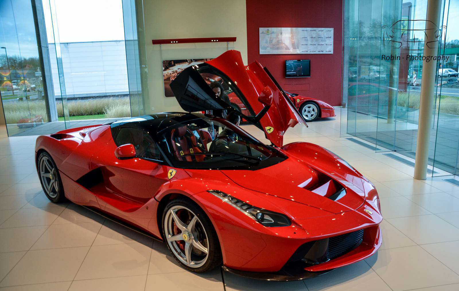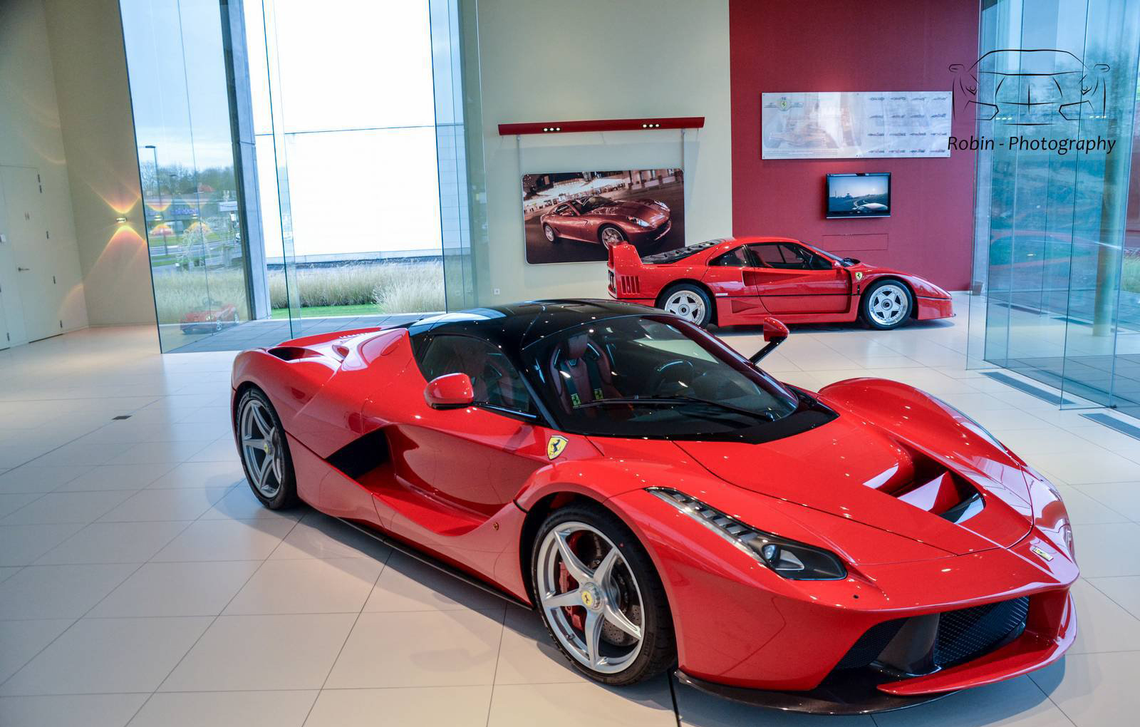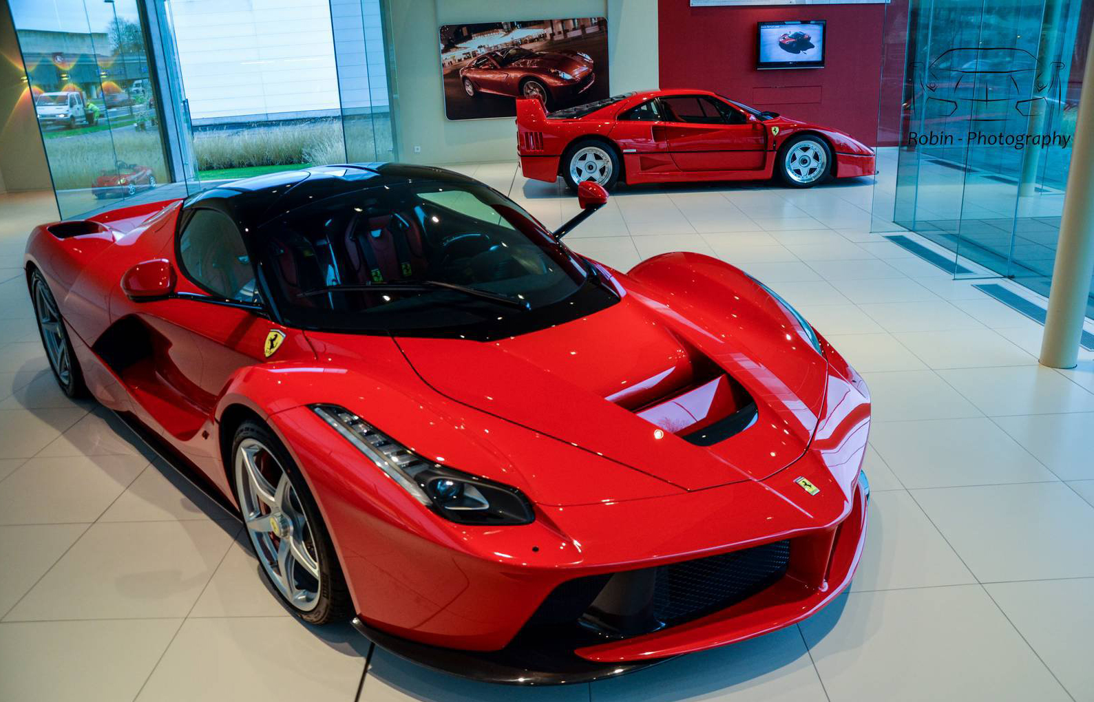 那麼我們先來觀賞Ferrari比利時(Belgium)代理商剛納入庫存的Ferrari LaFerrari,正在位於Saint Denis Westrem的展示間內與Ferrari F40、Ferrari FF與Ferrari F12 Berlinetta等車款相伴、靜候車主前往交車,而其與同樣為當時旗艦車款的經典Ferrari F40同場的畫面也屬難得。