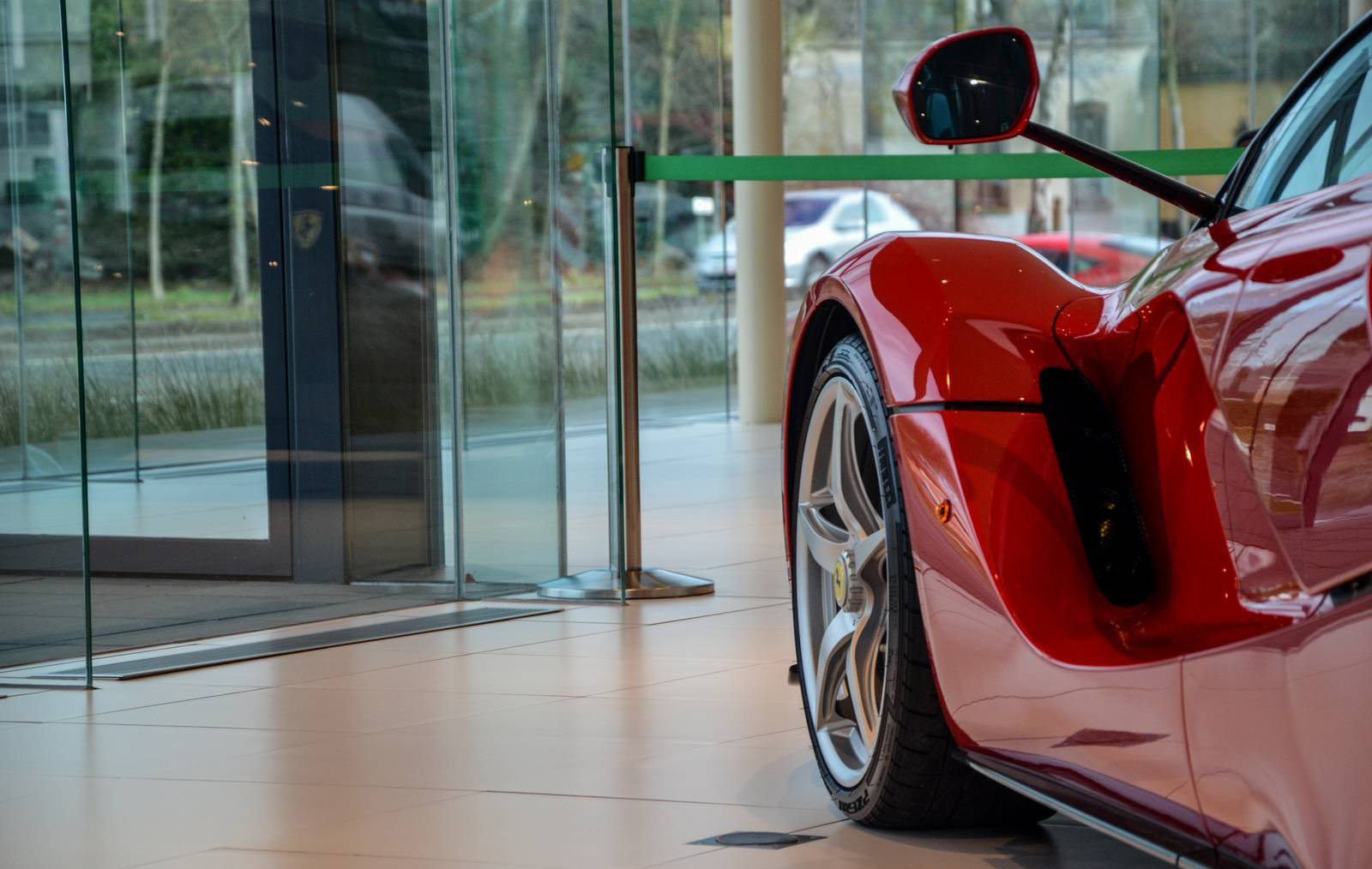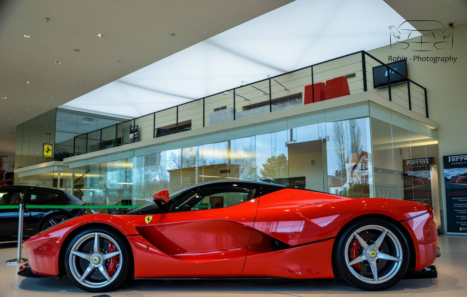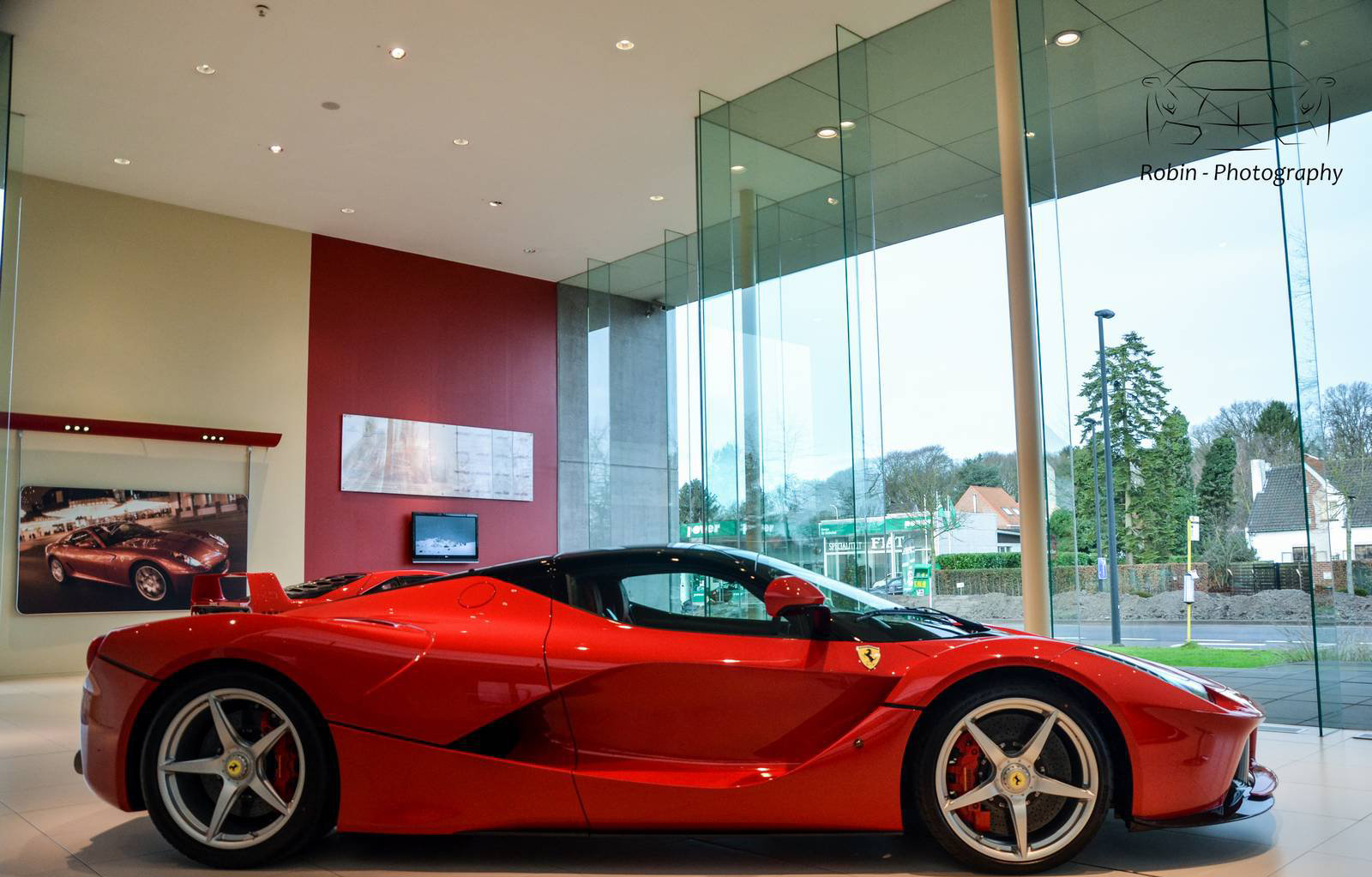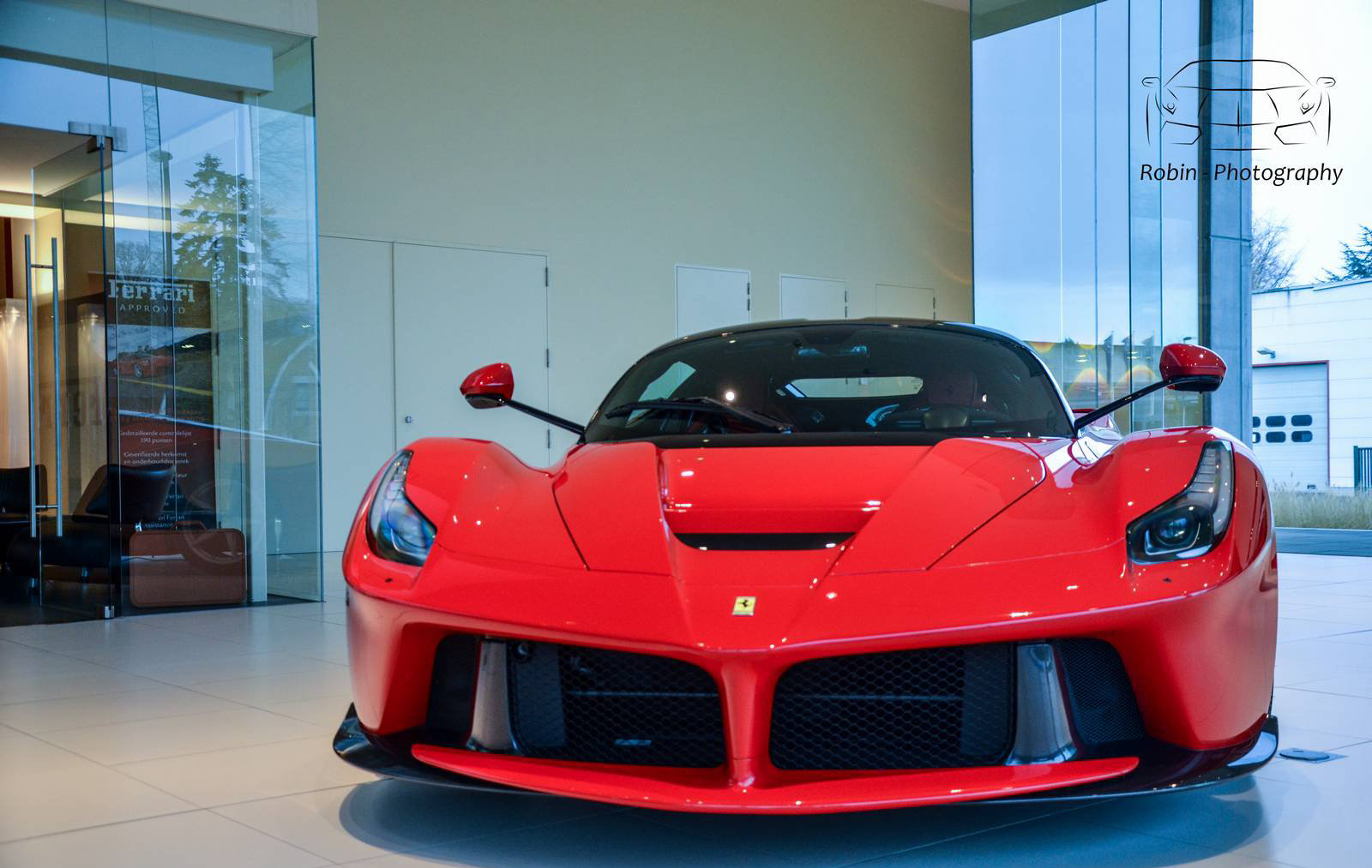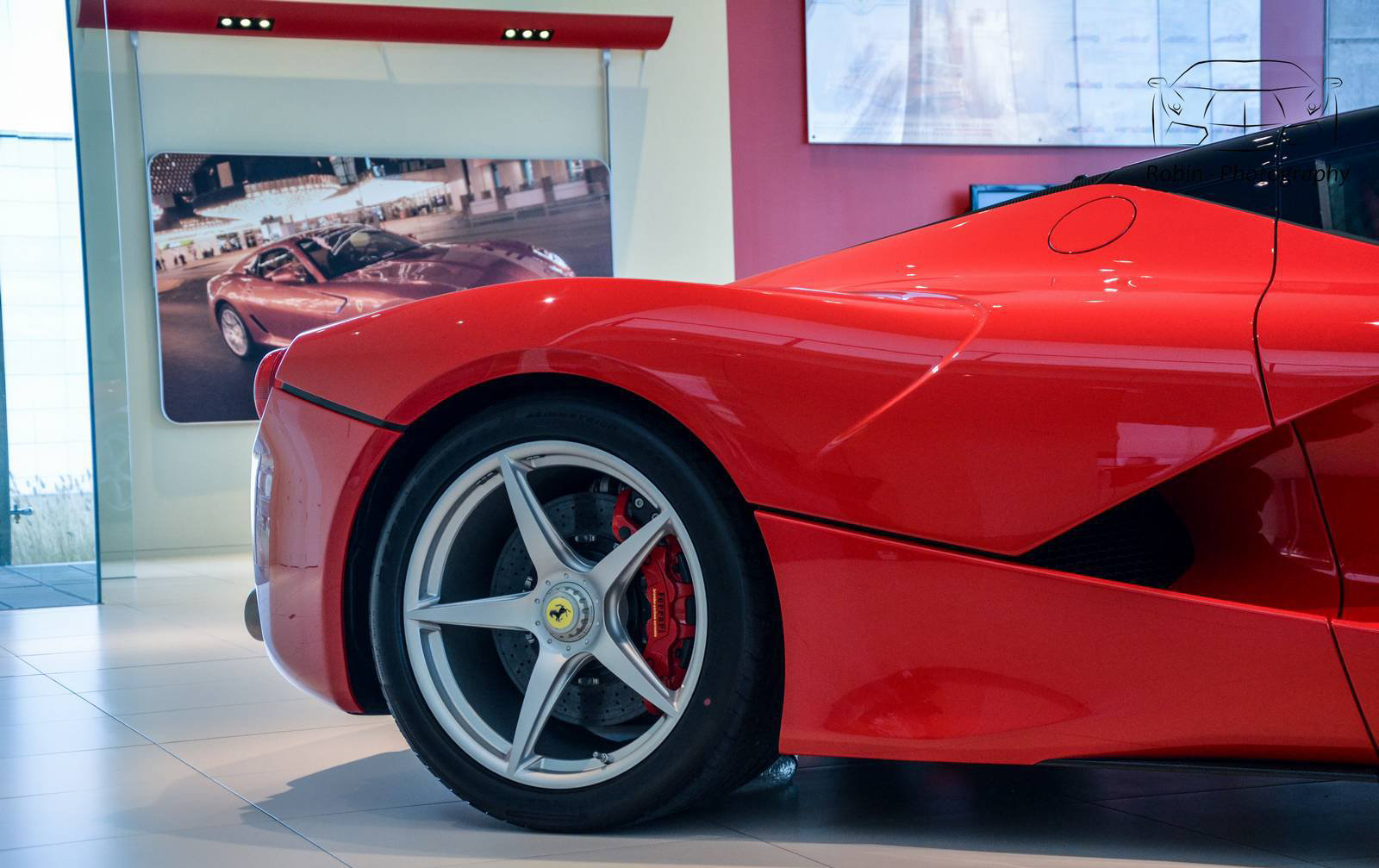 那麼我們先來觀賞Ferrari比利時(Belgium)代理商剛納入庫存的Ferrari LaFerrari,正在位於Saint Denis Westrem的展示間內與Ferrari F40、Ferrari FF與Ferrari F12 Berlinetta等車款相伴、靜候車主前往交車,而其與同樣為當時旗艦車款的經典Ferrari F40同場的畫面也屬難得。