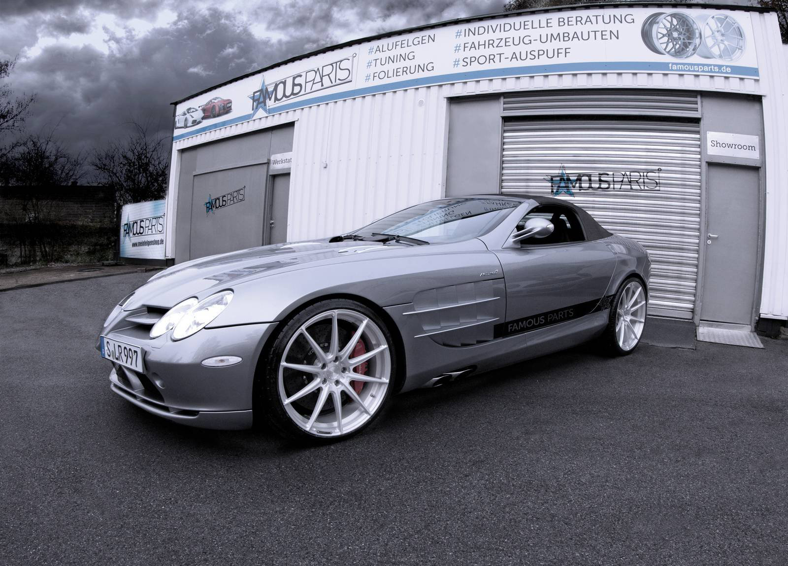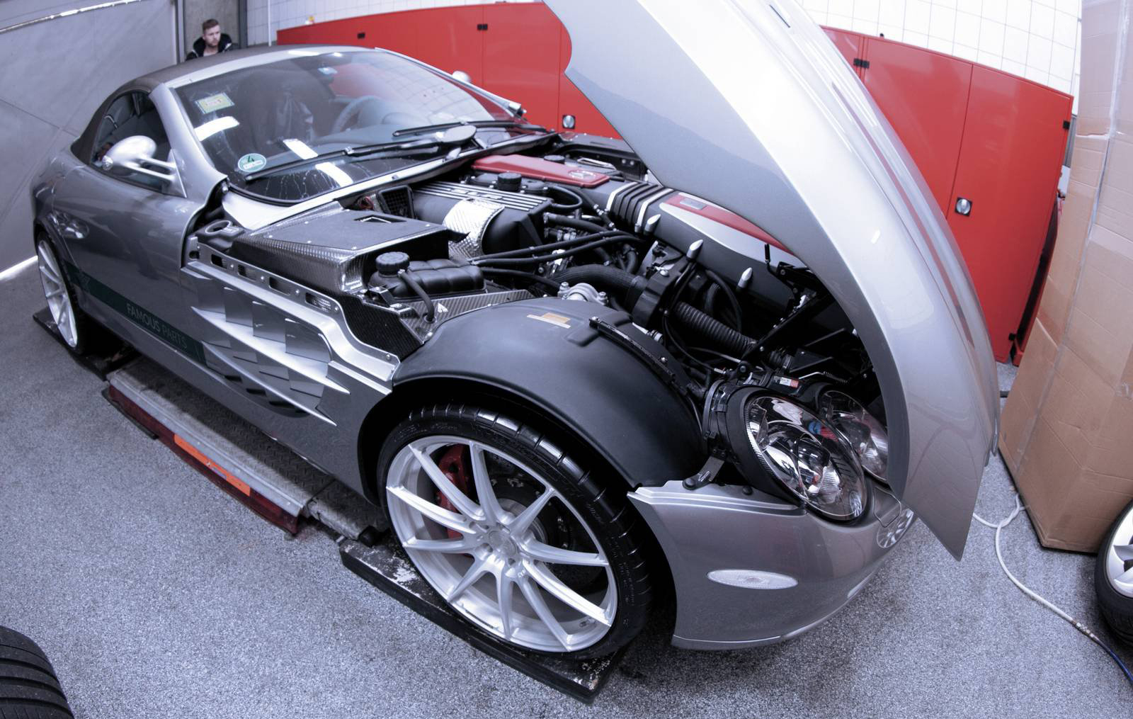 今天帶給各位的是一部敞篷版本的Mercedes Benz SLR McLaren Roadster,針對動力表現,德國改裝廠Famous Parts並未進行強化步驟,而是以底盤強化為主要項目,輪圈選用知名品牌ADV.1 Wheels出品、型號5.2 MV2 SL的輕量化款式,尺寸為前20吋、後21吋的配置,另外換裝KW高低軟硬可調式避震器組,在保留著經典外觀與動力的前提下,將這部膾炙人口的獨有車款調校得更好駕馭。