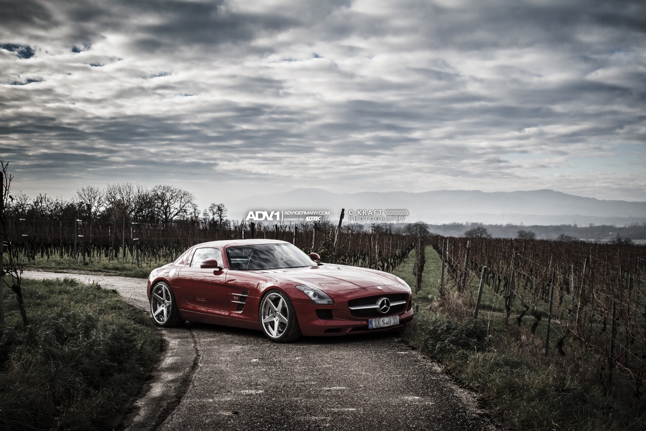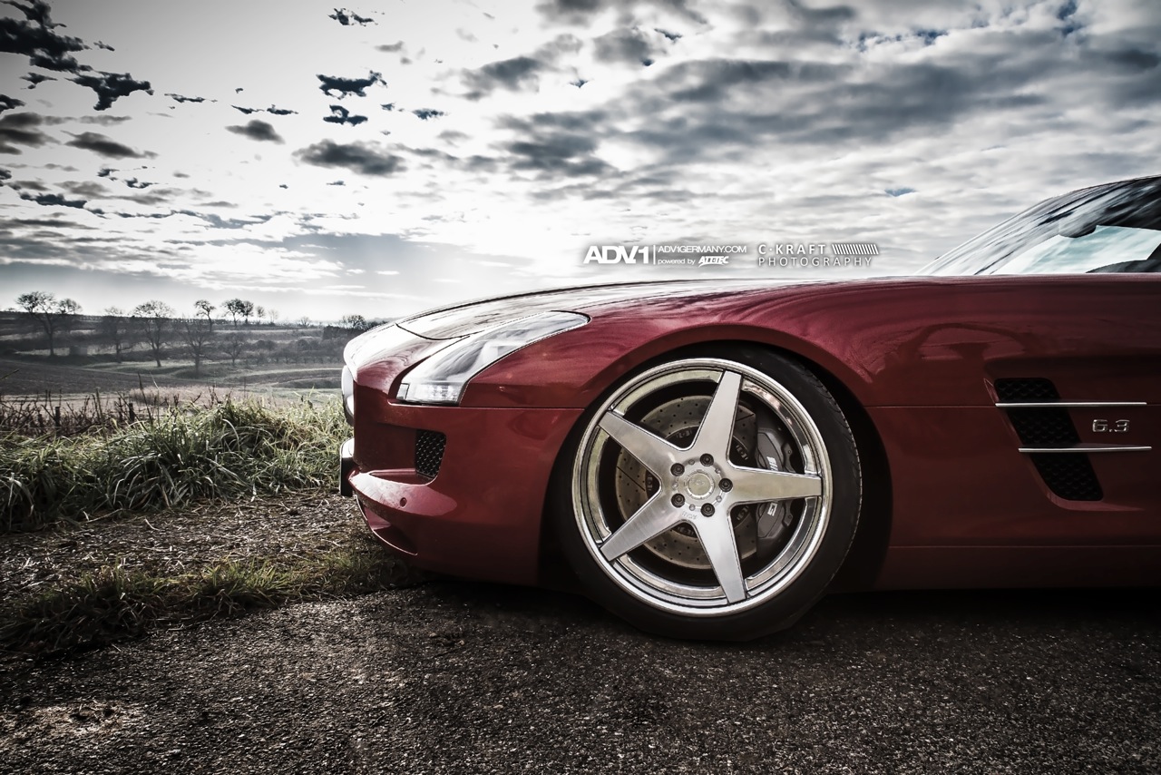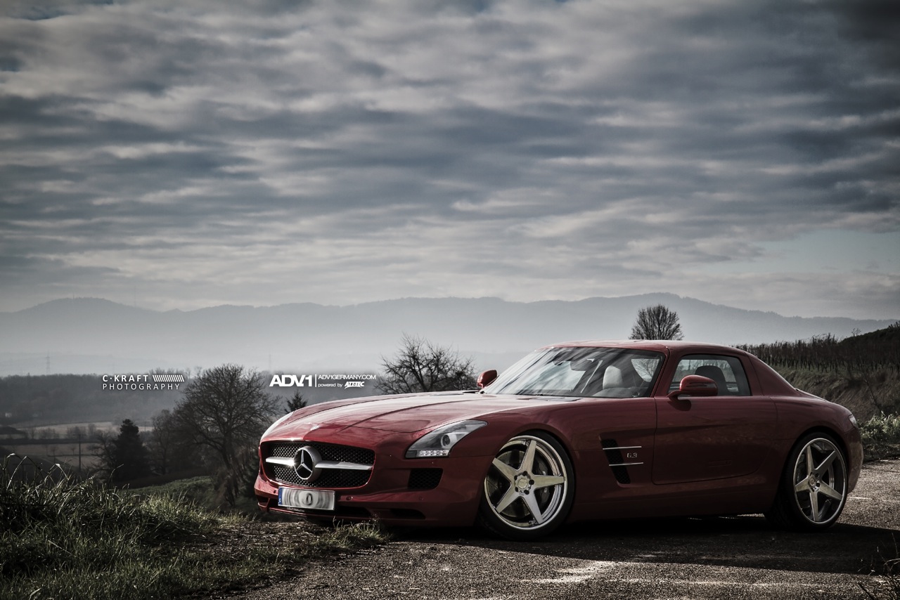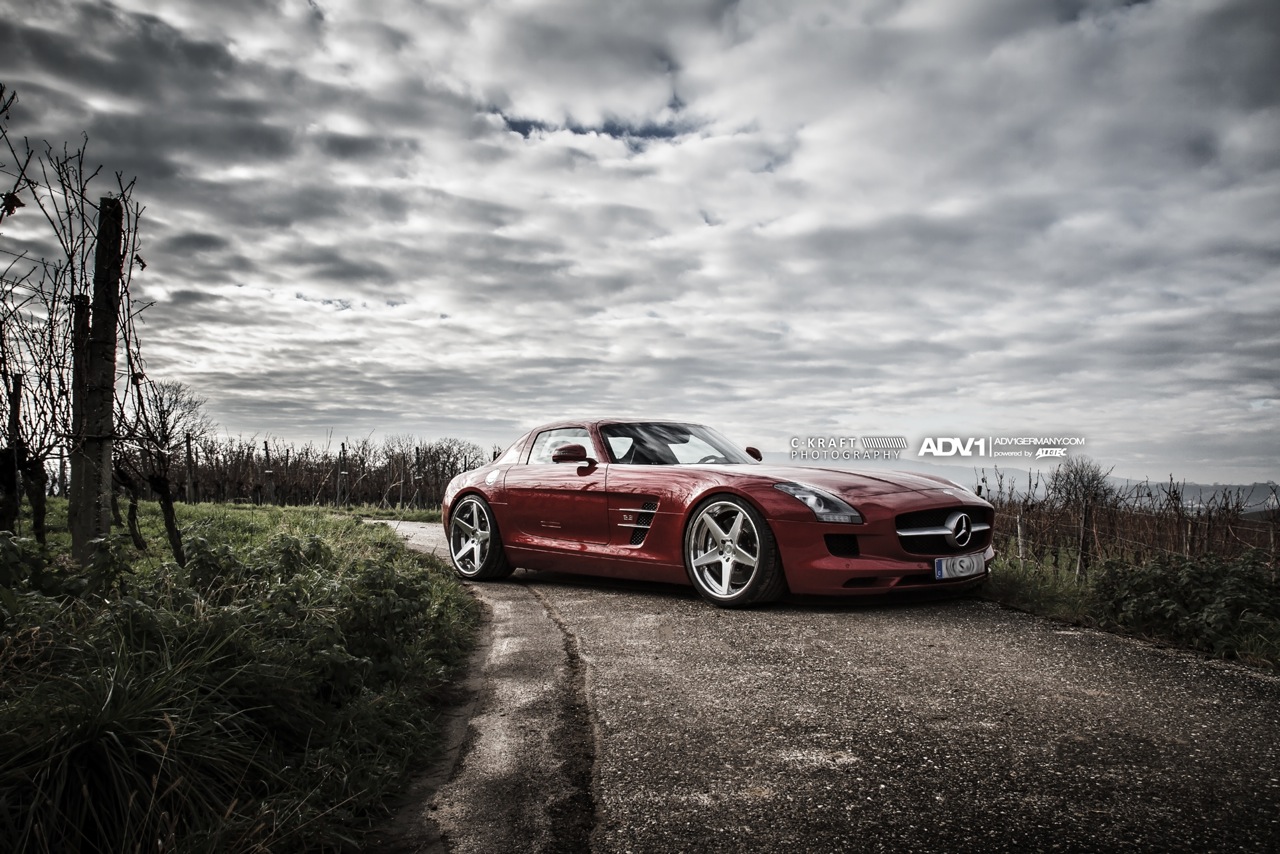 除了動力方面的精進外,這部紅色塗裝的Mercedes Benz SLS AMG選用知名品牌ADV.1 Wheels出品、型號ADV5的內凹款式輪圈,中心採用簡單的五爪設計,並且透過高低軟硬可調避震器的換裝將車身降低,展現出落落大方的動感氛圍,感謝攝影團隊CKraft Photography提供精美照片。