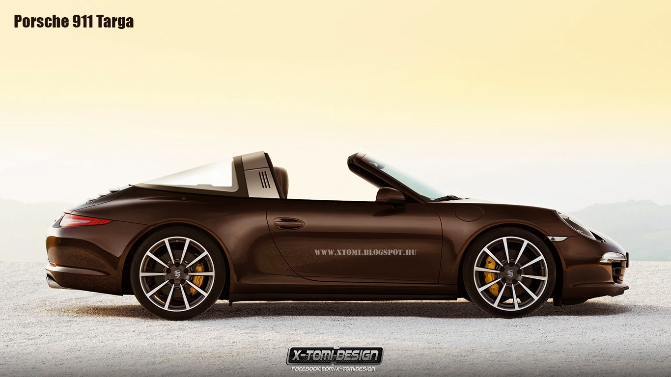 2015 Porsche 911 Targa及Targa S將在世界重點汽車大展底特律車展亮相,這兩輛車都擁有全新動之頂篷設計,即便如此她仍保持了Porsche 911一貫的流線造型,為了給各位對於下世代Porsche 911 Targa有較清楚的概念及輪廓,X-Tomi 設計公司特別創造了以上這張假想圖,雖然這張圖一點都不讓人感到驚奇,而這車色也是Porsche近來在官網上公布的顏色,讓我們幾乎能夠想像屆時Porsche 911將會是什麼樣子,以往來講他們的臆測圖總是相當精準,相信此次也不例外。在圖中我們可以看見她仍維持了相當低重心之設定,她這樣的上空設定其實與1960年代的原版Targa擁有極為類似之線條,這一次的重新設計重現了粗壯B柱之美感,就像是B柱環抱著座艙,雖然她不能像敞篷車讓您完整接觸外界,但是卻絕對非常拉風,在引擎蓋之下Porsche 991 Targa採用一具3.4升平六引擎,能夠產生345hp最大馬力,在Targa S也採用同一具引擎,最大馬力調校到395hp,值得一提的是,他們的原廠設定會是一輛手排跑車,而最新PDK系統則會是一選配裝置,就讓我們期待一下吧。