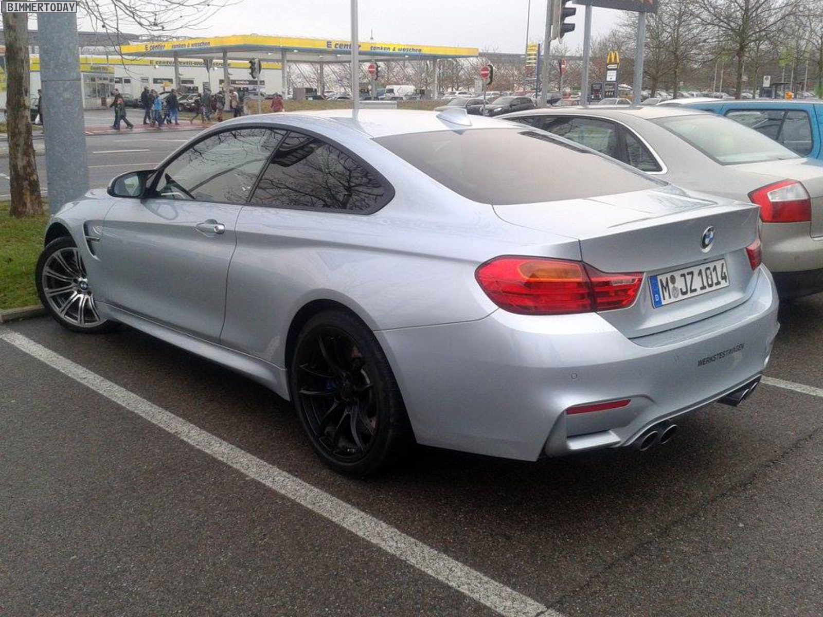 根據他的說法,拍攝地點是在德國(Germany)巴伐利亞因哥爾斯塔特(Ingolstadt,Bavaria),初見這部Silverstone Silver銀色塗裝的BMW M4的時候,乍看之下他以為是部裝的M-Sport空力套件的F32 335i Coupe,再加上BMW原廠先前已經對外宣布將會在數個月後的美國底特律車展(Detroit Motor Show)當中舉辦BMW M3與M4正式官方發表,所以不以為意。然而仔細一看發現它的有菱有角的車身鈑件才恍然大悟,立刻趨前拍攝,若非亮眼的銀色塗裝,可能就會誤判。 由照片判斷,這部BMW M4 Coupe前輪裝著類似BMW E92 M3用的原廠19吋輪圈,後輪則是不同款式的黑色輪圈,前保桿左右各貼著白色貼紙,可能是巴伐利亞廠內測試人員順道路過,停下車買杯咖啡或麥當勞套餐? 不過這也似乎暗示我們,新舊款輪圈可以互相流用?