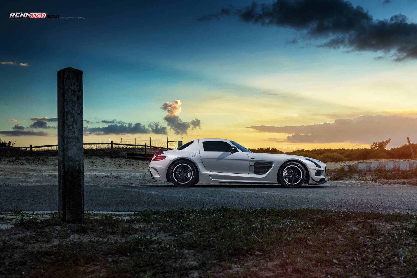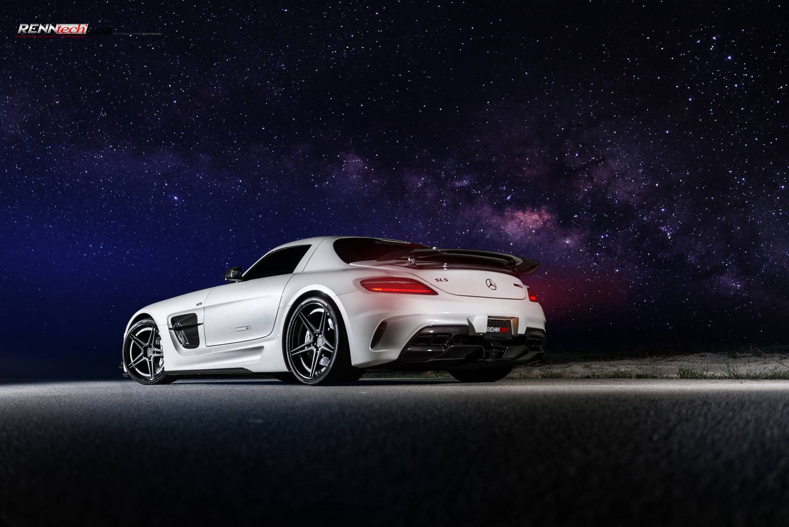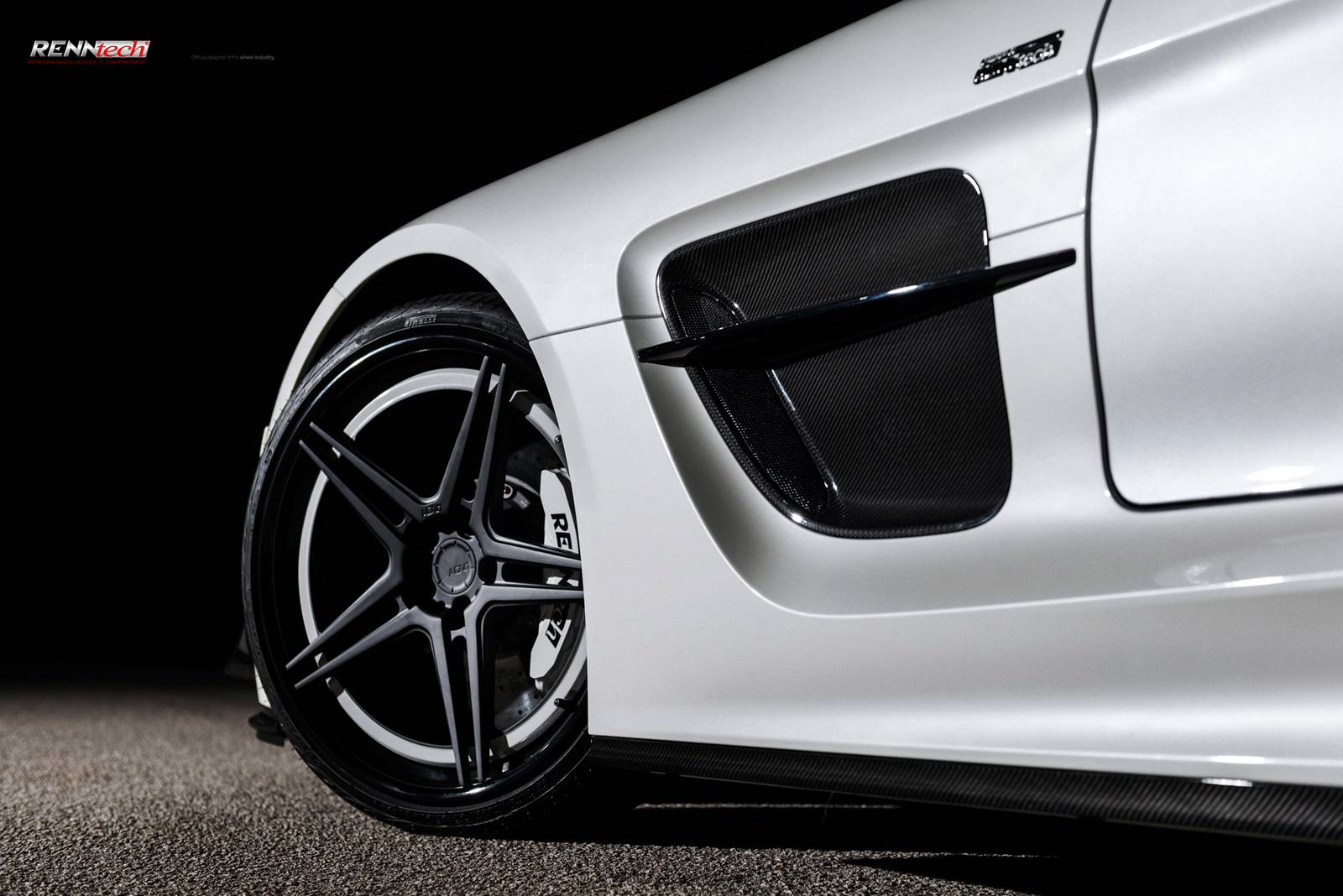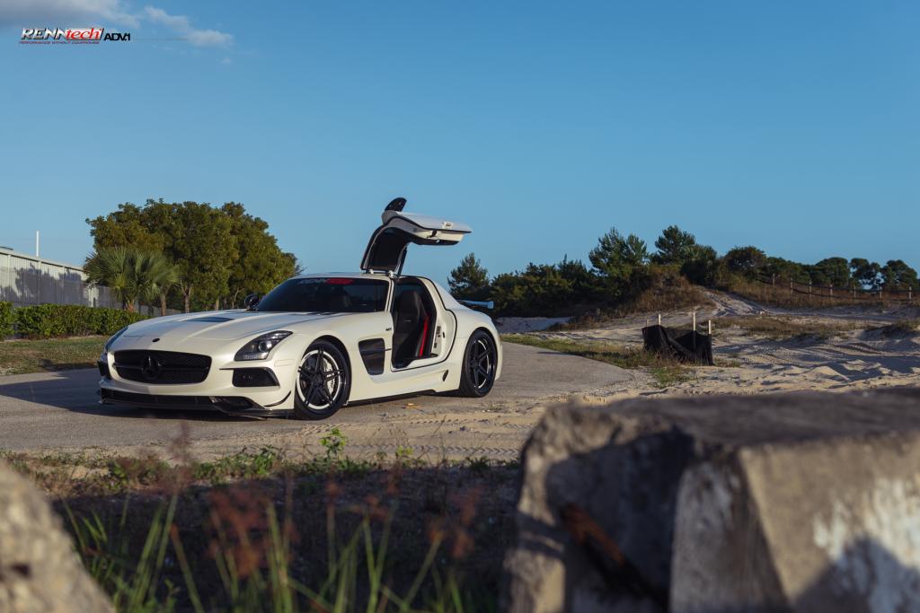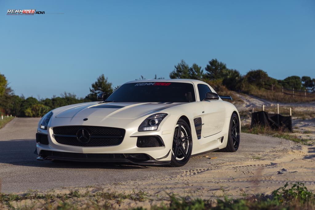今天帶給各位的是一部由改裝廠Renntech操刀的Mercedes Benz SLS AMG Black Series,換裝Renntech煞車系統與高性能進氣系統等部品,輪圈部分換裝知名品牌ADV.1 Wheels黑色五爪輪圈,而其雪白色車身搭配碳纖維前下巴、定風翼、水箱護罩、後視鏡蓋、後擾流尾翼與後下擾流板等部品,在專業攝影師的鏡頭下,展現難得的極致跑格。