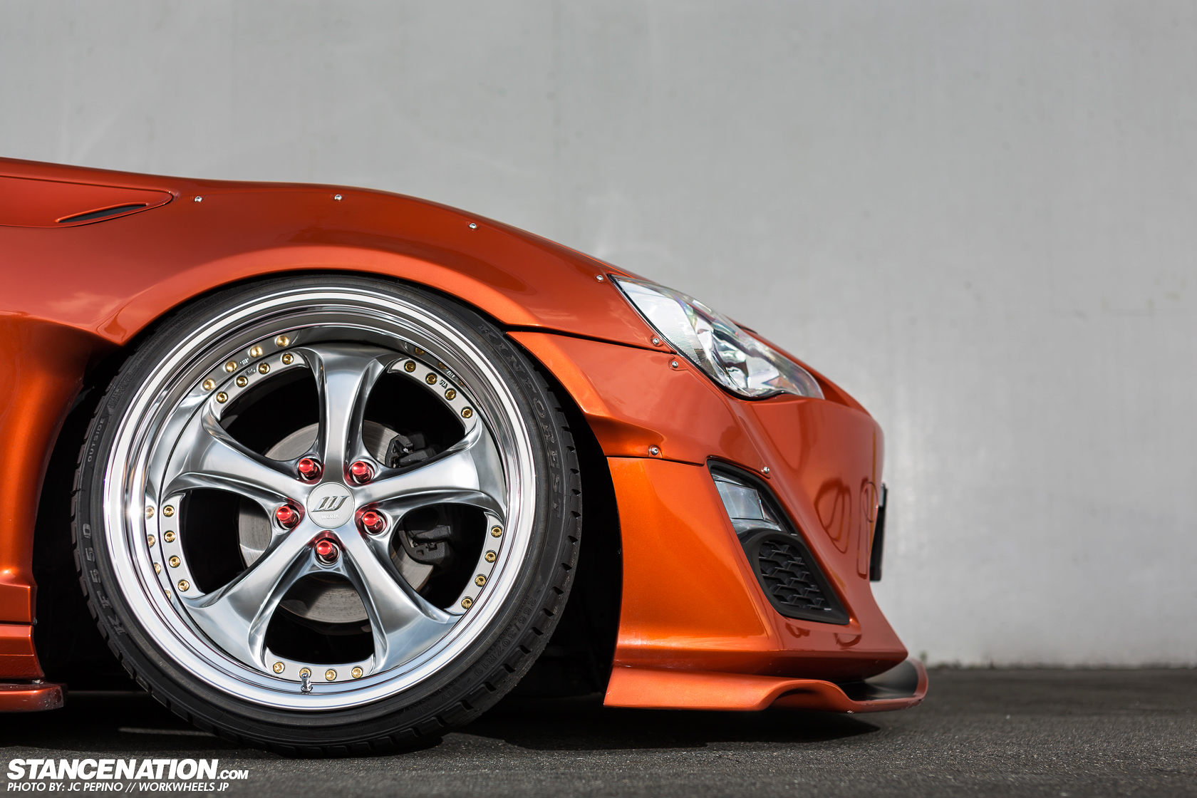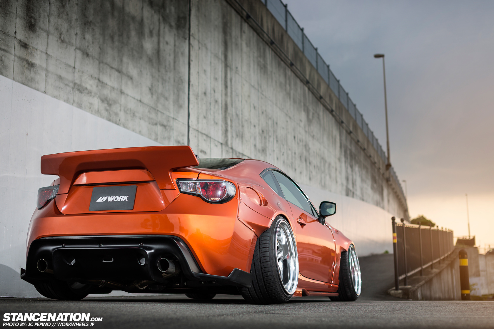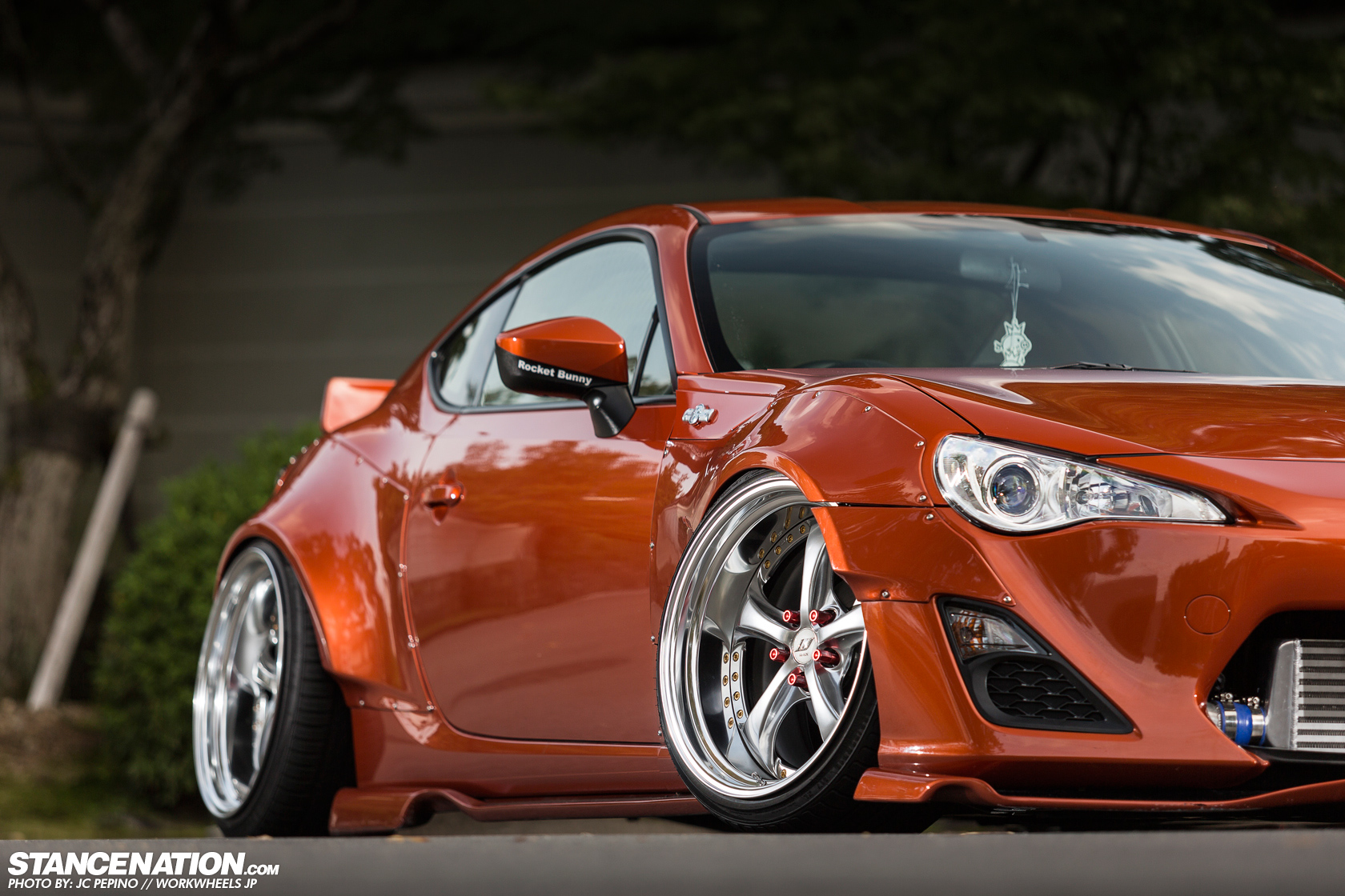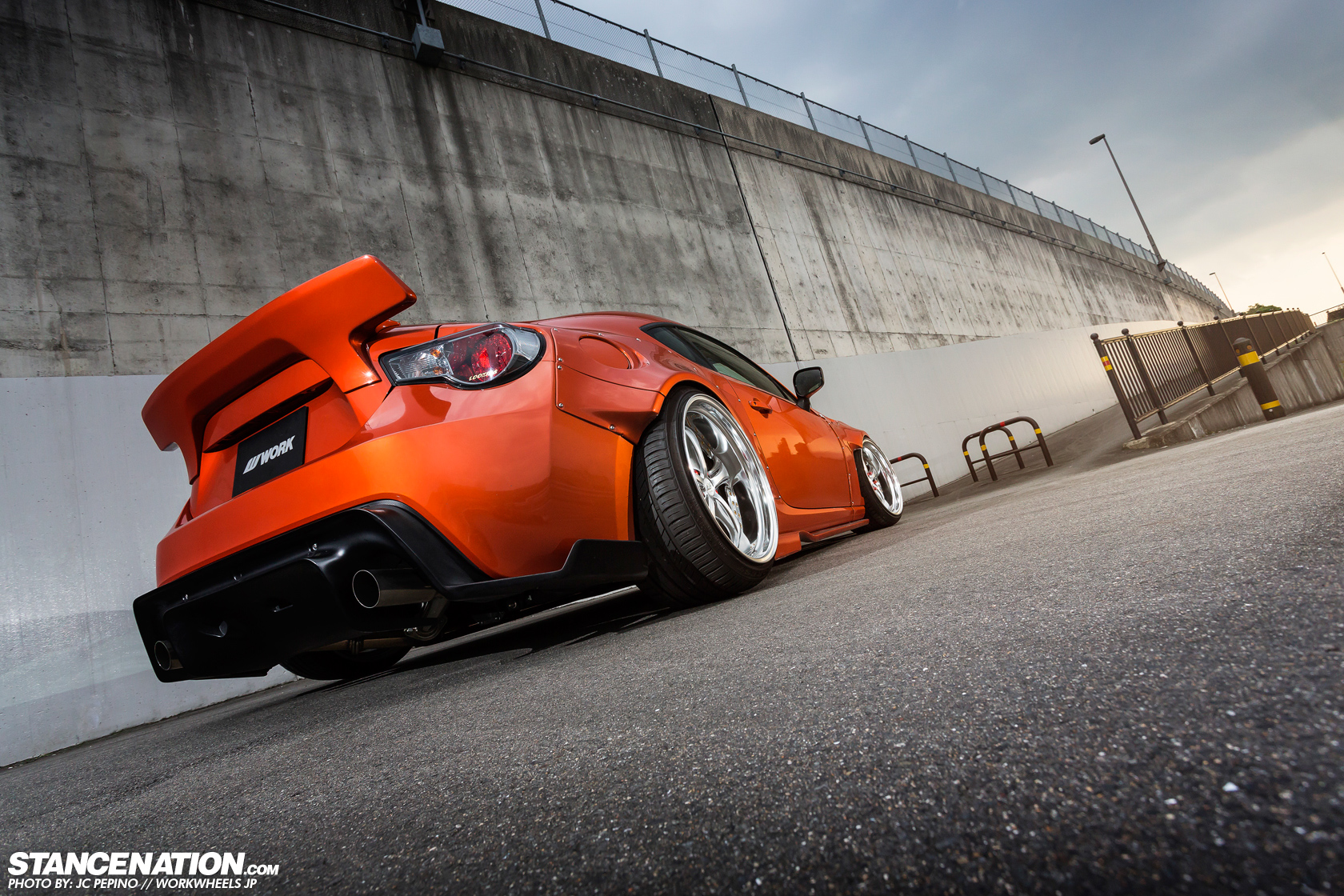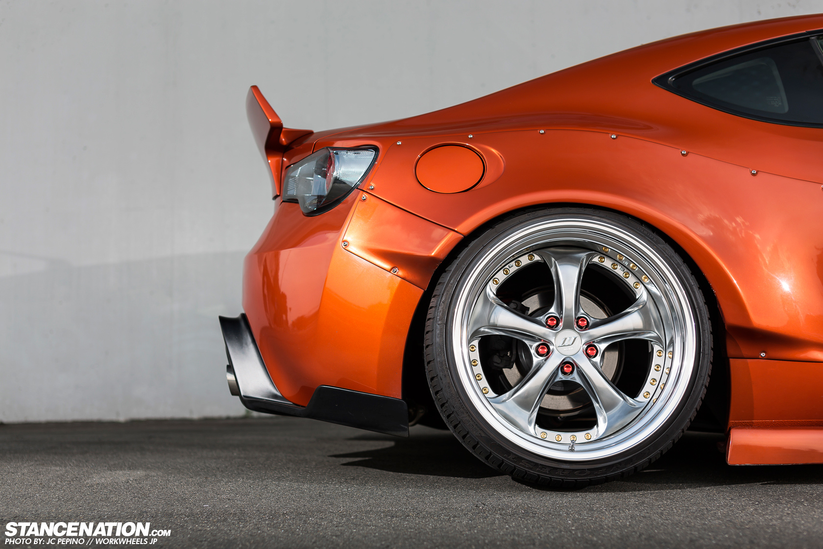 今天帶給各位一部吸睛度百分百的Toyota 86,配有Rocket Bunny寬車體空力套件、前下巴、側裙組、後下擾流版與造型特殊的鴨尾翼等部品,輪圈選用日本品牌Work、型號VS-KF的款式並且透過高低軟硬可調式避震器將車身降得貼地。動力部分,改裝店家植入GReddy T518Z渦輪機,搭配4合1頭段排氣管、60mm當派、Airinx AY-SB進氣系統與GReddy中央冷卻器等部品,將最大馬力由原廠的200HP提升至300HP左右,算是相當夠用。感謝知名網站StanceNation與攝影專家JC PEPINO提供精美照片,這款Work VS-KF搭配在86身上算是相當少見,各位喜歡嗎?