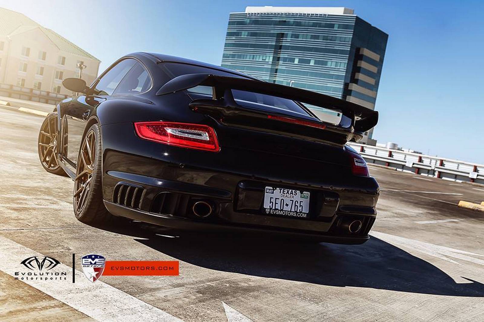今天帶給各位的是由位於德州休士頓(Houston, Texas)的改裝廠EVS Motors (簡稱EVOMSit)所操刀的Porsche 997 GT2,透過電腦程式的調校、進氣系統的強化與高性能排氣管的換裝,將最大馬力提升至超越GT2 RS的驚人650HP,百里加速成績挺進至3.4秒,使得這部外表低調、僅換裝Vorsteiner古銅色鍛造輪圈的德國跑車常能痛宰對手於無形。