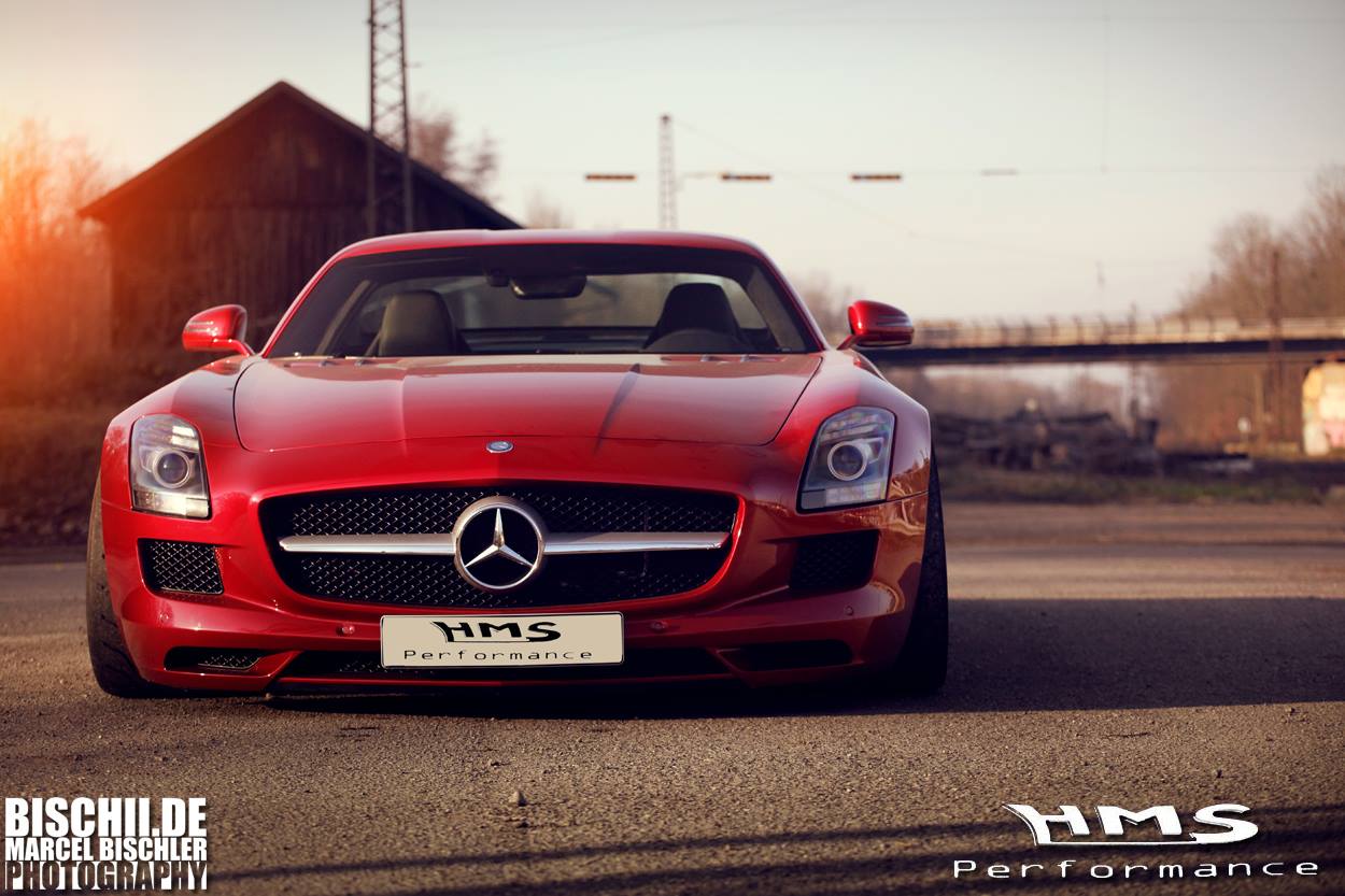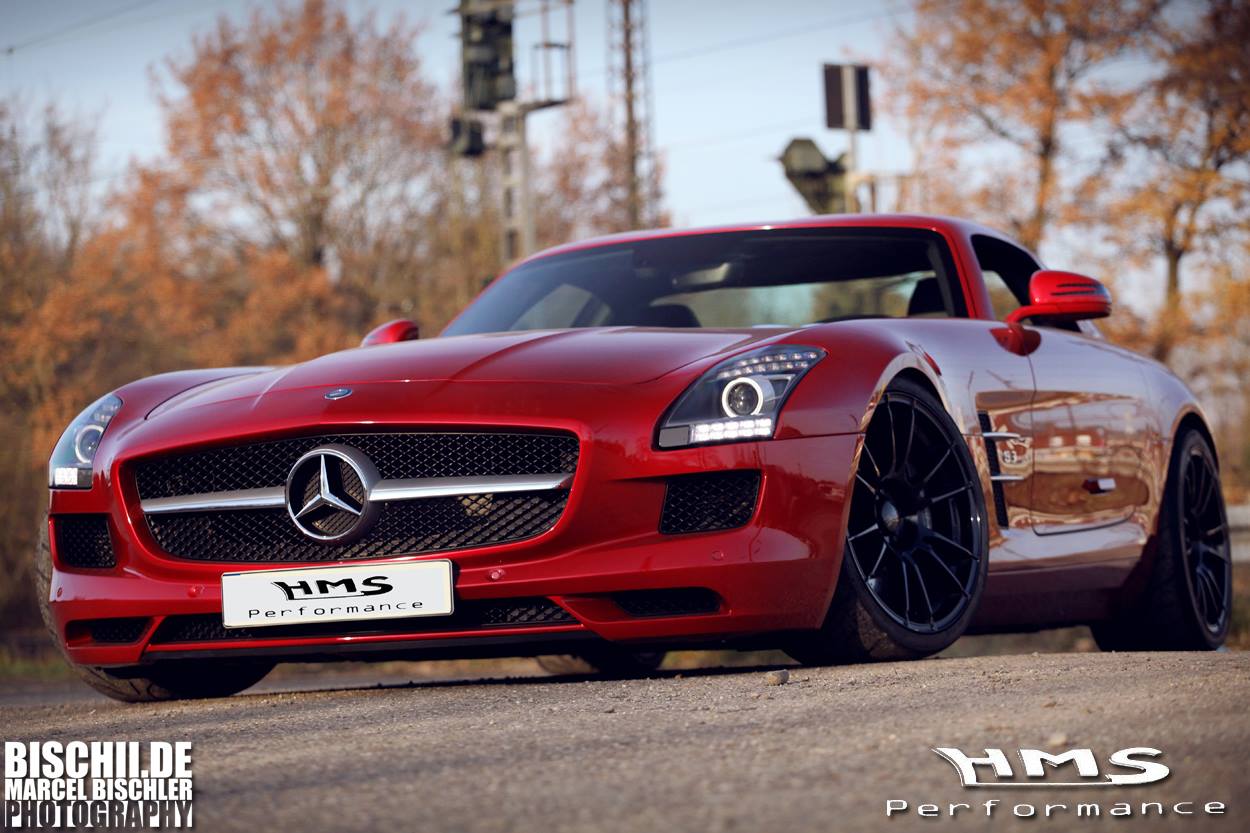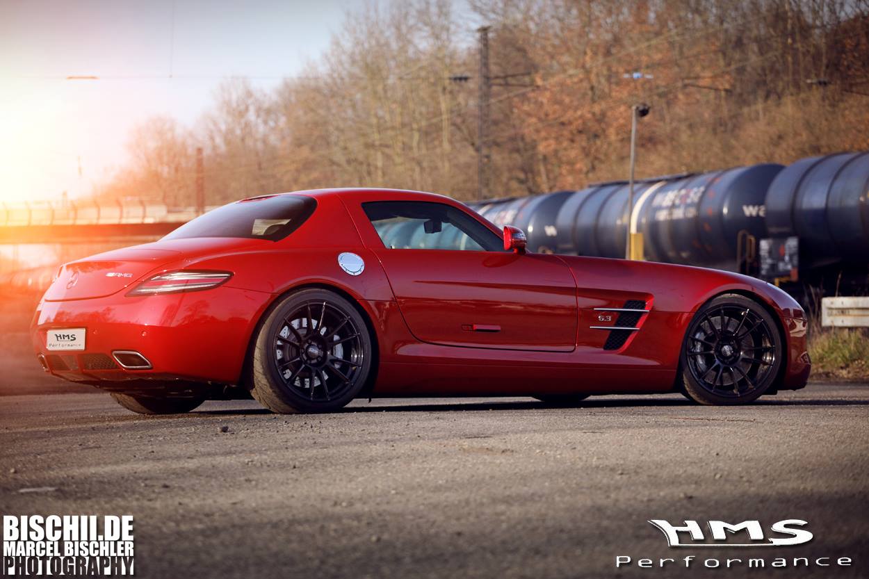 總部坐落於德國馬爾特爾丁根(Malterdingen, Germany)、專精於德國車系的知名改裝廠HMS Performance向來對於AMG車款情有獨鍾,從過去Mercedes Benz以經典車款C32 AMG揚名車壇時便著手於機械增壓系統的改裝,今天帶給各位由HMS Performance操刀改裝的Mercedes Benz旗艦超級跑車SLS AMG,車身採用耀眼的紅色塗裝,僅換裝OZ Ultraleggera黑色輕量化輪圈與高低軟硬可調式避震器組將車身降低,在素雅簡單的外觀點綴下,搭配看似隨時會磨光的全熱熔胎,隱約透露出一股暴戾之氣。