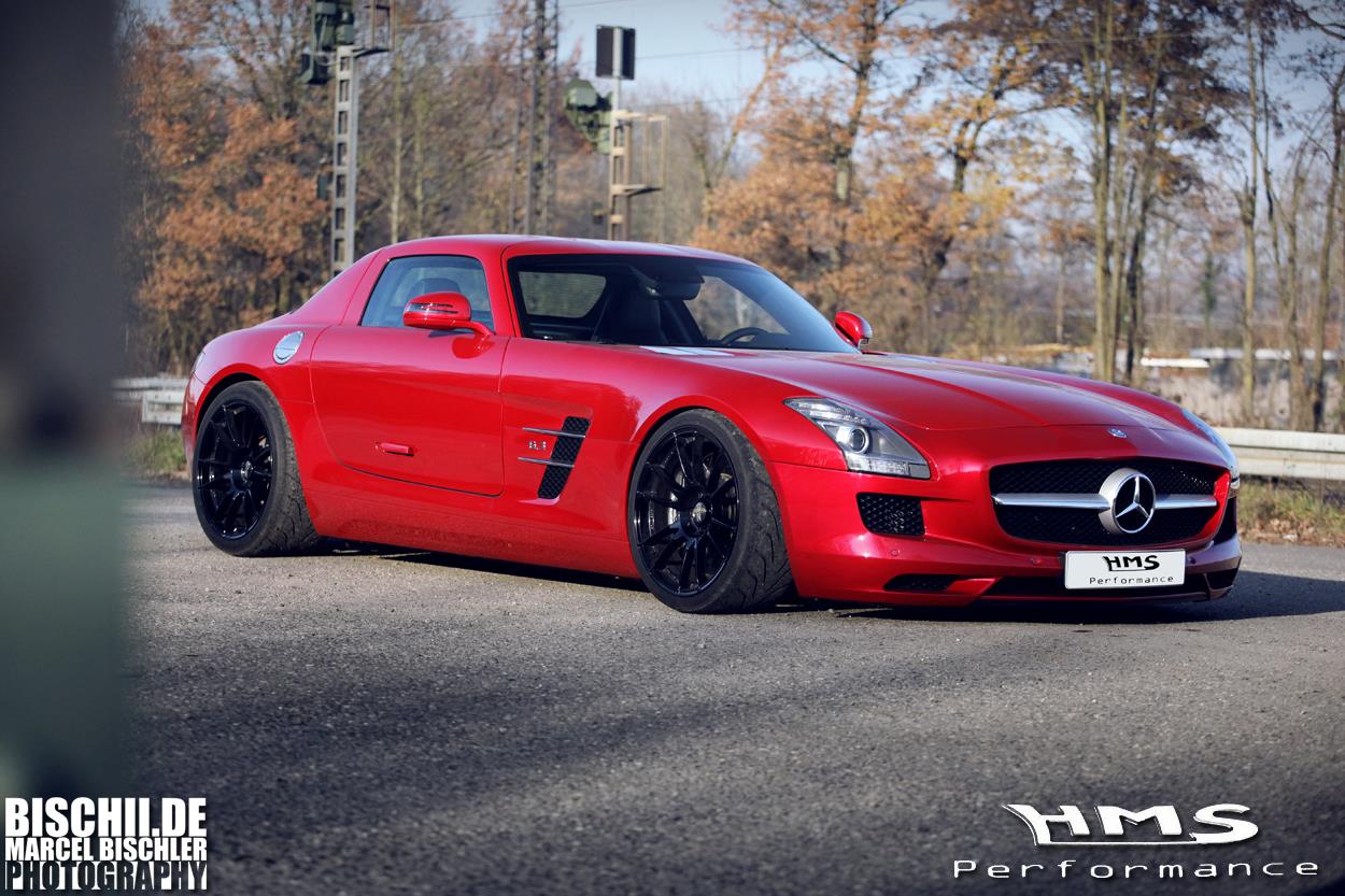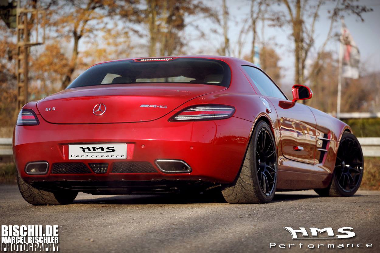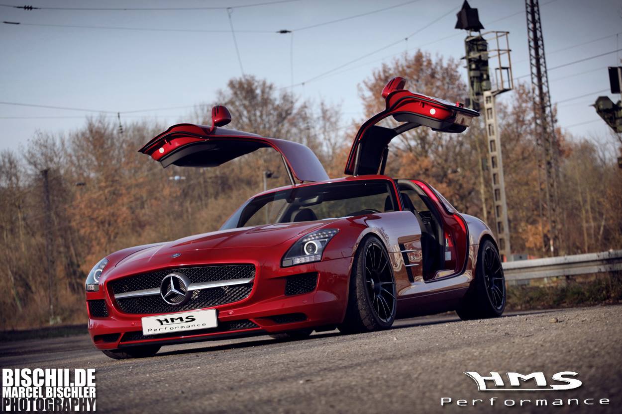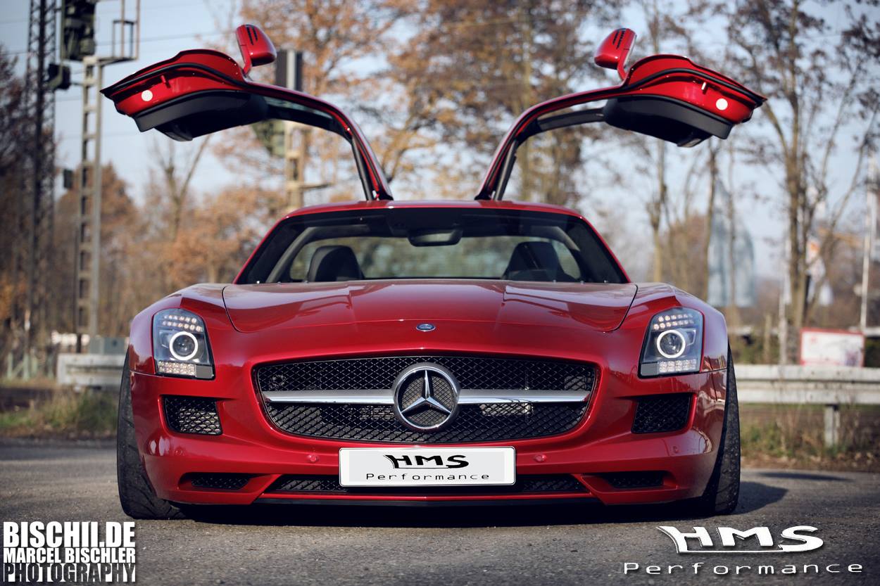 總部坐落於德國馬爾特爾丁根(Malterdingen, Germany)、專精於德國車系的知名改裝廠HMS Performance向來對於AMG車款情有獨鍾,從過去Mercedes Benz以經典車款C32 AMG揚名車壇時便著手於機械增壓系統的改裝,今天帶給各位由HMS Performance操刀改裝的Mercedes Benz旗艦超級跑車SLS AMG,車身採用耀眼的紅色塗裝,僅換裝OZ Ultraleggera黑色輕量化輪圈與高低軟硬可調式避震器組將車身降低,在素雅簡單的外觀點綴下,搭配看似隨時會磨光的全熱熔胎,隱約透露出一股暴戾之氣。
