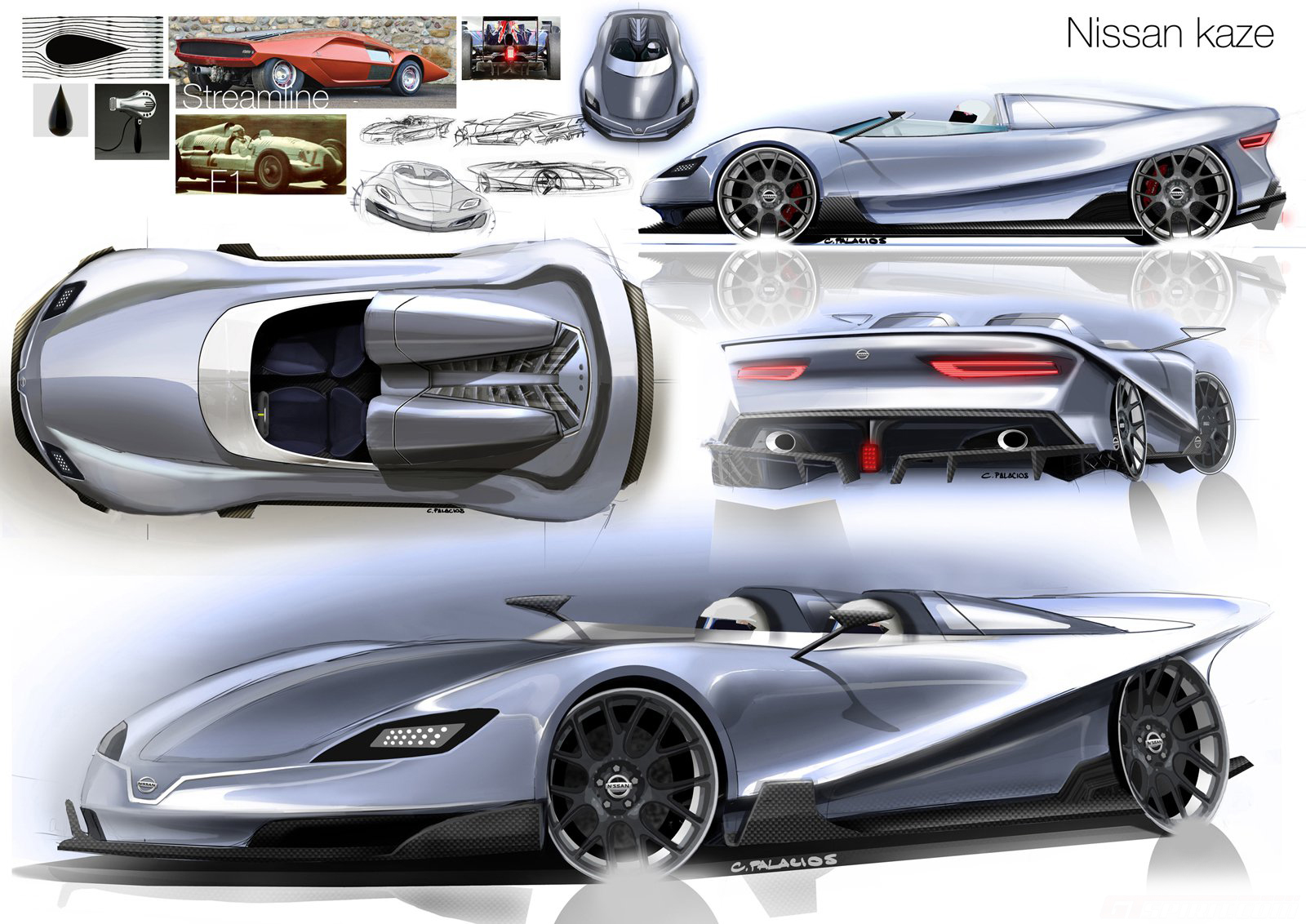 將時間推回到去年的日內瓦車展當時,曾經有一個來自義大利的設計團隊創造出Alfa Romeo Gloria Concept,當時讓大家都驚嘆該團隊之創造力,而現在其中一個設計師獨自為Nissan設計了一輛未來概念車,由Carlos Palacios設計師所一手打理,這輛車名為Nissan Kaze從日文發音轉變而來,意為風的概念,初始設定搭載一具6.5升V-12引擎,且是賽道專用車輛,Palacios表示這輛車的概念有些是來自於1940年代,集結了傳統精神、現代工藝以及取經自F-1的賽道驚艷,最終成就了這一輛Nissan Kaze的出現,這輛車事實上是可以量產的,擁有相當狹小的擋風玻璃,即便她在車頭是壓上了Nissan的標誌,但卻幾乎看不出她的日系血統,換句話說,這輛車的設計絕對是非常獨特且震撼人心。 採用中置引擎的設定,在車身部分則幾乎都是採用碳纖維材質,此外後照鏡的設計更是極度纖細銳利,讓該車能夠擁有絕佳的低風阻表現。