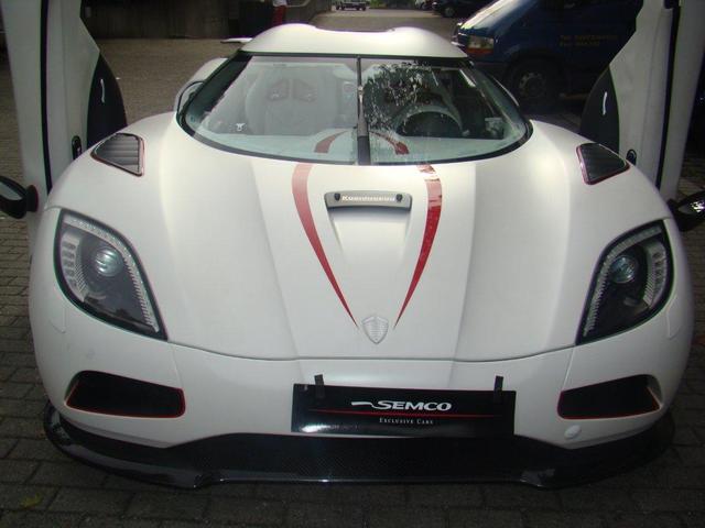 今天帶給各位德國超級跑車商Semco所展示之最新庫存車款便是一部Koenigsegg Agera R,採用原廠取名Speed Racer的外觀套件,將全車施以消光白色塗裝配上紅色緞帶圖騰,同時保留了局部碳纖維紋路,相當帶勁,該車同時也是2011年Koenigsegg於日內瓦車展(Geneva Motor Show)當中所發表的展示車。