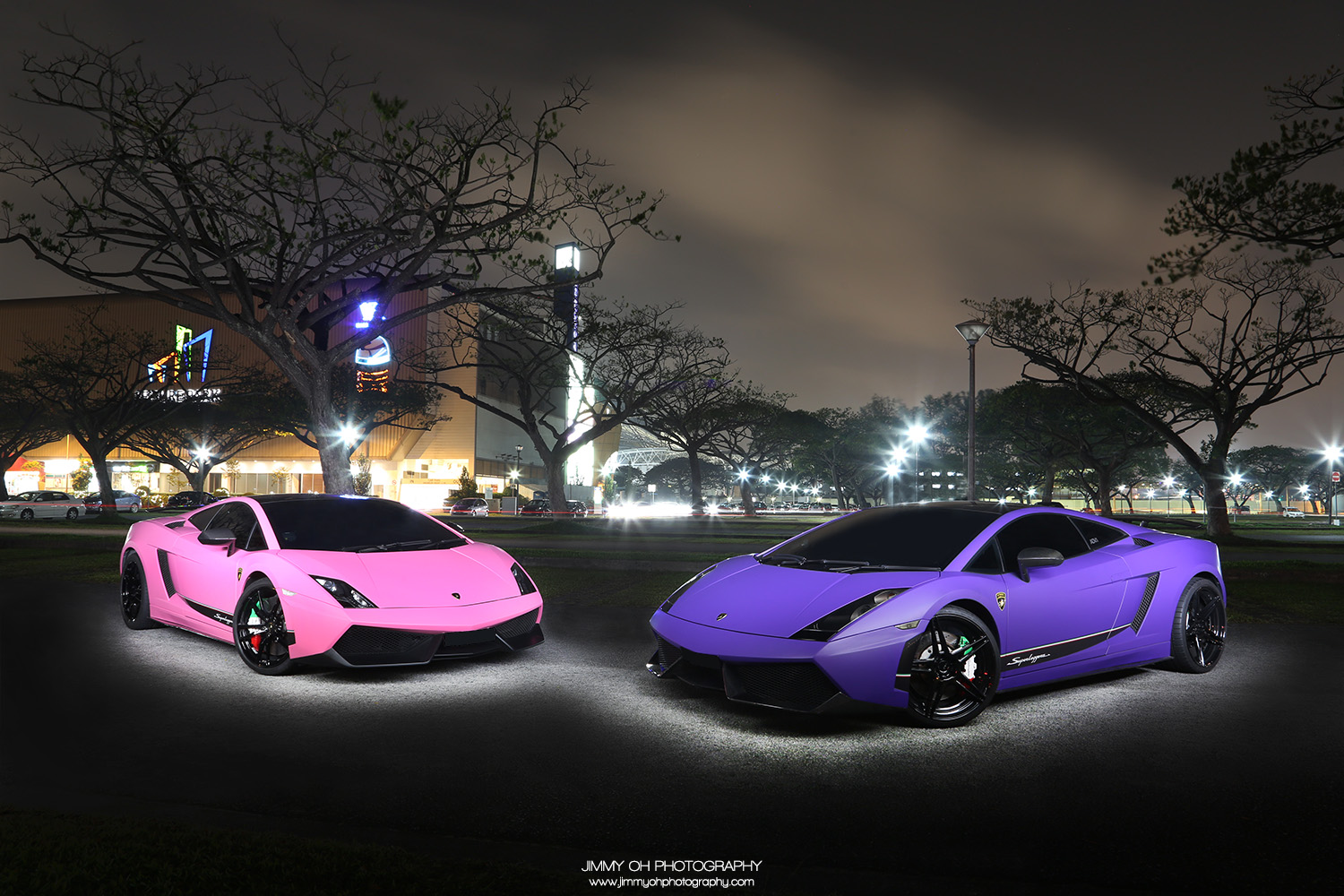 今天帶給各位由攝影專家Jimmy Oh Automobile Photography所拍攝、兩台分別為前期型與後期型的Gallardo Superleggera,其中前期型Gallardo Superleggera以消光紫色包膜同時換裝後期型前保桿套件與知名品牌ADV.1的黑色輪圈登場,後期型LP570-4 Superlegggera則是於葉子板貼有Lamborghini金屬銘板、以亮眼的消光粉紅色亮相,同樣於煞車卡鉗施以義大利國旗三色彩繪的兩部輕量化義大利超級跑車同台演出的精美畫面實在令人眼睛為之一亮。