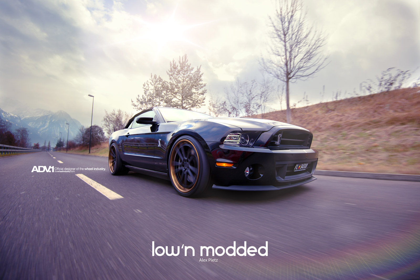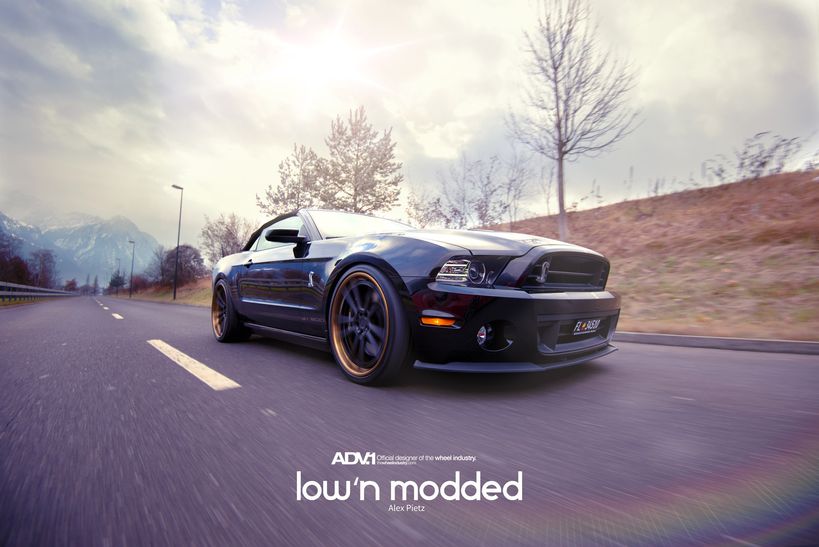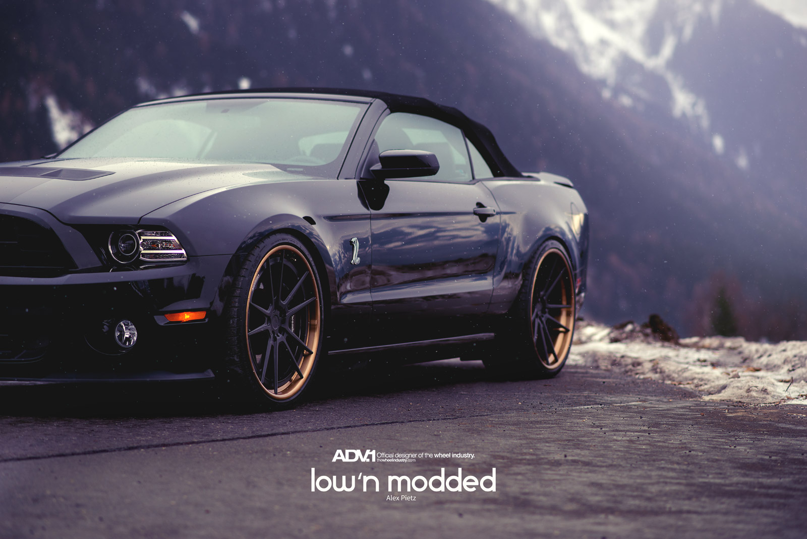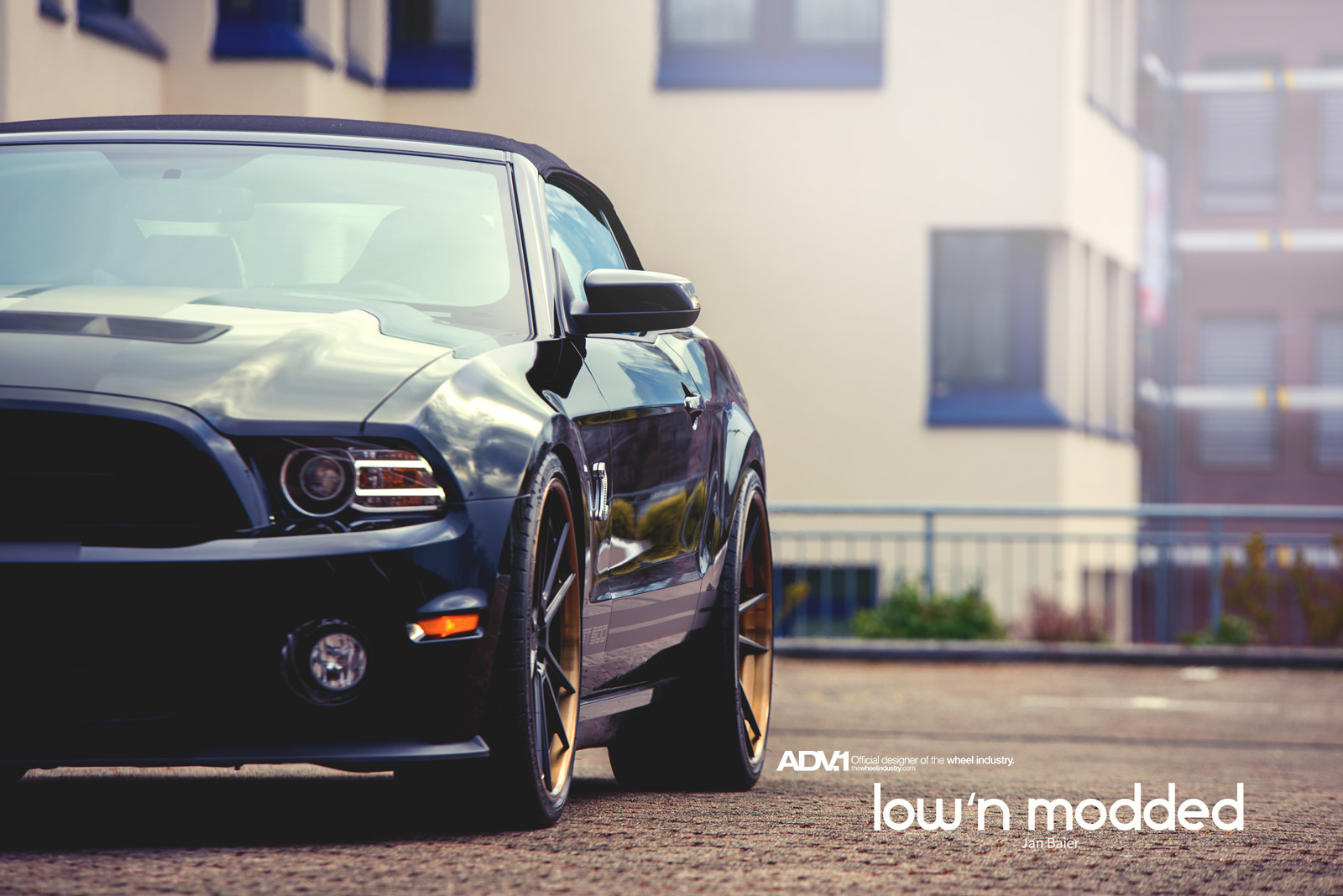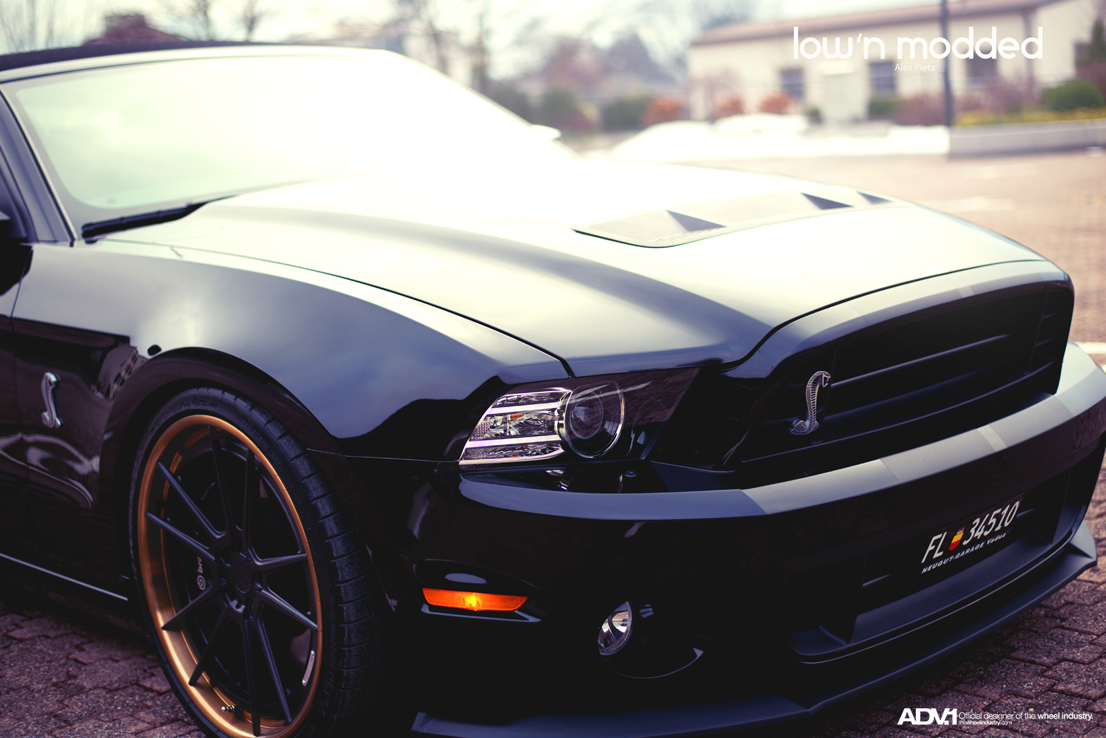 眼前這部黑色塗裝的Shelby GT500敞篷車則是在車主的安排下,換裝知名品牌ADV.1 Wheels出品、型號ADV5.2 TS SL的輕量化版本輪圈,尺寸為前21x9.5J、後22x12J的前後配設定,中心採用消光黑色塗裝,外圈則是以古銅色處理,對比效果相當明顯,另外換裝高低軟硬可調式避震器組將車身降低,霸氣油然而生。感謝攝影師Jan Baier提供精美照片。