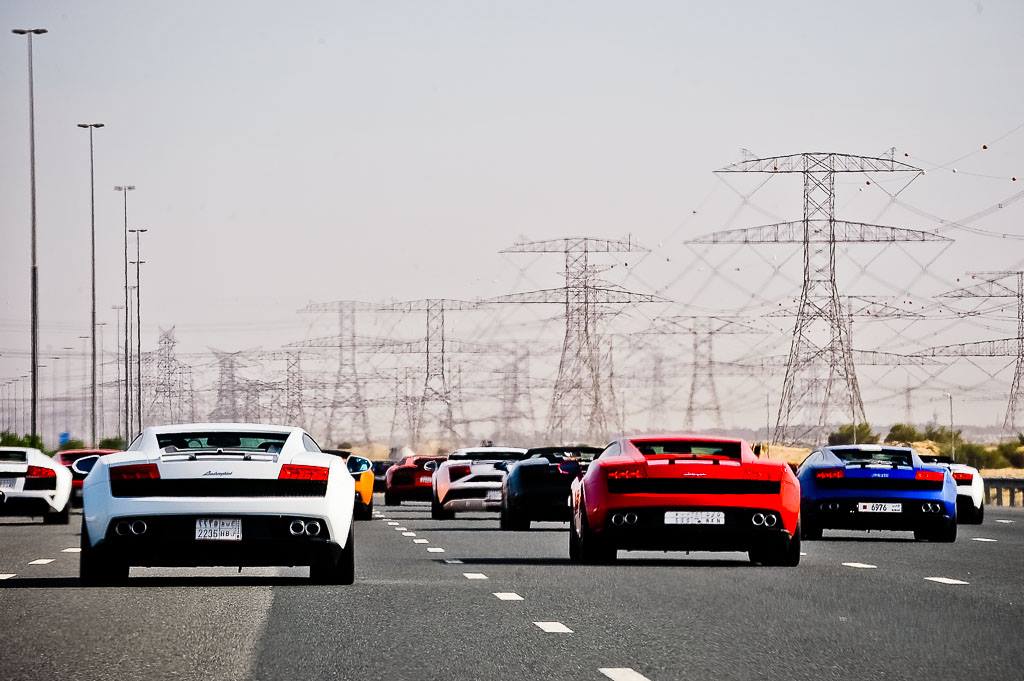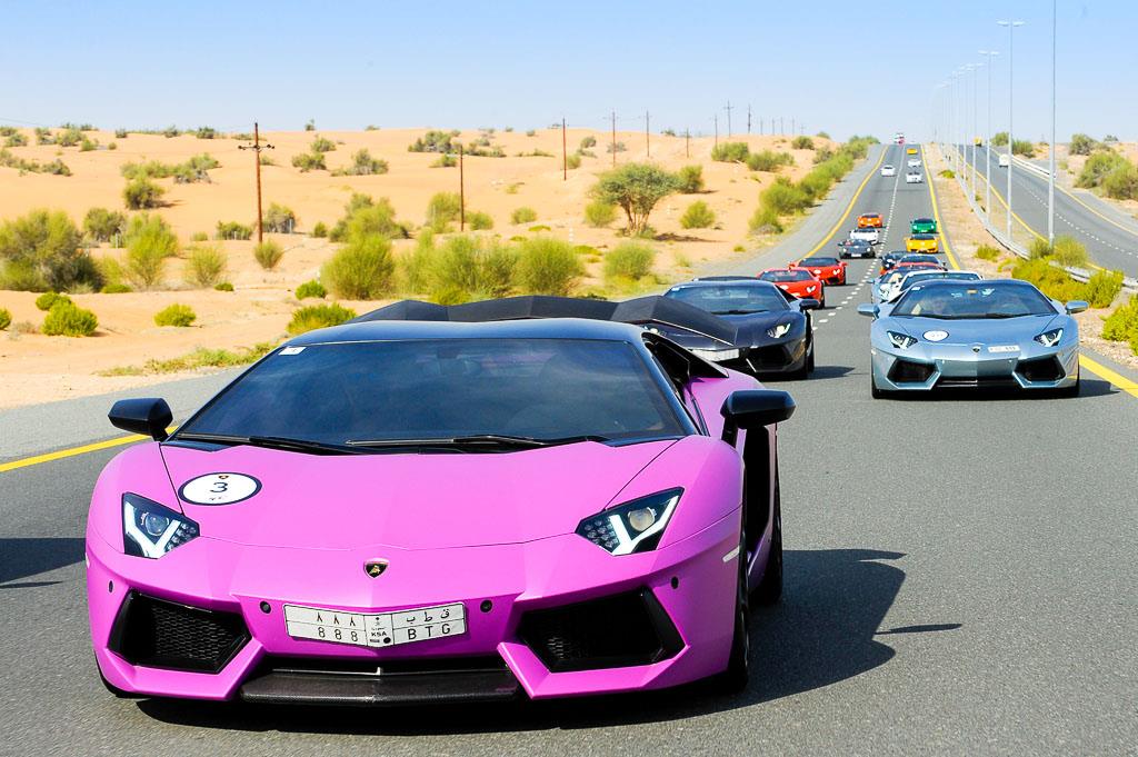 活動當天,多位Lamborhgini車主紛紛從中東各地區湧入杜拜市中心,駕著愛車馳騁各大風景區,而在出席的蠻牛部隊當中,我們見到全球限量150部的Lamborghini Gallardo LP570-4 Super Trofeo Stradale、敞篷版本Lamborghini Aventador LP700-4 Roadster數部、各種顏色的Lamborghini Aventador LP700-4、經典旗艦Lamborghini Murcielago與數部精品滿載的Lamborghini Gallardo。
