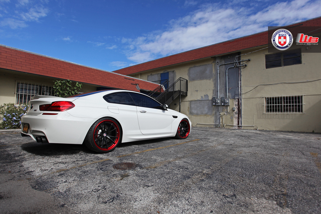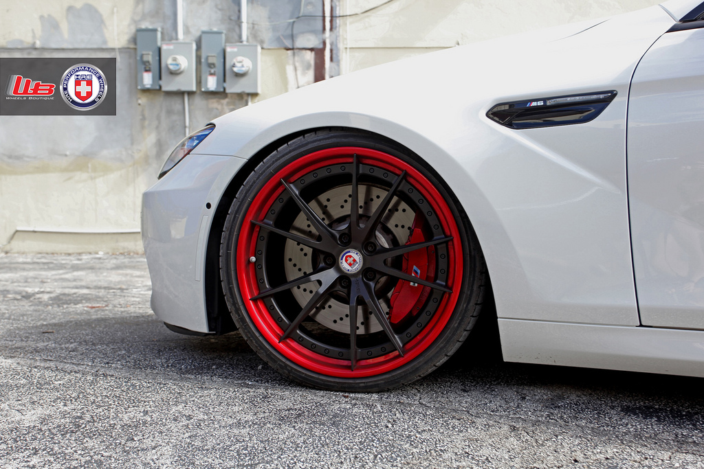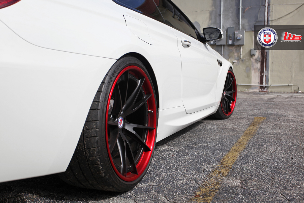 今天帶給各位的是一部由美國改裝廠Wheels Boutique所操刀的新款BMW M6,輪圈選用知名品牌HRE Performance Wheels出品、型號S104的輕量化輪圈,中心採用平光黑色塗裝,外唇連同煞車卡鉗施以紅色處理,另外換裝高低軟硬可調避震器組將車身降低,讓這部低趴德國雙門旗艦跑車流露出熱情無比的跑格。