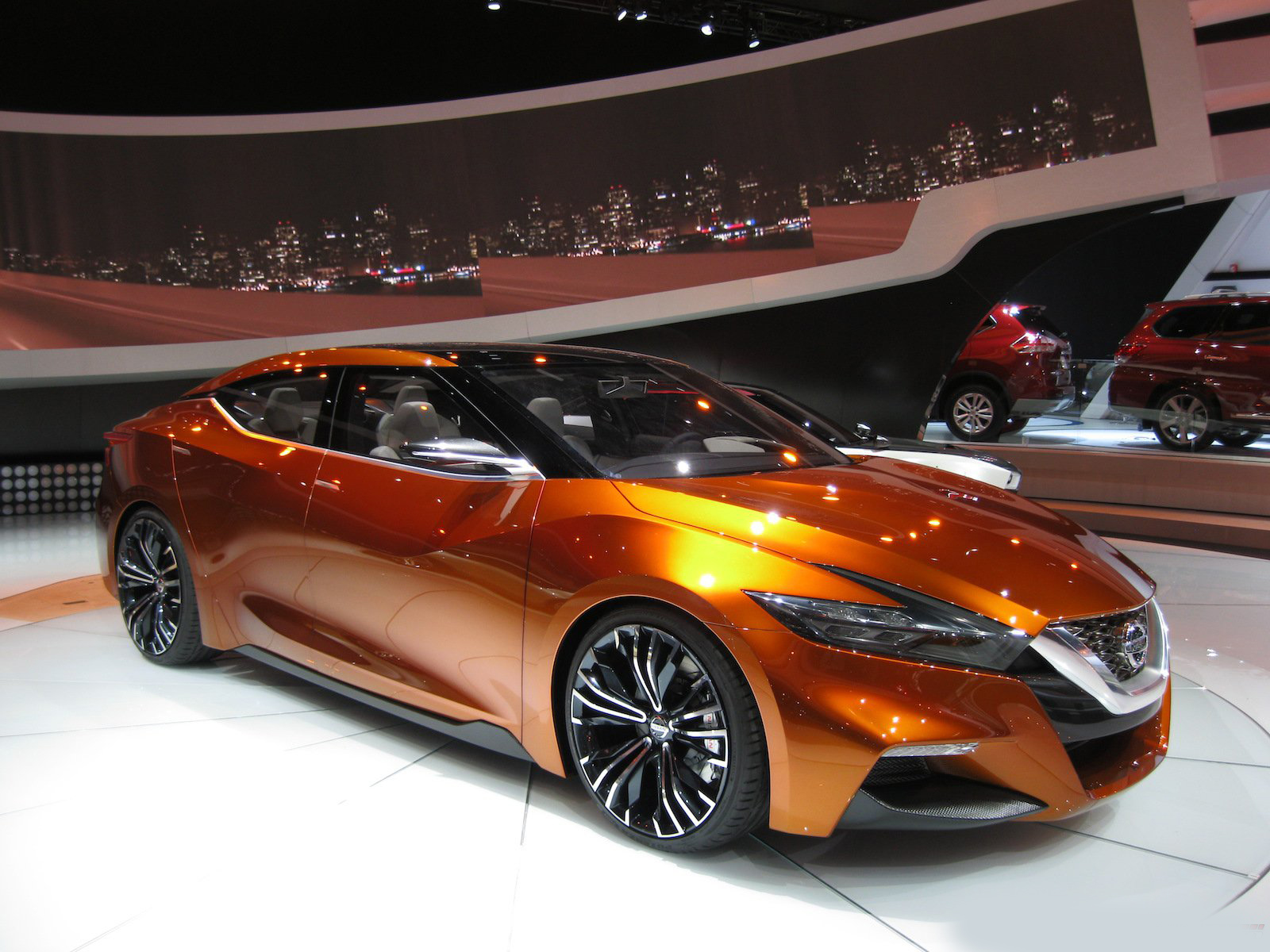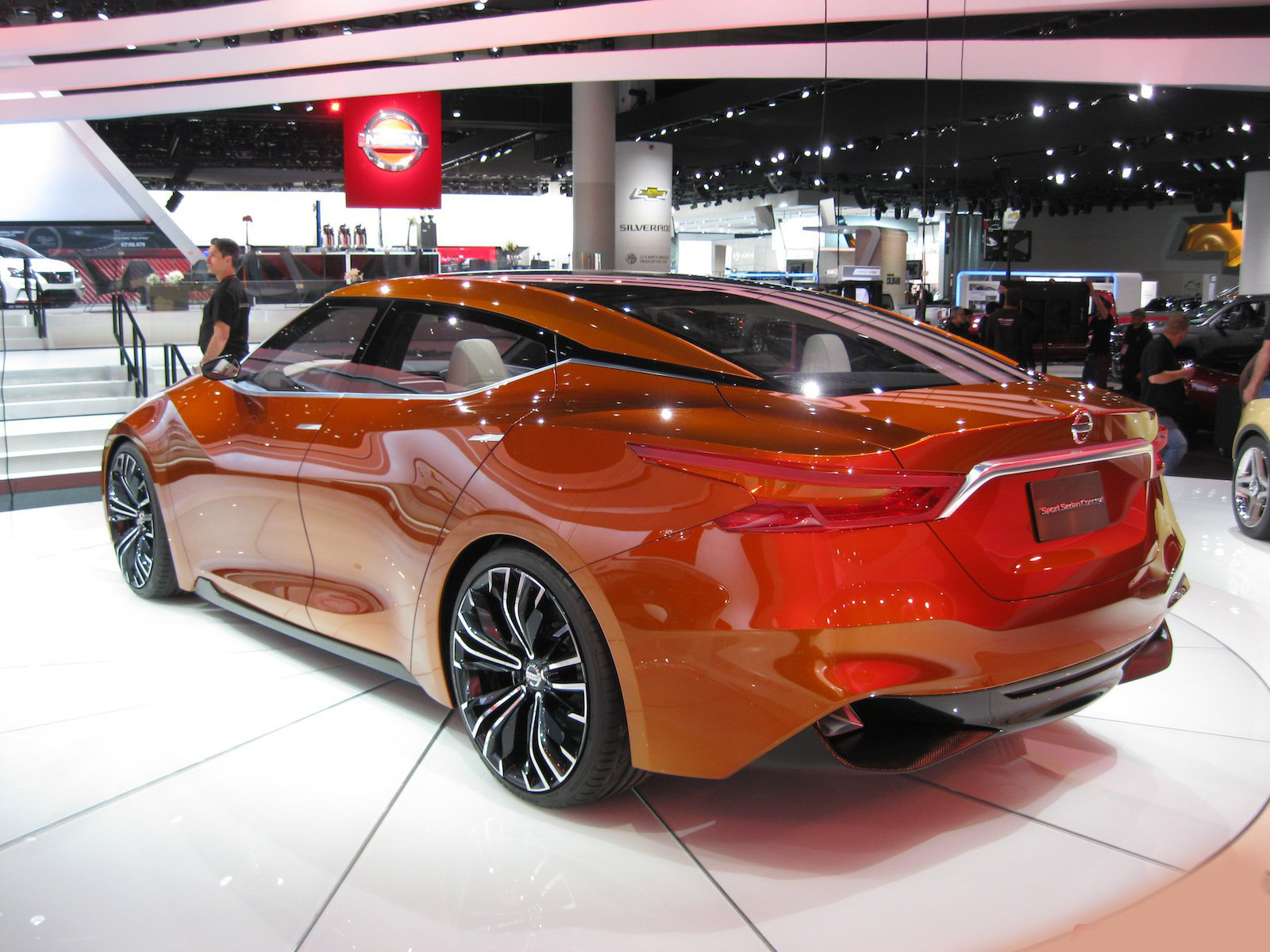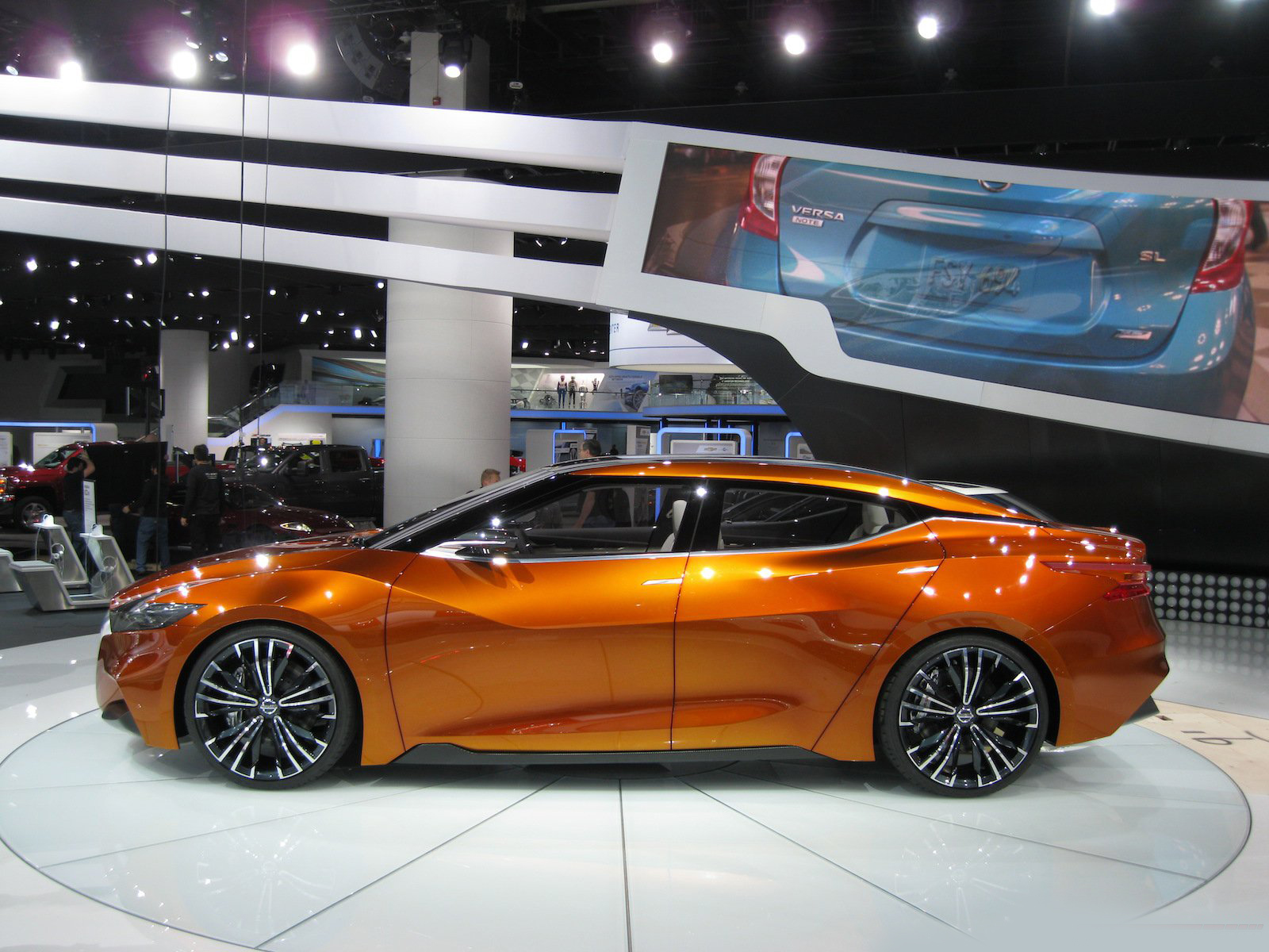 近日2014底特律車展如火如荼展開,而各家車廠也都沒閒著,包括來自日本的NISSAN,除了前幾日所展出的Nissan GT-R Nismo以外,其實他們還計畫著一些其他的未來計畫,以下這輛車就絕對能夠吸引展會上任何人的目光,名為2015 Nissan Maxima,她目前仍在測試當中,這輛Sport Sedan Concept讓人們能夠更具體的預見NISSAN所描繪的未來,橘色塗裝更讓人們能夠一窺這家日系龍頭的可塑性。