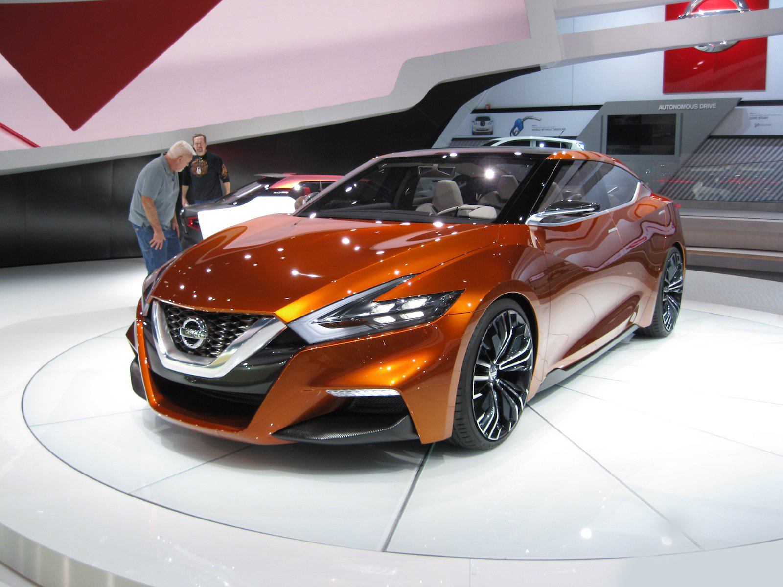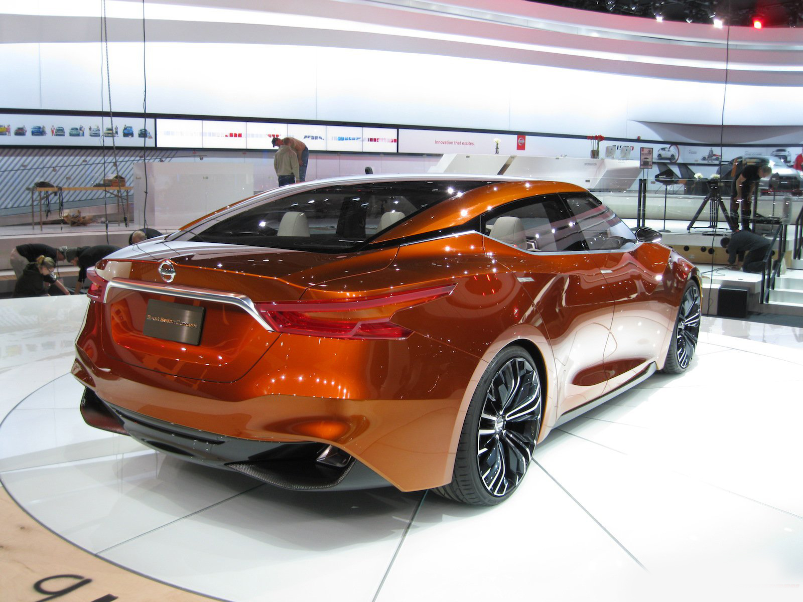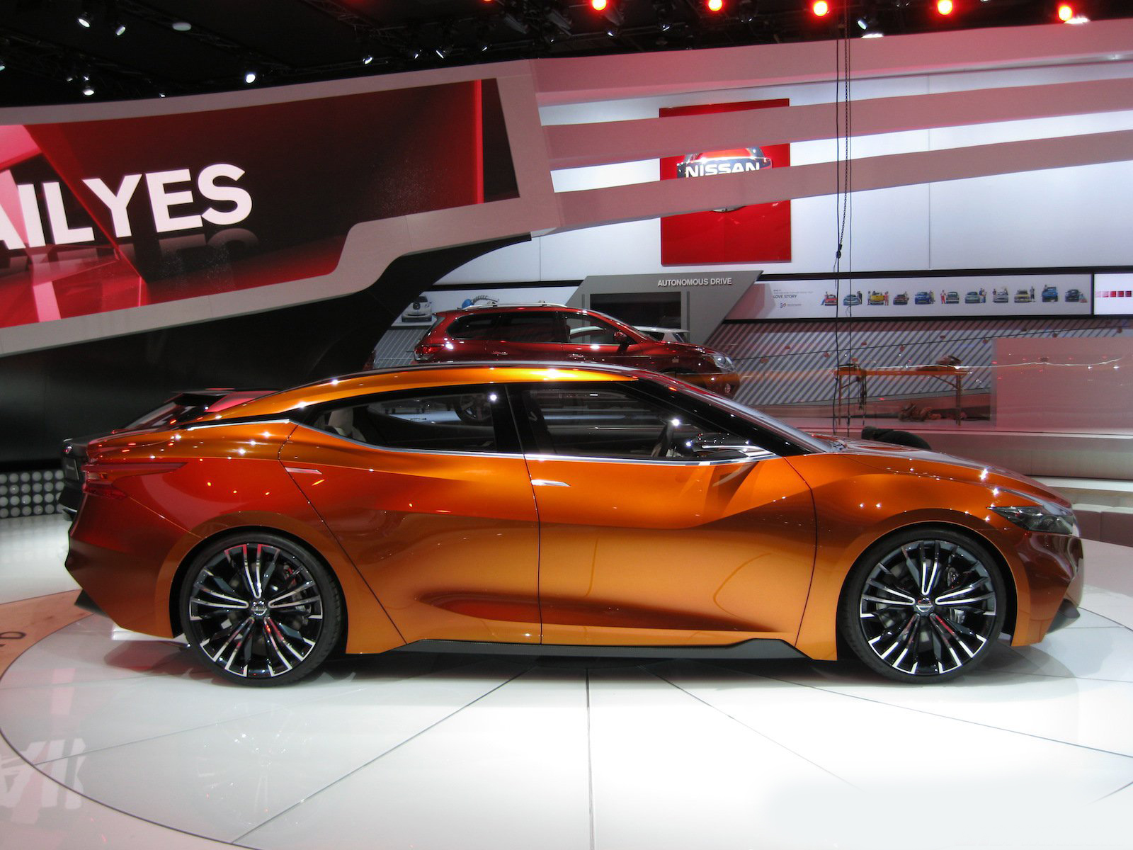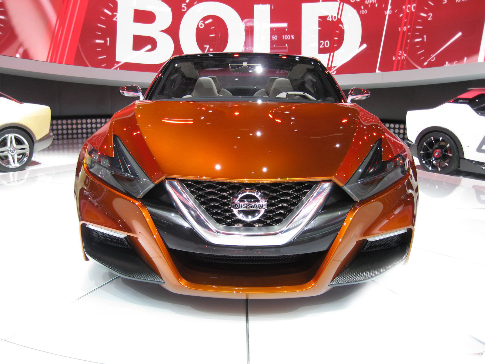 近日2014底特律車展如火如荼展開,而各家車廠也都沒閒著,包括來自日本的NISSAN,除了前幾日所展出的Nissan GT-R Nismo以外,其實他們還計畫著一些其他的未來計畫,以下這輛車就絕對能夠吸引展會上任何人的目光,名為2015 Nissan Maxima,她目前仍在測試當中,這輛Sport Sedan Concept讓人們能夠更具體的預見NISSAN所描繪的未來,橘色塗裝更讓人們能夠一窺這家日系龍頭的可塑性。