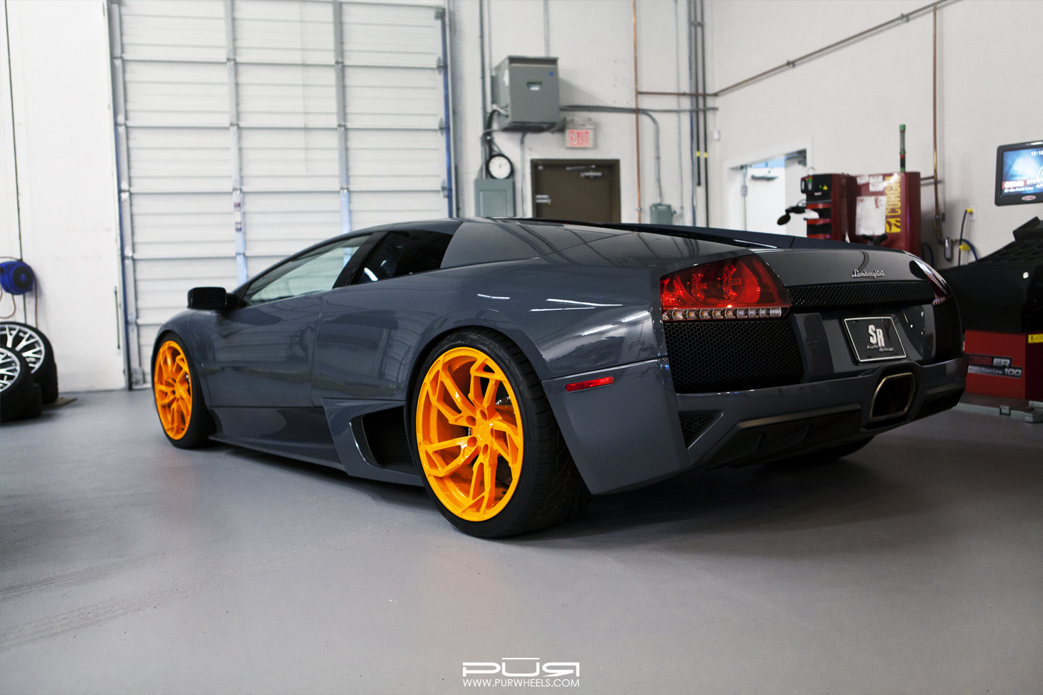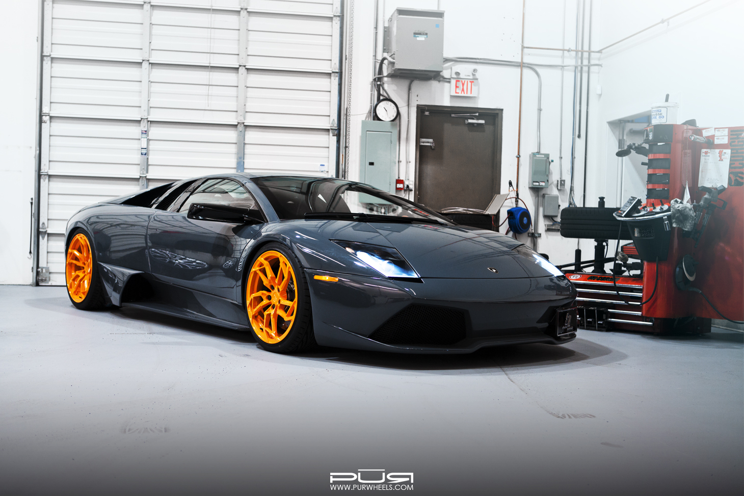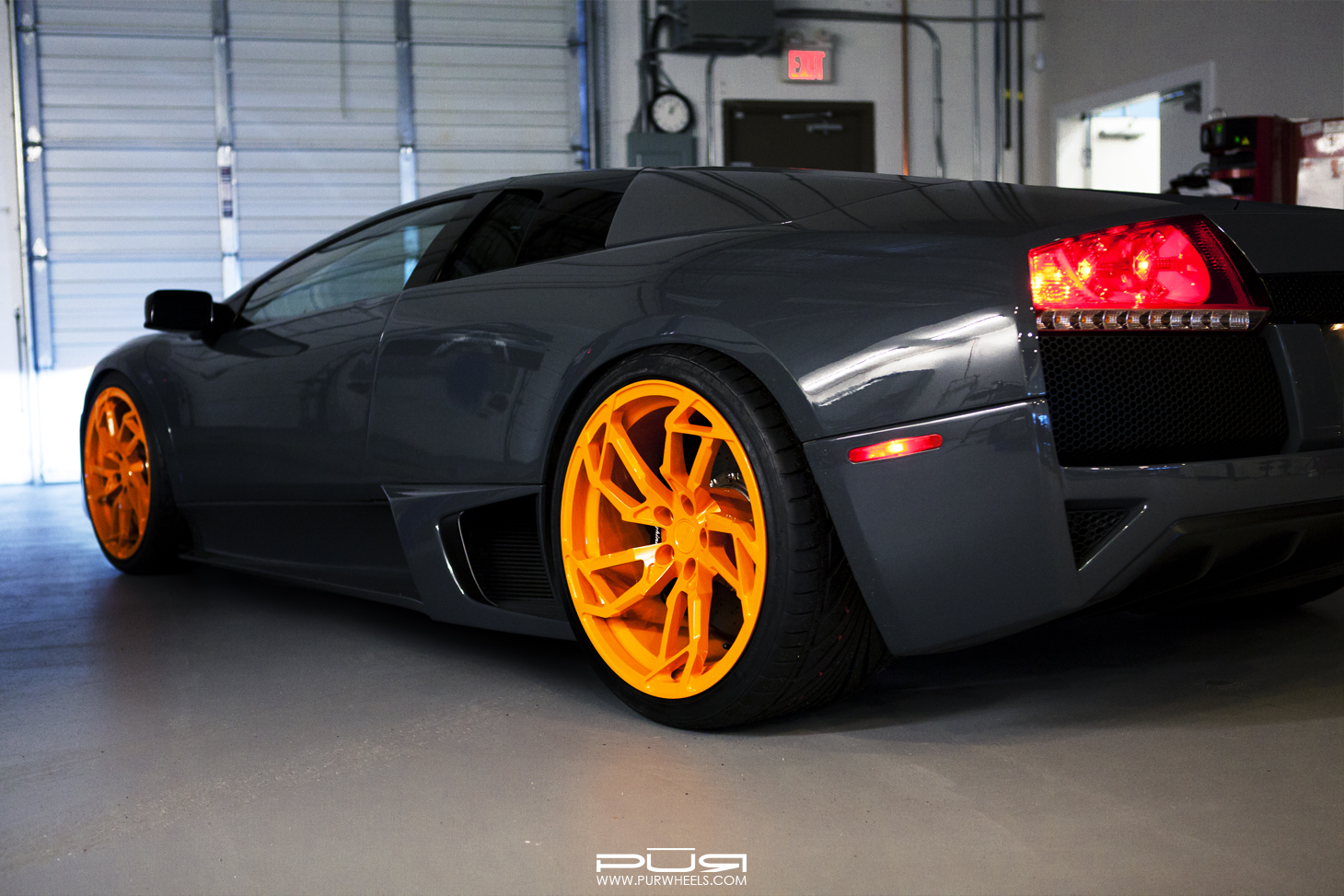 今天帶給各位一部深灰色塗裝的Lamborghini Murcielago LP640,輪圈換裝知名品牌PUR Wheels出品、型號RS05的款式並且施以亮眼的橘色塗裝,另外透過高低軟硬可調式避震器組的換裝將車身降低,營造出相當特殊的視覺效果,讓這部稍有年紀的蠻牛增添活潑動感氛圍。