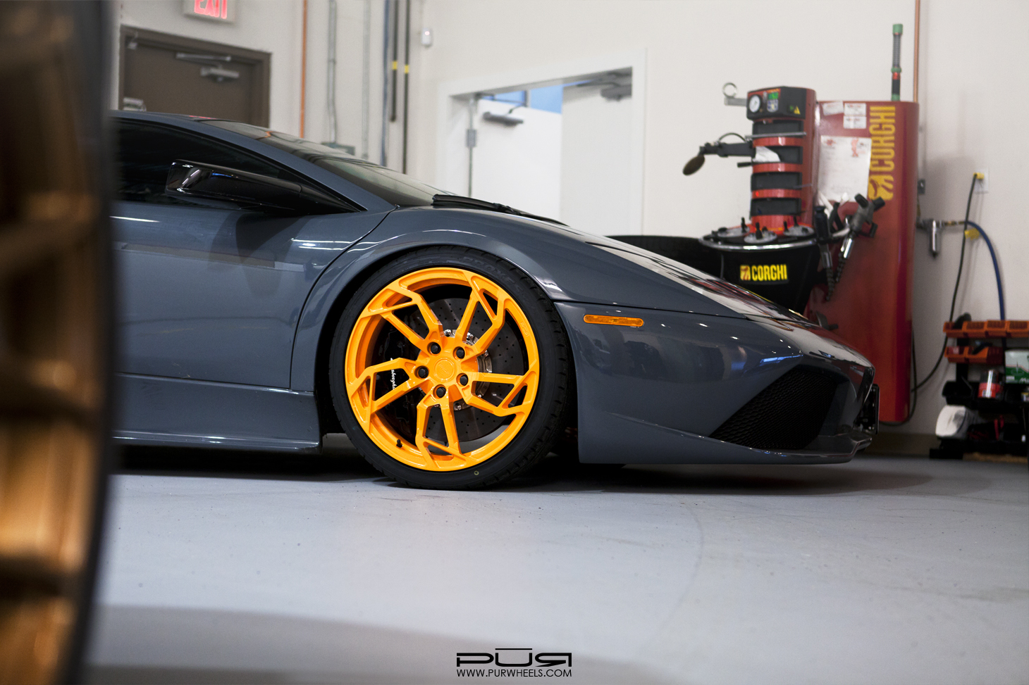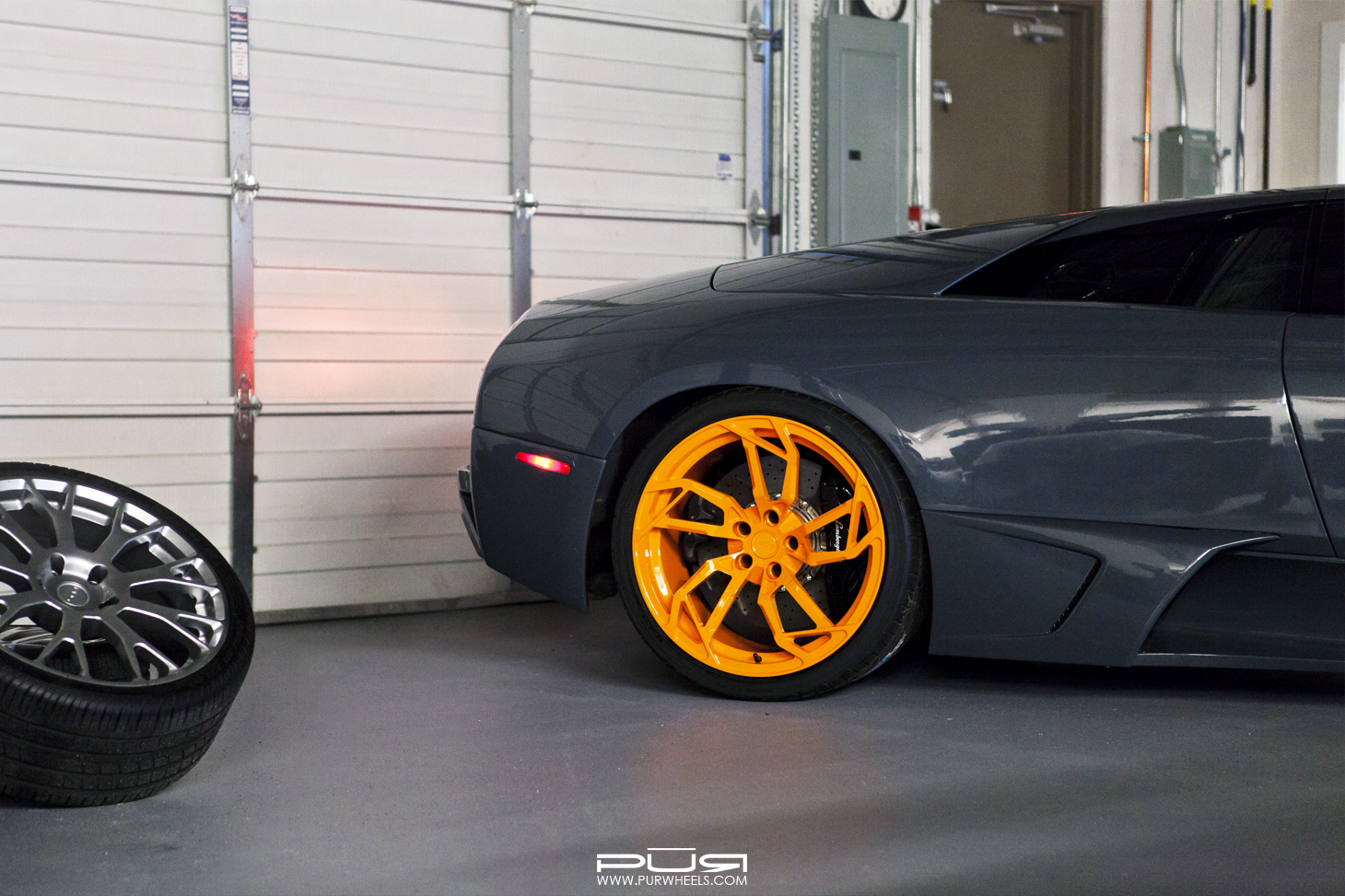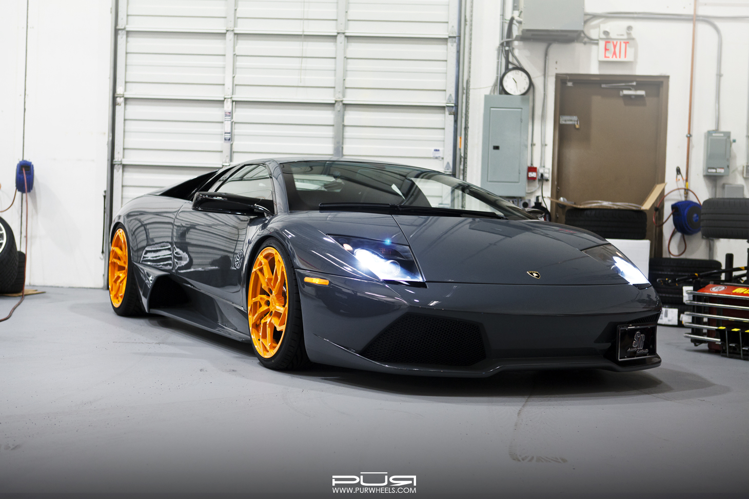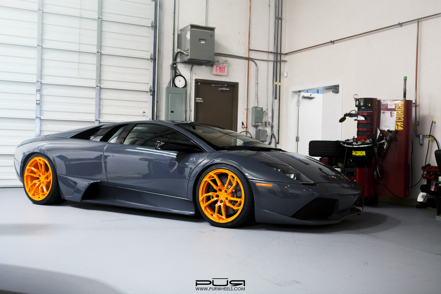 今天帶給各位一部深灰色塗裝的Lamborghini Murcielago LP640,輪圈換裝知名品牌PUR Wheels出品、型號RS05的款式並且施以亮眼的橘色塗裝,另外透過高低軟硬可調式避震器組的換裝將車身降低,營造出相當特殊的視覺效果,讓這部稍有年紀的蠻牛增添活潑動感氛圍。