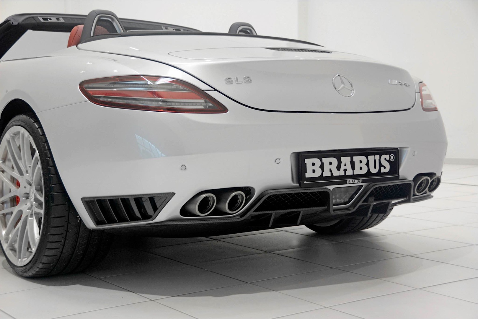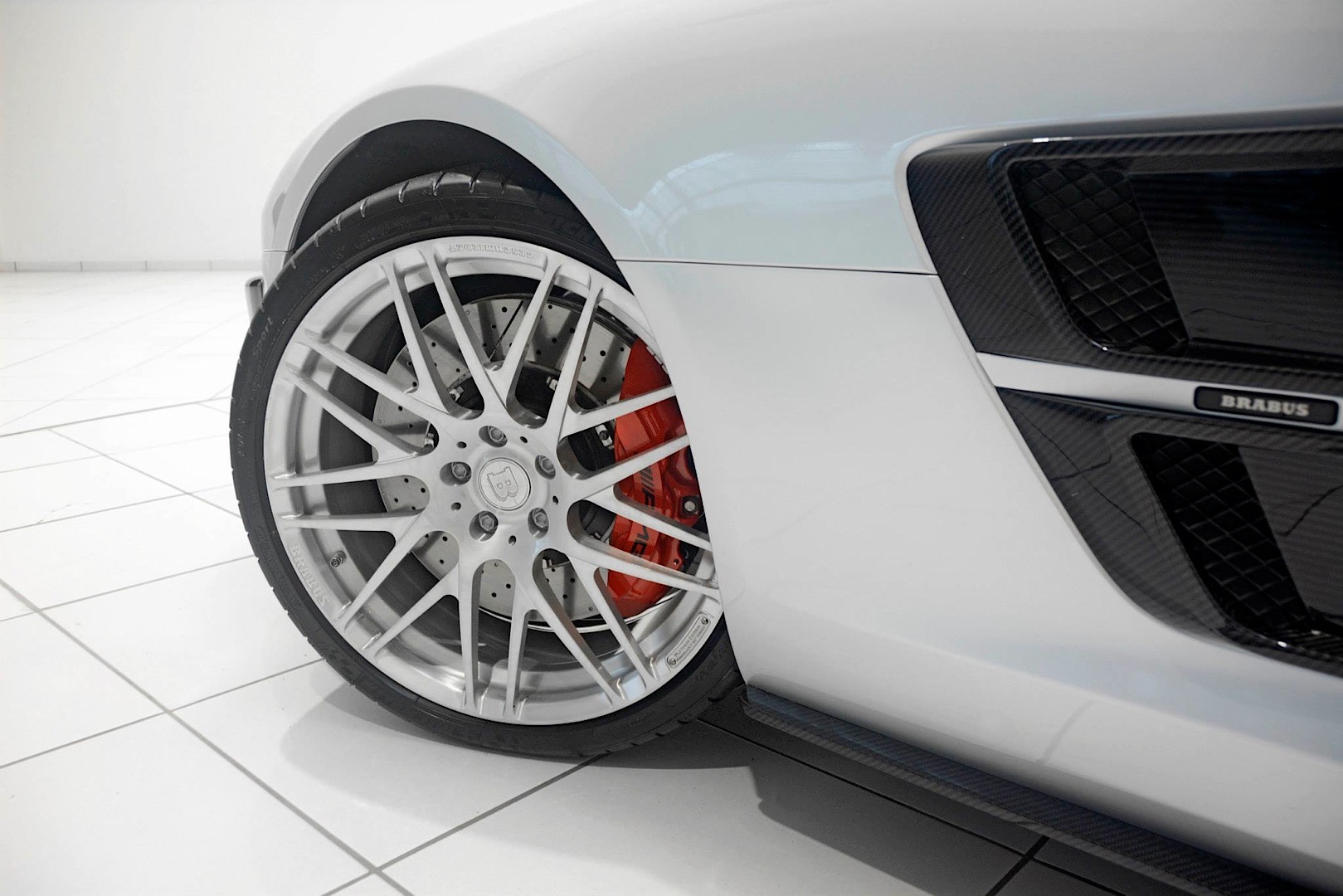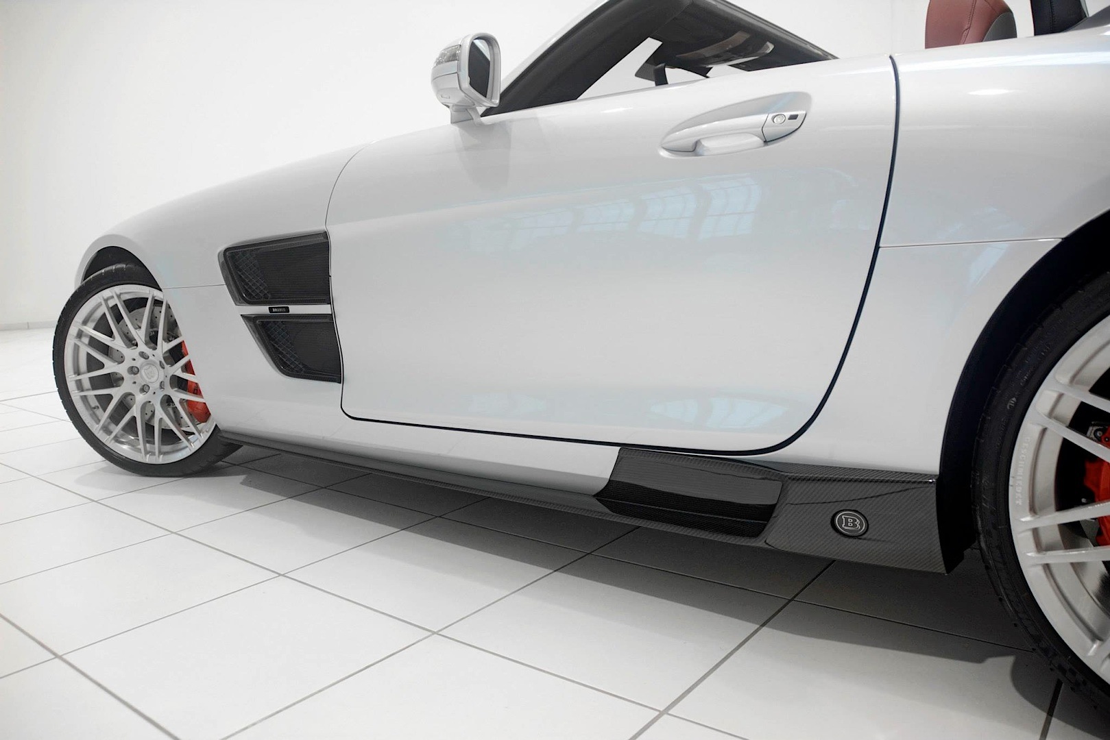 今天帶給各位一部由御用改裝品牌Brabus所操刀的Mercedes Benz SLS AMG Roadster,雖然不是Final Edition,但擁有Brabus部品的完整加持也別具風味。外觀部分,最搶眼的莫過於Brabus整組空力配件,局部保留著原有的碳纖維紋路,搭配在珍珠白色塗裝、紅黑雙色內裝的SLS AMG Roadster身上,再加上換裝的Brabus型號Monoblock F版本輪圈,完整度極高。