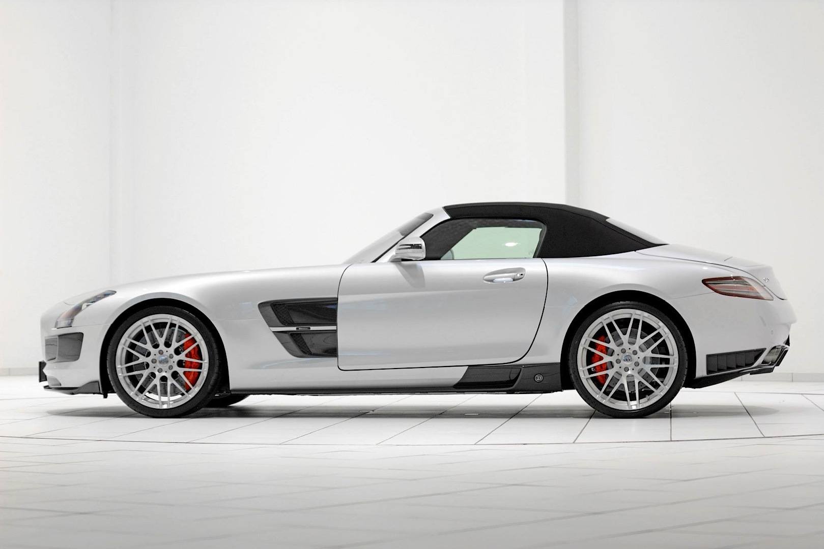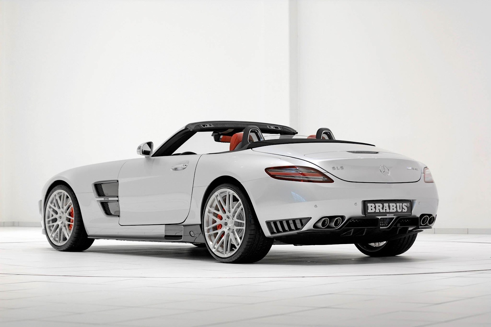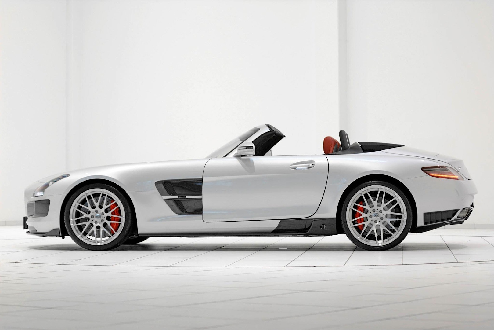 今天帶給各位一部由御用改裝品牌Brabus所操刀的Mercedes Benz SLS AMG Roadster,雖然不是Final Edition,但擁有Brabus部品的完整加持也別具風味。外觀部分,最搶眼的莫過於Brabus整組空力配件,局部保留著原有的碳纖維紋路,搭配在珍珠白色塗裝、紅黑雙色內裝的SLS AMG Roadster身上,再加上換裝的Brabus型號Monoblock F版本輪圈,完整度極高。