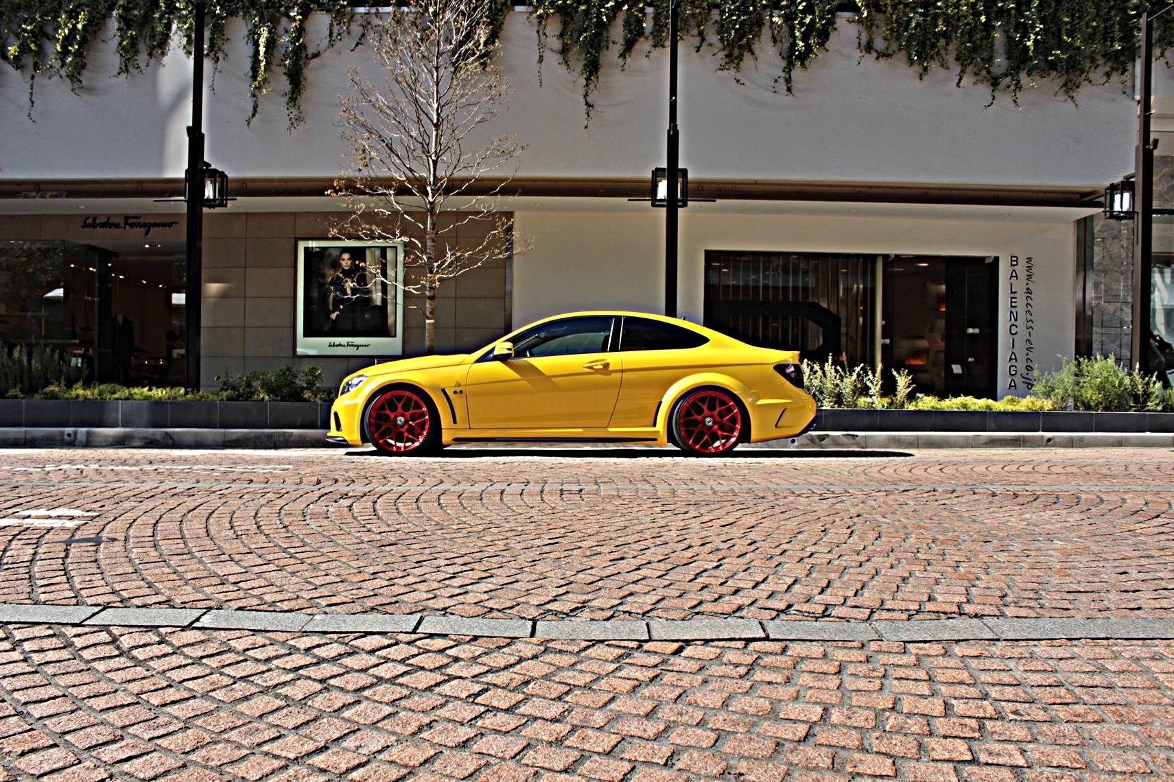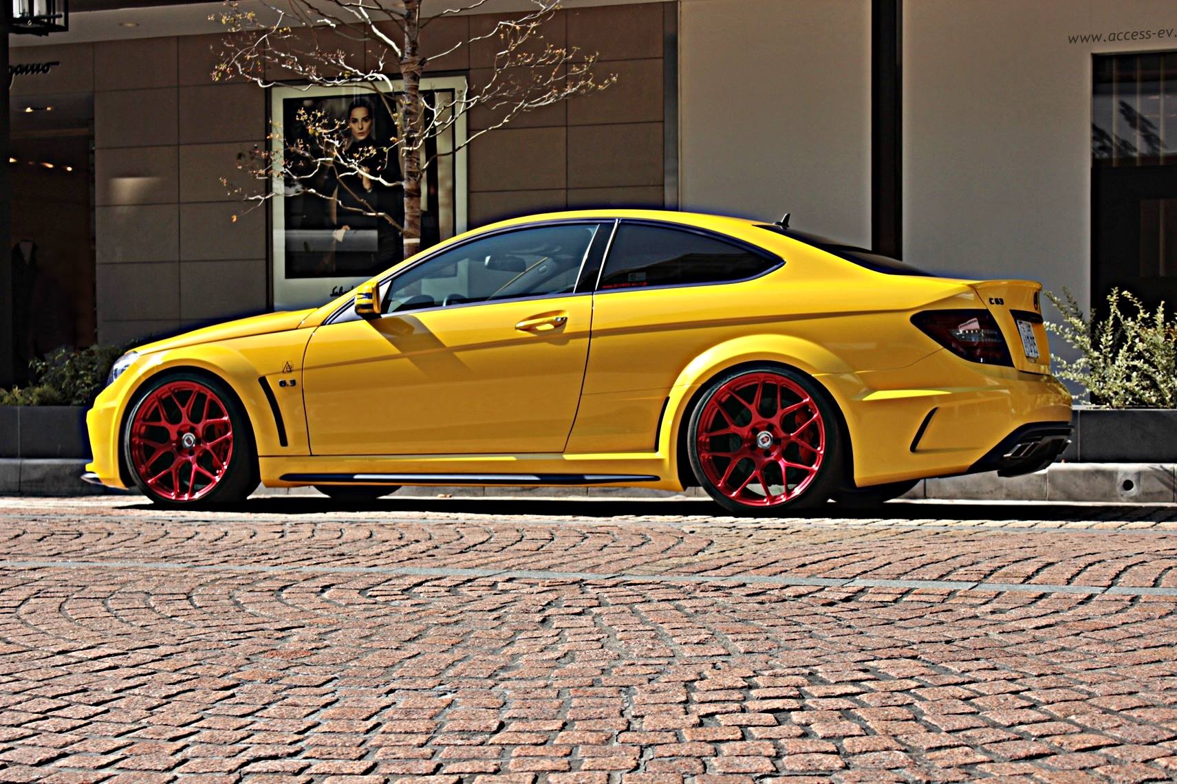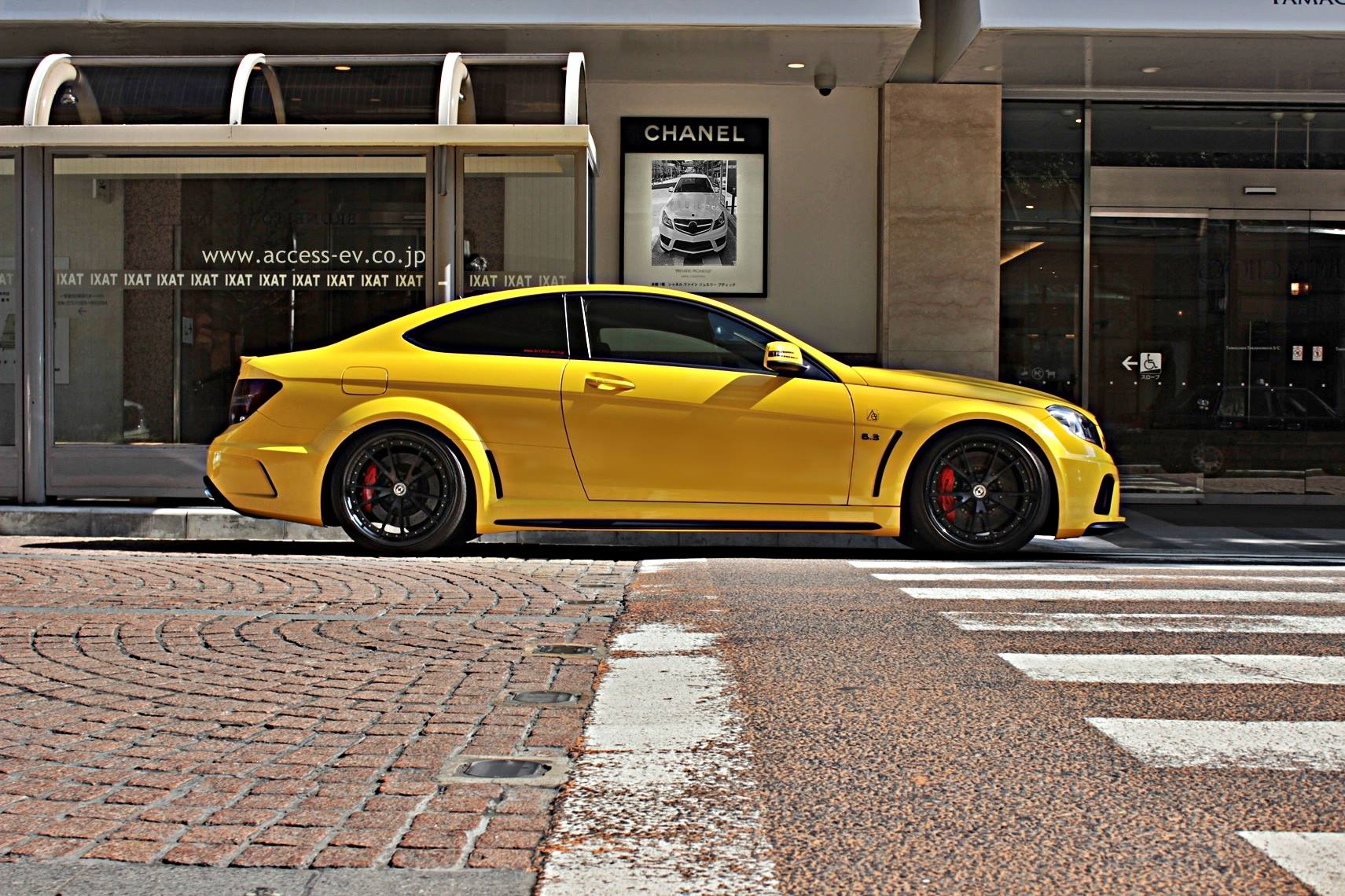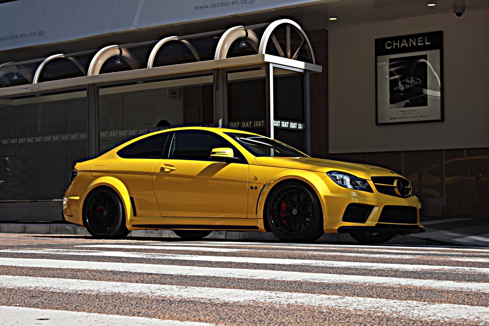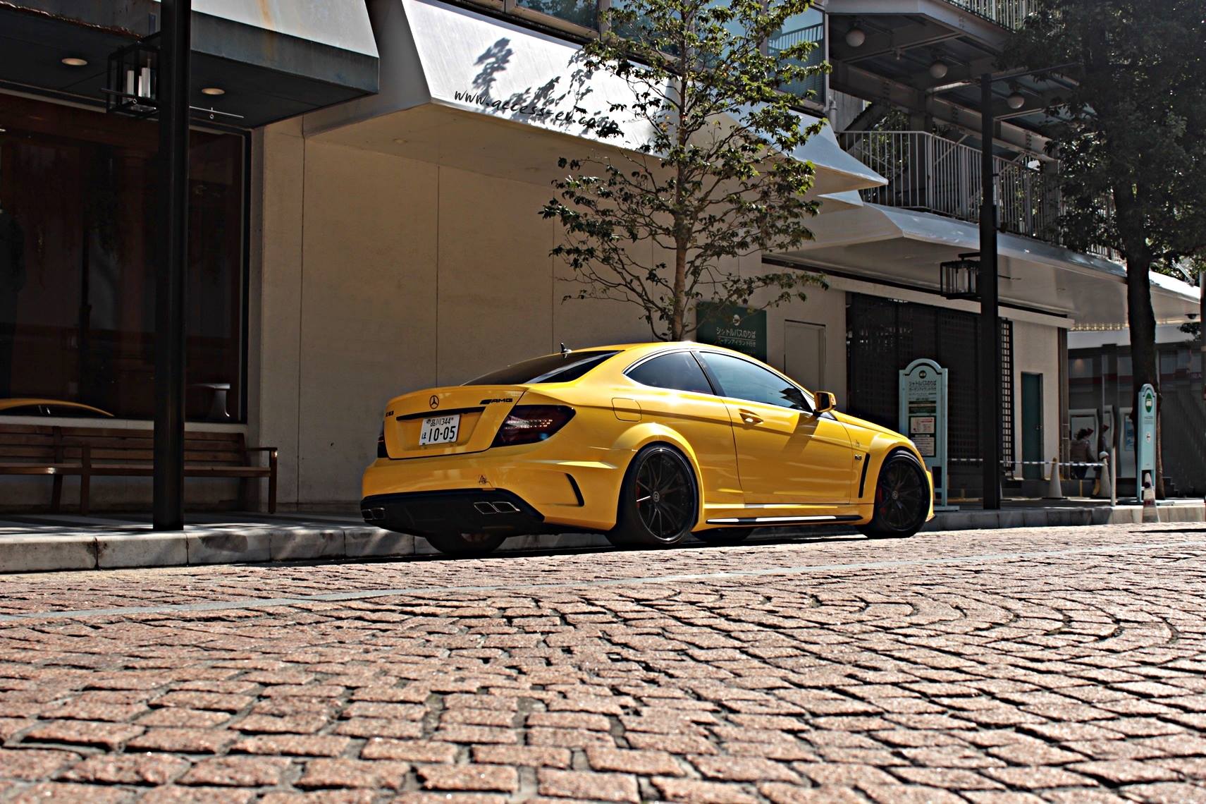 今天帶給各位的則是800部當中被銷往日本(Japan)的其中一部Mercedes Benz C63 AMG Coupe Black Series,由改裝廠Wing Auto與Access-ev共同操刀規劃,左右側輪圈換上兩組不同、皆由知名品牌HRE Performance Wheels之輪圈,型號分別為較新款式的S104與經典款P40SC,其中P40SC選用亮眼的電鍍紅色塗裝,S104則採用黑色處理,讓車身左右兩側呈現不同風格,另外換裝高低軟硬可調式避震器組將車身降低,搭配全車施以的3M黃色貼膜,吸睛程度百分百。