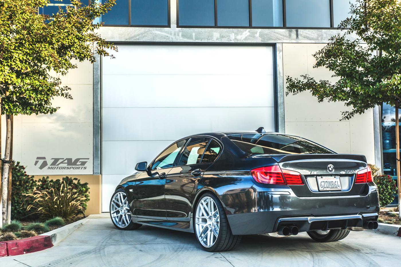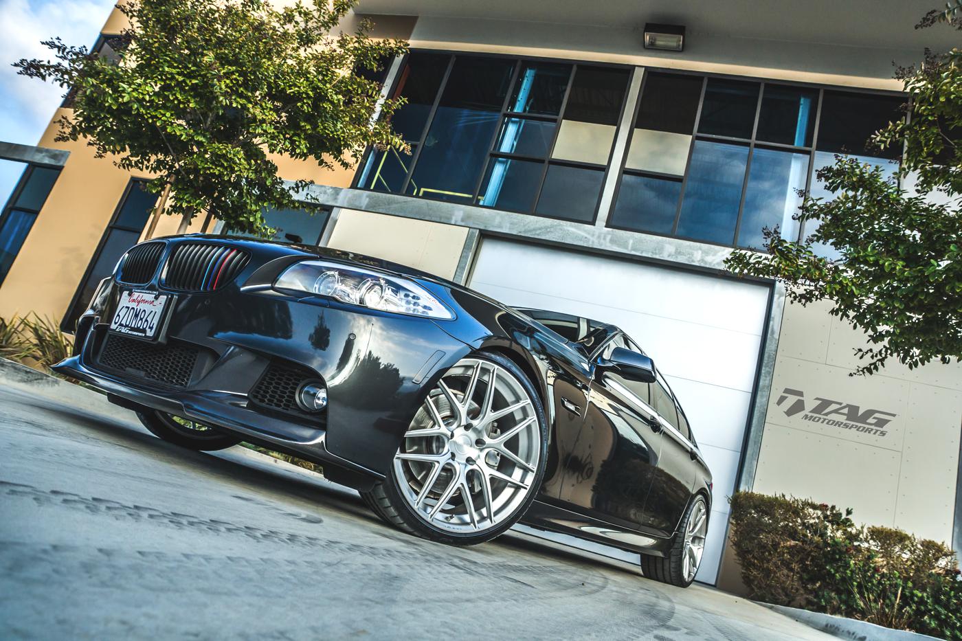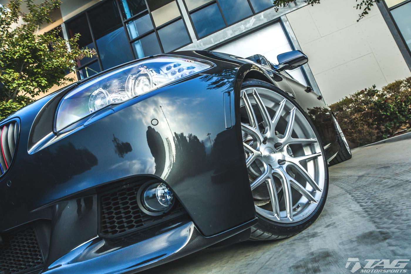 本地總代理沒有販售的BMW F10 550i xDrive原廠搭載4.4升V8渦輪增壓引擎,最大馬力為445HP,輔以八速手自排變速箱與xDrive四輪傳動系統,百里加速僅需4.5秒便可完成,表現不俗。今天帶給各位由改裝廠TAG Motorsports操刀的BMW F10 550i xDrive於出廠時便選配M-Sport空力套件,之後加裝Vorsteiner碳纖維前下巴、後下擾流板與後上擾流尾翼等部品,搭配MORR Wheels出品、型號VS70的21吋輪圈並且換裝AC Schnitzer短彈簧組將車身略微降低,整體流露出有別於頂級旗艦M5的優雅動感氣勢。動力方面,TAG Motorsports則是透過電腦程式的改寫與高性能排氣管的換裝,將最大馬力提升至500HP。
