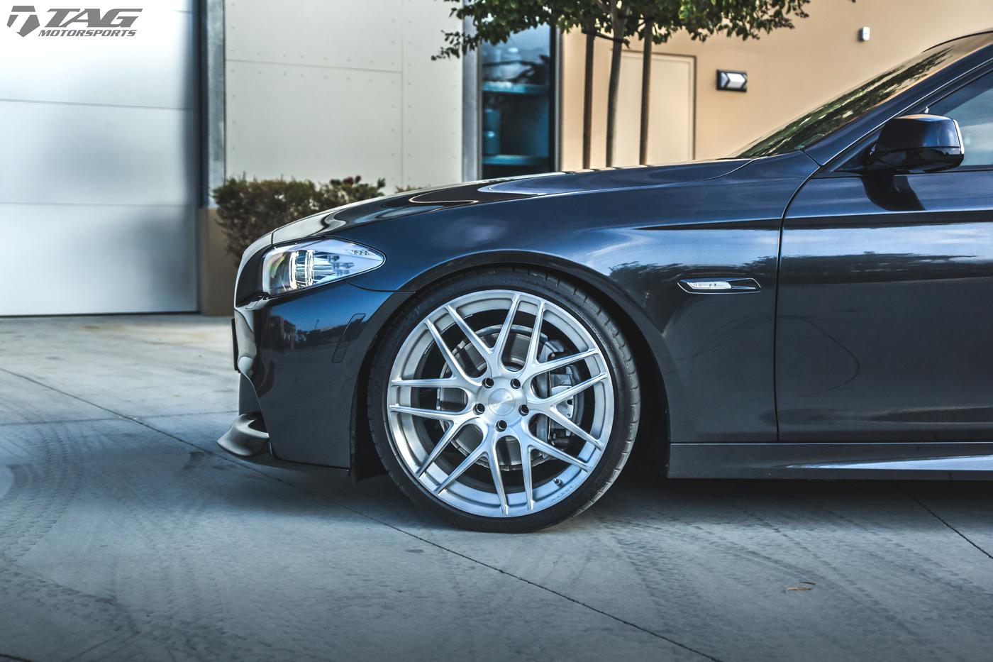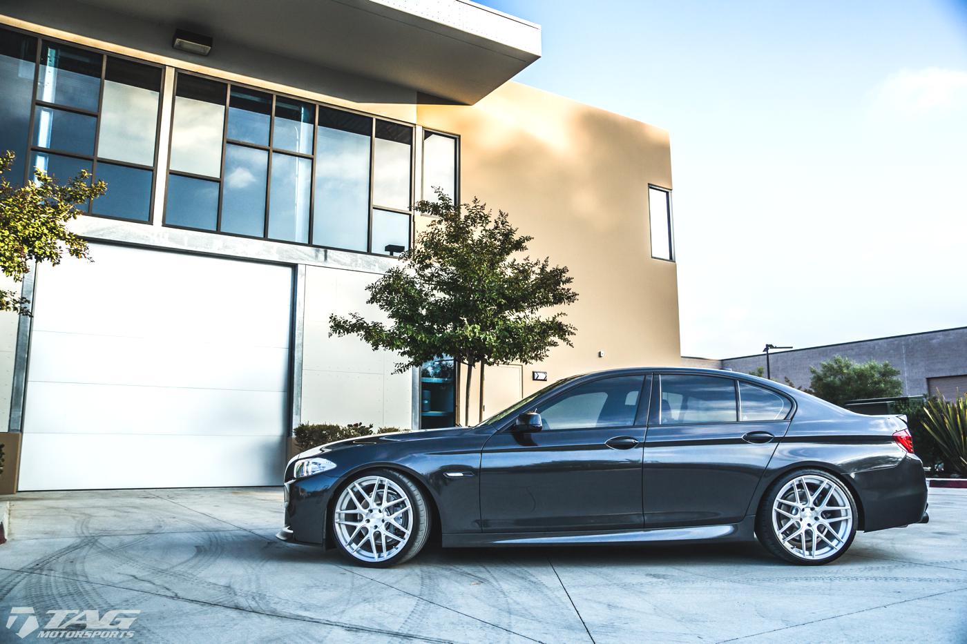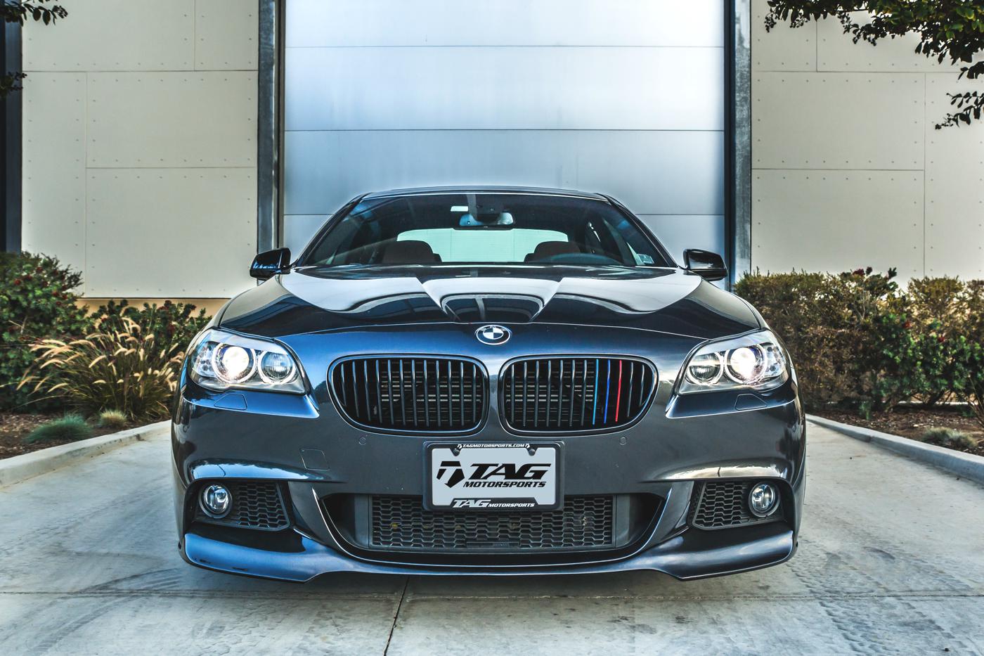 本地總代理沒有販售的BMW F10 550i xDrive原廠搭載4.4升V8渦輪增壓引擎,最大馬力為445HP,輔以八速手自排變速箱與xDrive四輪傳動系統,百里加速僅需4.5秒便可完成,表現不俗。今天帶給各位由改裝廠TAG Motorsports操刀的BMW F10 550i xDrive於出廠時便選配M-Sport空力套件,之後加裝Vorsteiner碳纖維前下巴、後下擾流板與後上擾流尾翼等部品,搭配MORR Wheels出品、型號VS70的21吋輪圈並且換裝AC Schnitzer短彈簧組將車身略微降低,整體流露出有別於頂級旗艦M5的優雅動感氣勢。動力方面,TAG Motorsports則是透過電腦程式的改寫與高性能排氣管的換裝,將最大馬力提升至500HP。