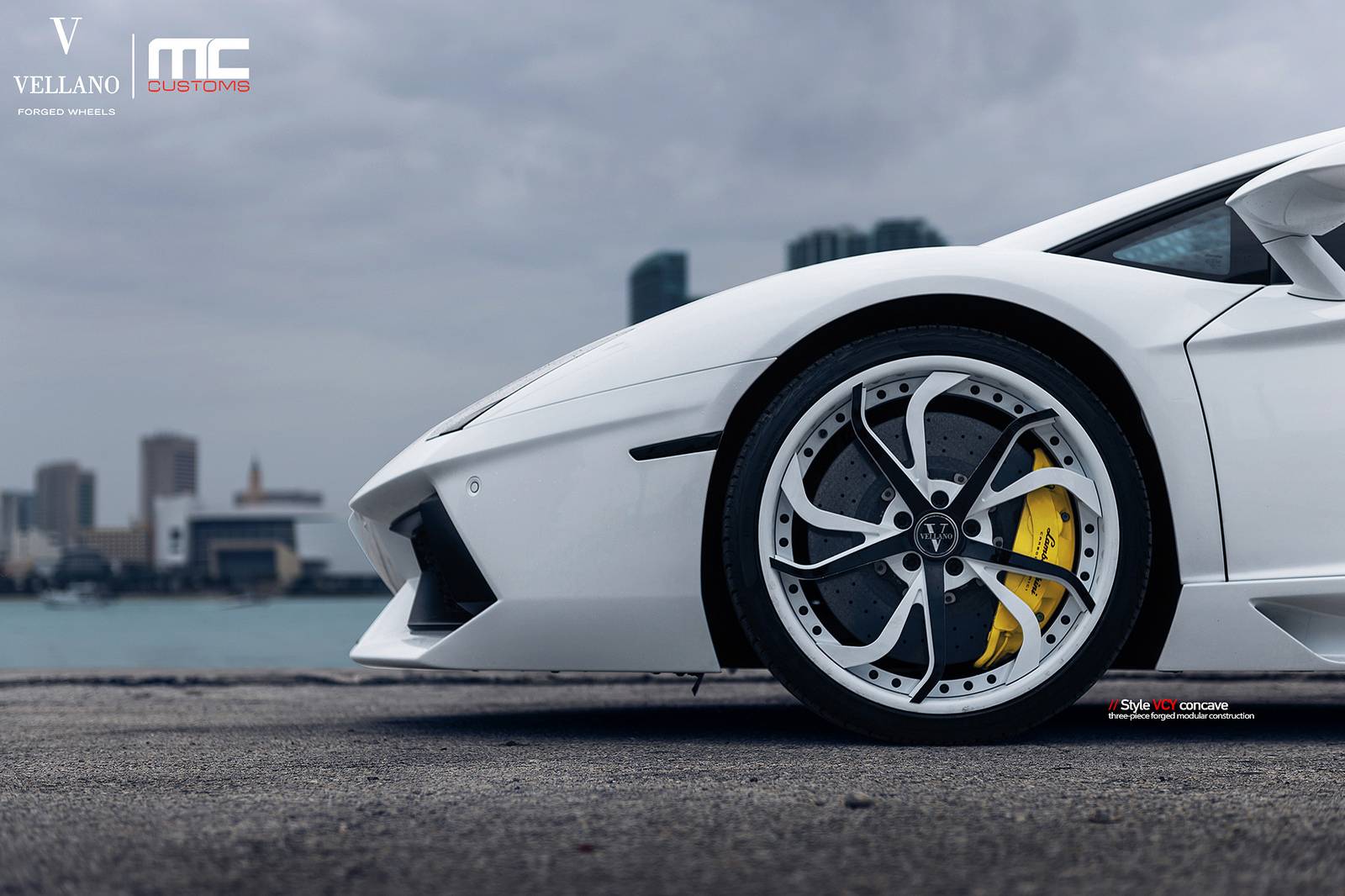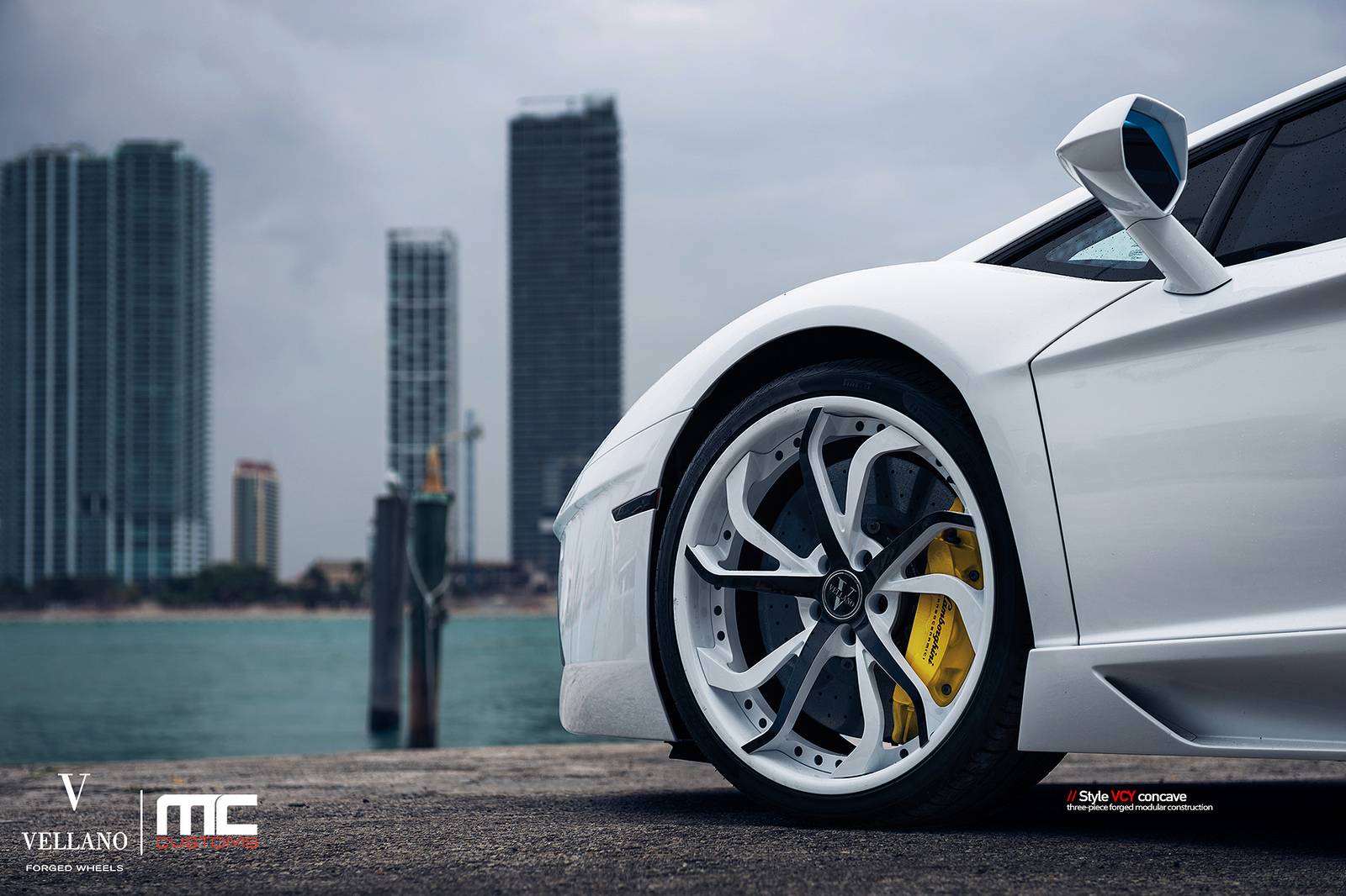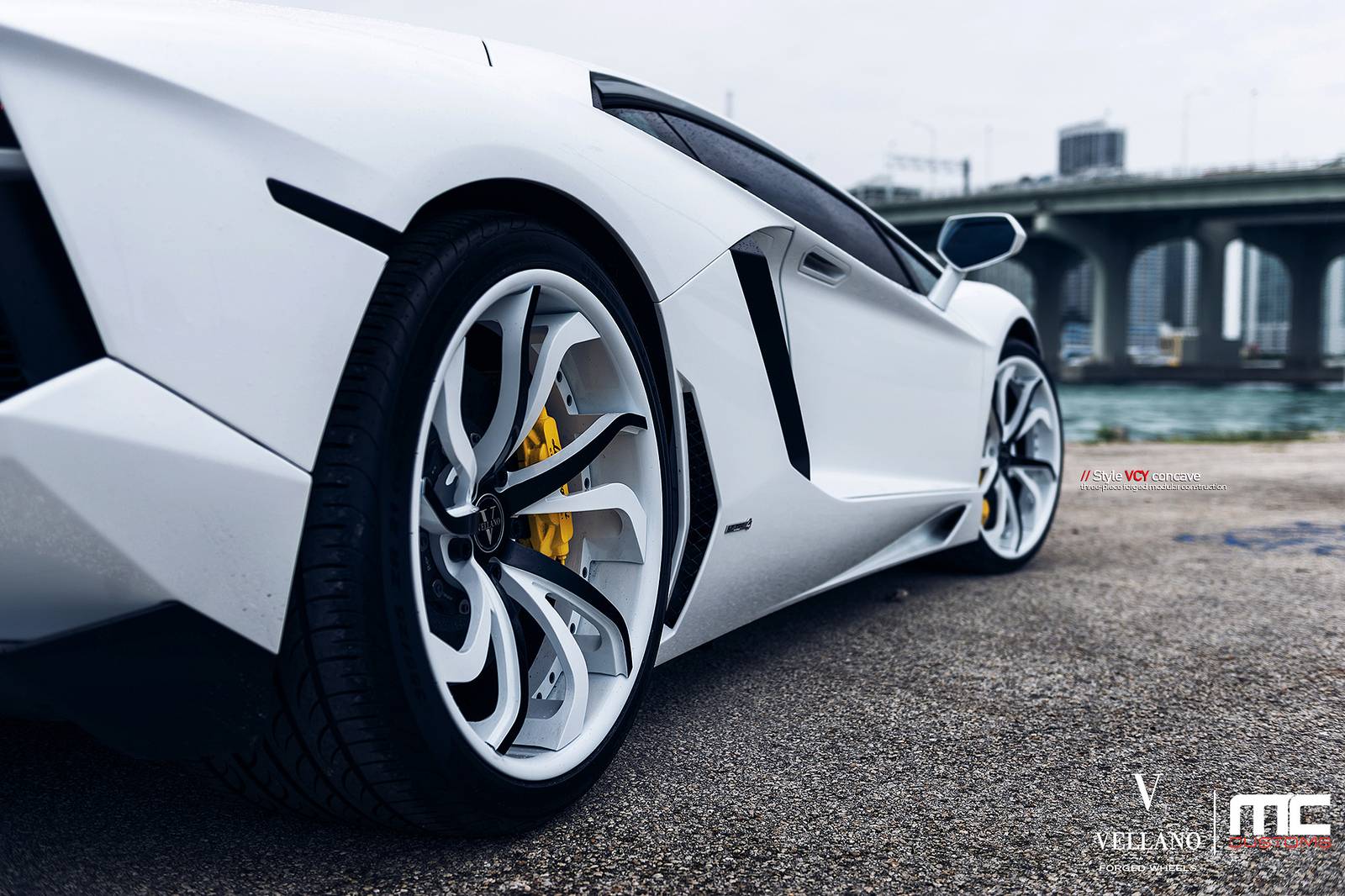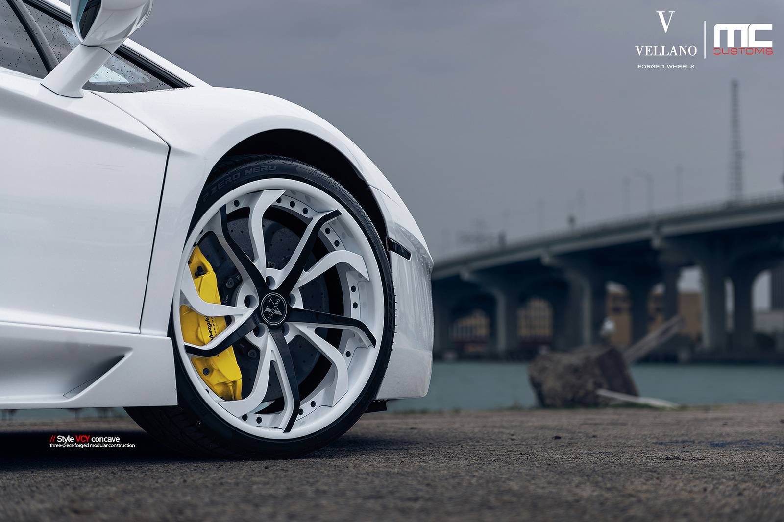 今天帶給各位由輪圈品牌Vellano Wheels所操刀的Lamborghini Aventador LP700-4,車身為常見的Bianco Isis白色塗裝,於出廠時選配黃色塗裝煞車卡鉗,另外換裝Vellano Wheels型號VCY的雙色版本輪圈,螺旋狀的造型呈現出特殊的動感視覺效果,不同於DMC、Mansory、Novitec Torado等國際改裝大廠的重口味改裝,這部相對素雅、僅換裝輪圈與小配件的700HP超跑同樣相當搶眼。
