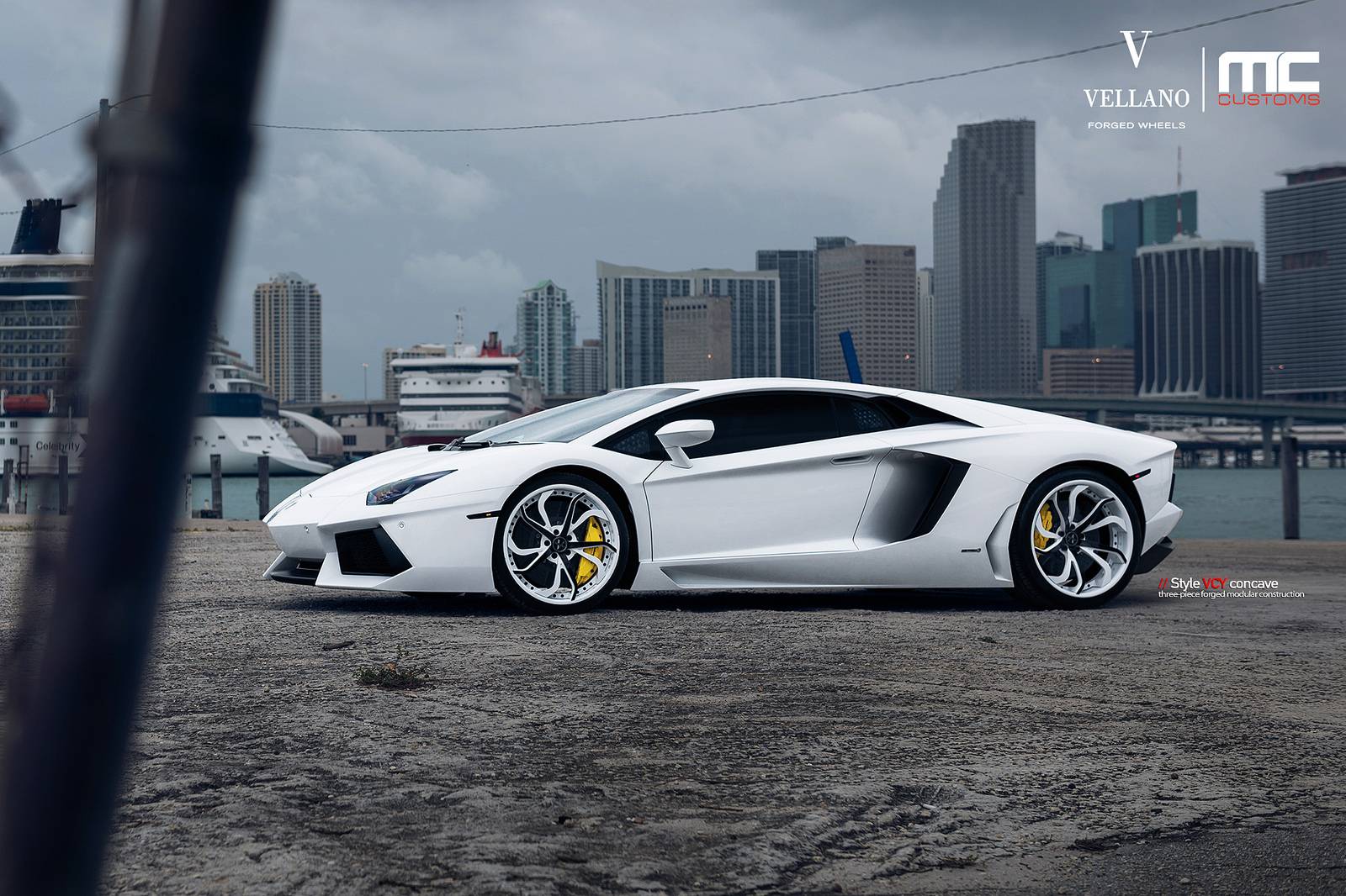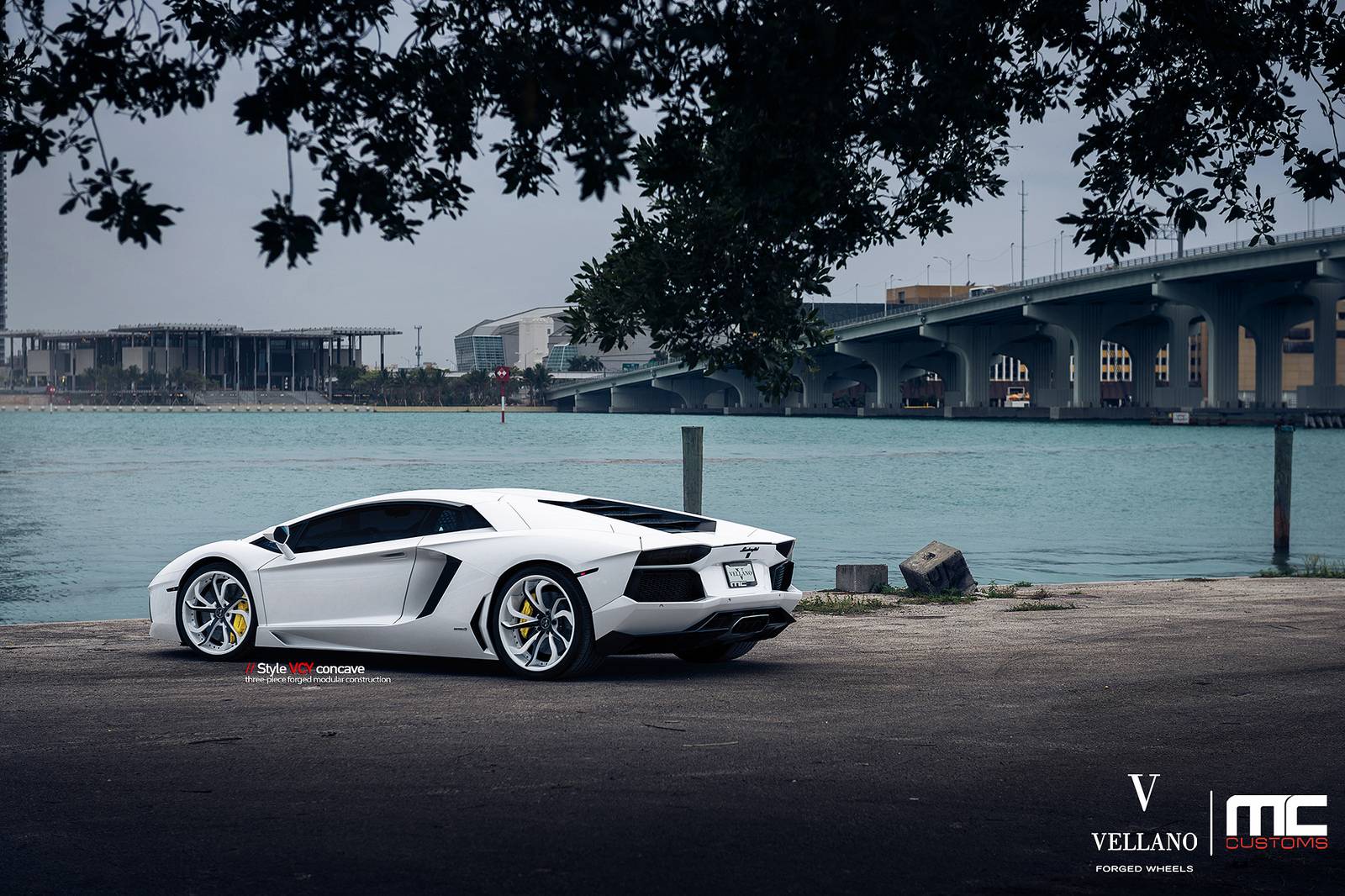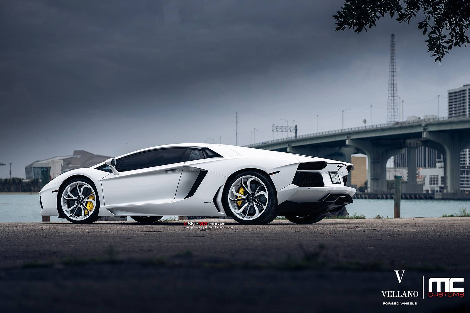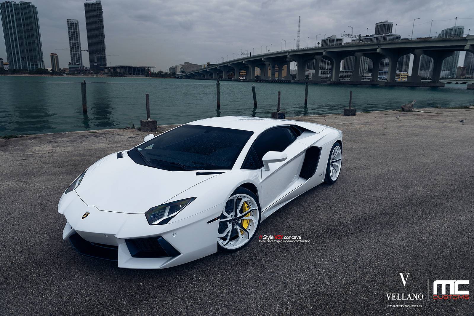 今天帶給各位由輪圈品牌Vellano Wheels所操刀的Lamborghini Aventador LP700-4,車身為常見的Bianco Isis白色塗裝,於出廠時選配黃色塗裝煞車卡鉗,另外換裝Vellano Wheels型號VCY的雙色版本輪圈,螺旋狀的造型呈現出特殊的動感視覺效果,不同於DMC、Mansory、Novitec Torado等國際改裝大廠的重口味改裝,這部相對素雅、僅換裝輪圈與小配件的700HP超跑同樣相當搶眼。