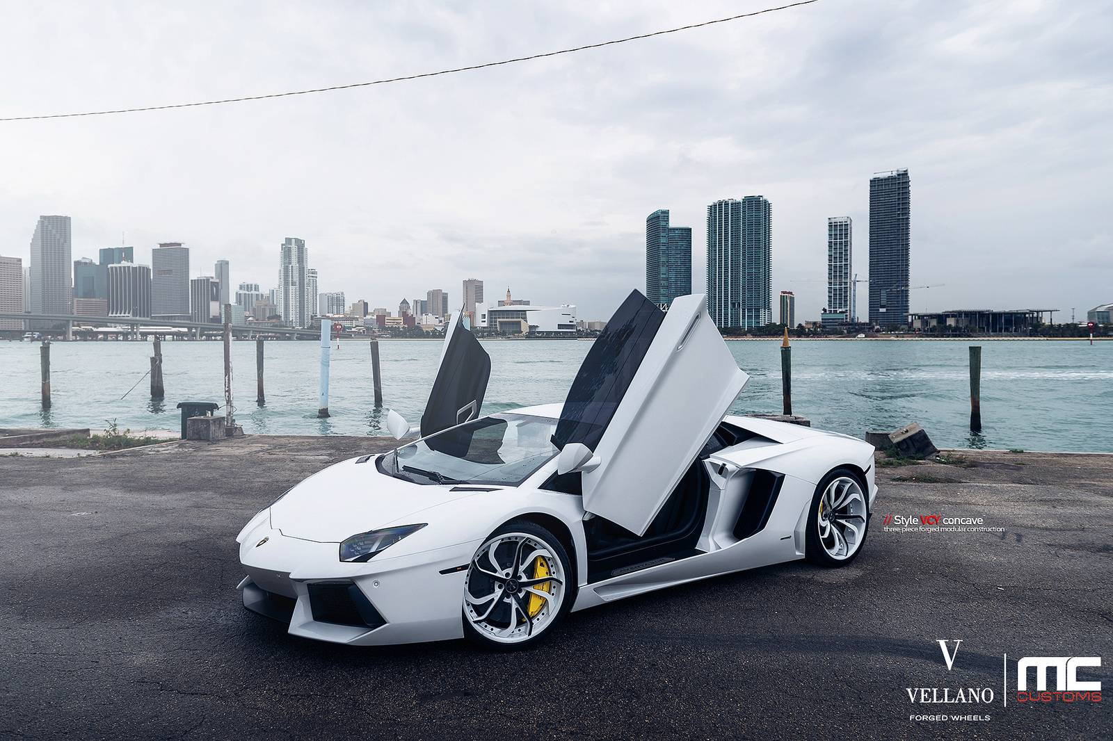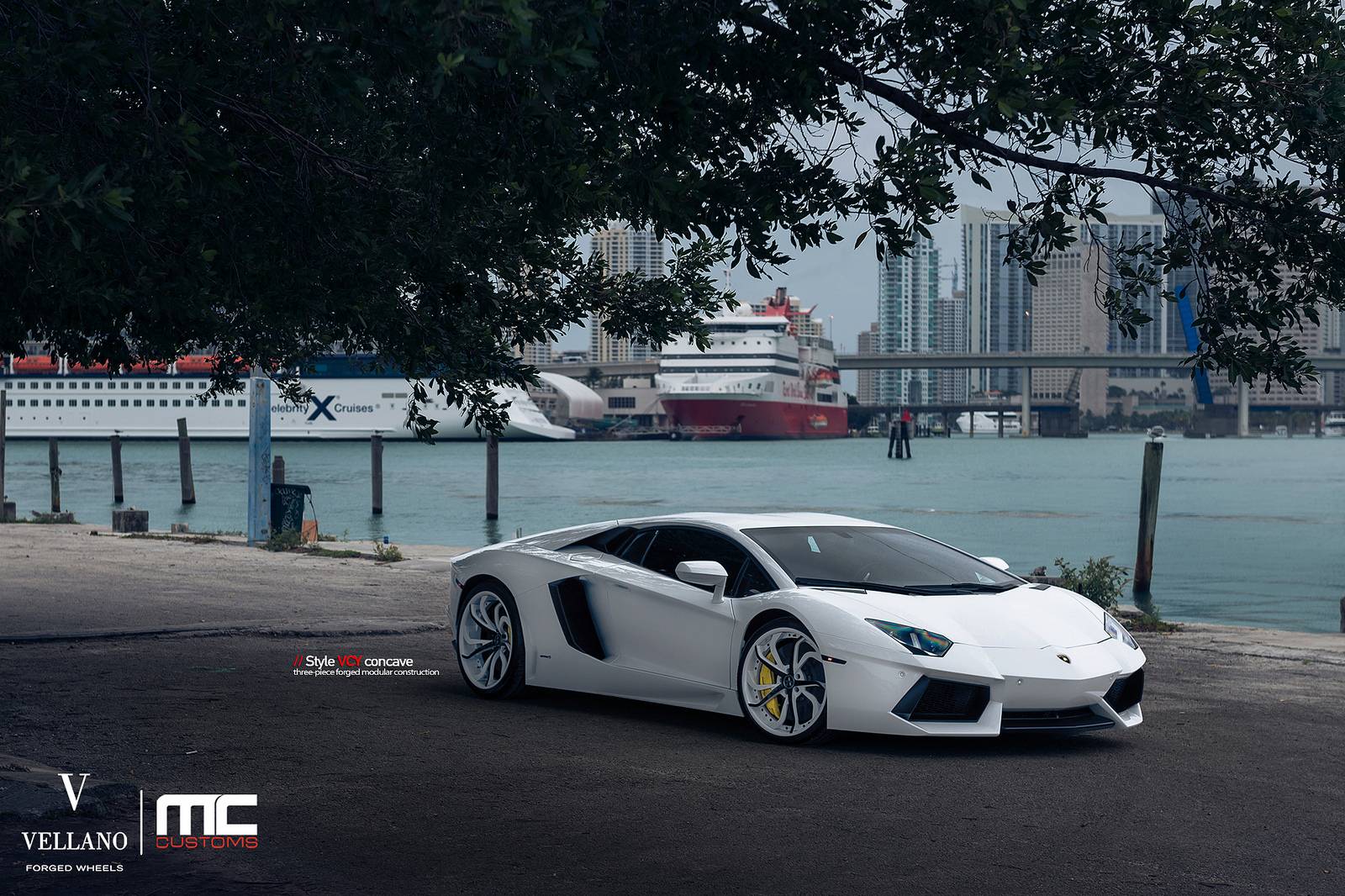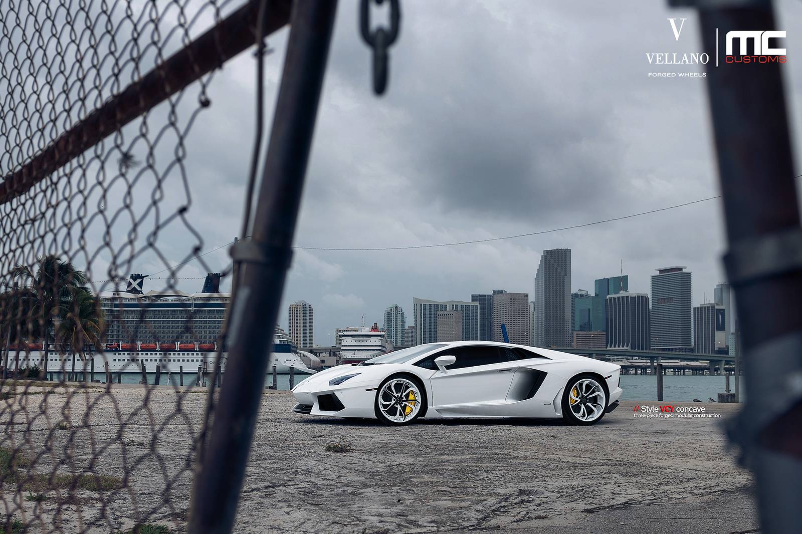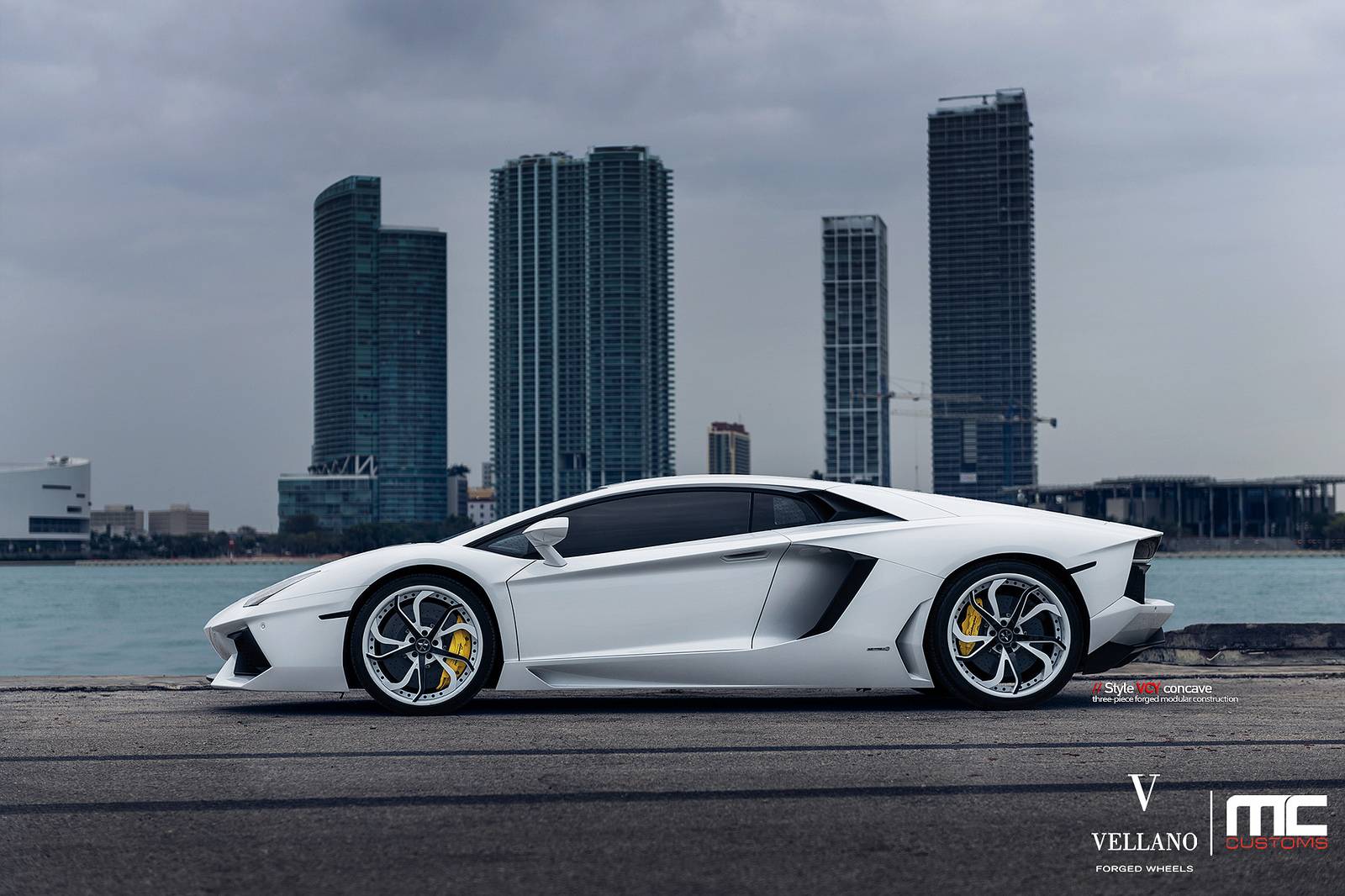 今天帶給各位由輪圈品牌Vellano Wheels所操刀的Lamborghini Aventador LP700-4,車身為常見的Bianco Isis白色塗裝,於出廠時選配黃色塗裝煞車卡鉗,另外換裝Vellano Wheels型號VCY的雙色版本輪圈,螺旋狀的造型呈現出特殊的動感視覺效果,不同於DMC、Mansory、Novitec Torado等國際改裝大廠的重口味改裝,這部相對素雅、僅換裝輪圈與小配件的700HP超跑同樣相當搶眼。