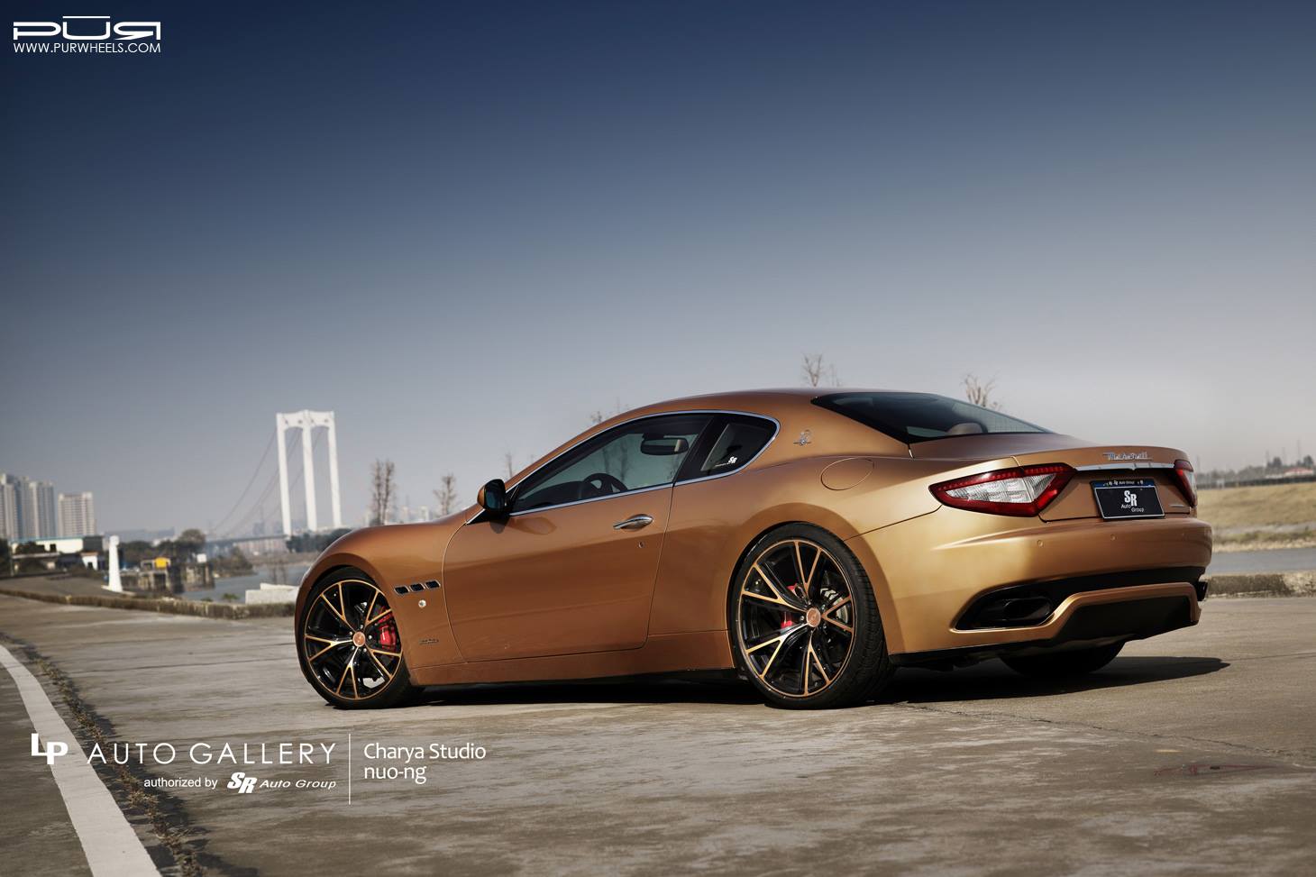 義大利車廠Maserati近年來積極布局調整旗下車款陣容,且為了迎戰接下來幾年內爆量的目標,陸續推出新款Maserati Quattroporte與Ghibli四門房車,而目前尚未改款的雙門跑車Maserati Gran Turismo車系也即將於2015年發表後繼車款。向來是Maserati核心車款的GranTurismo擁有V8自然進氣引擎與雙門四座的配置,往往是超級跑車與轎跑車間之特有級距的熱門銷售車款。動力方面,在Quattroporte與Ghibli都已出現渦輪增壓設置的情況下,目前GranTursimo全車系依舊維持自然進氣的設定,分為4.2升與4.7升兩種,最強版本為擁有460HP的輕量化車型GranTurismo MC Stradale。今天帶給各位由中國改裝廠LP Auto Gallery所操刀的Maserati GranTurismo,車身採用亮眼的金黃色搭配黑金雙色塗裝、知名品牌PUR Wheels出品、型號9ine的單片式輪圈,另外換裝高低軟硬可調式避震器將車身降低,讓這部義大利雙門跑車別具風味。