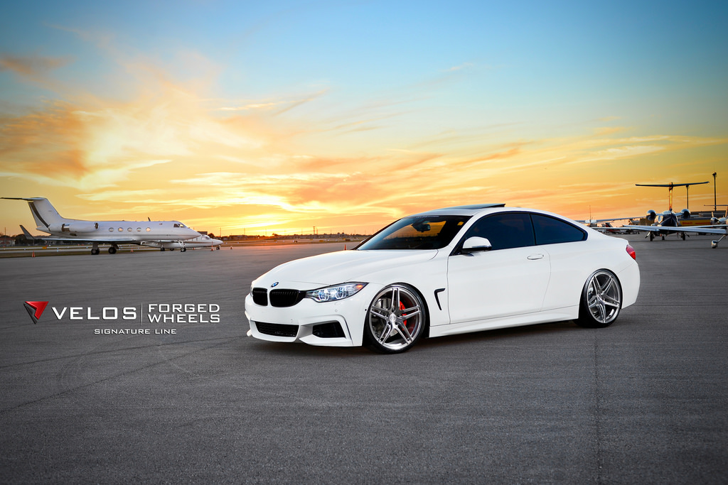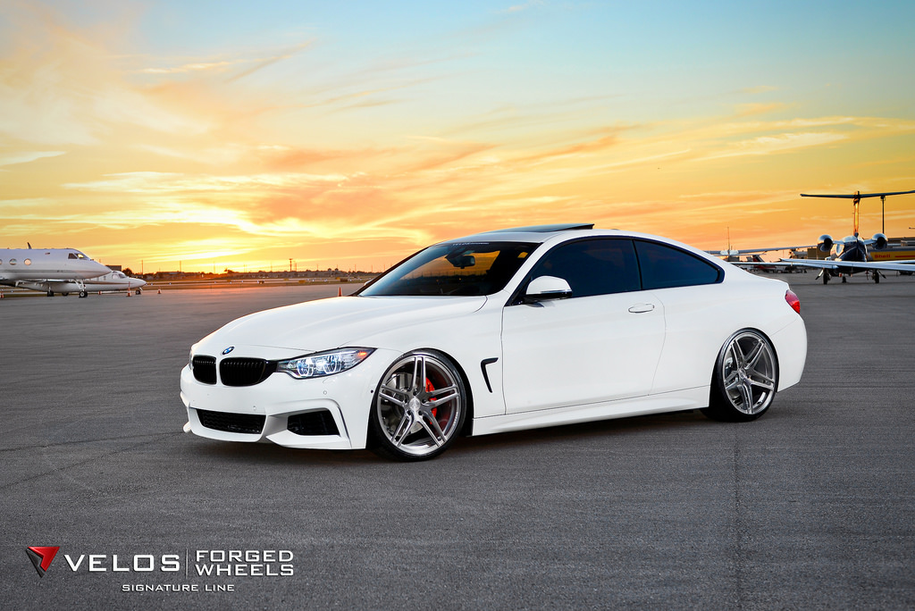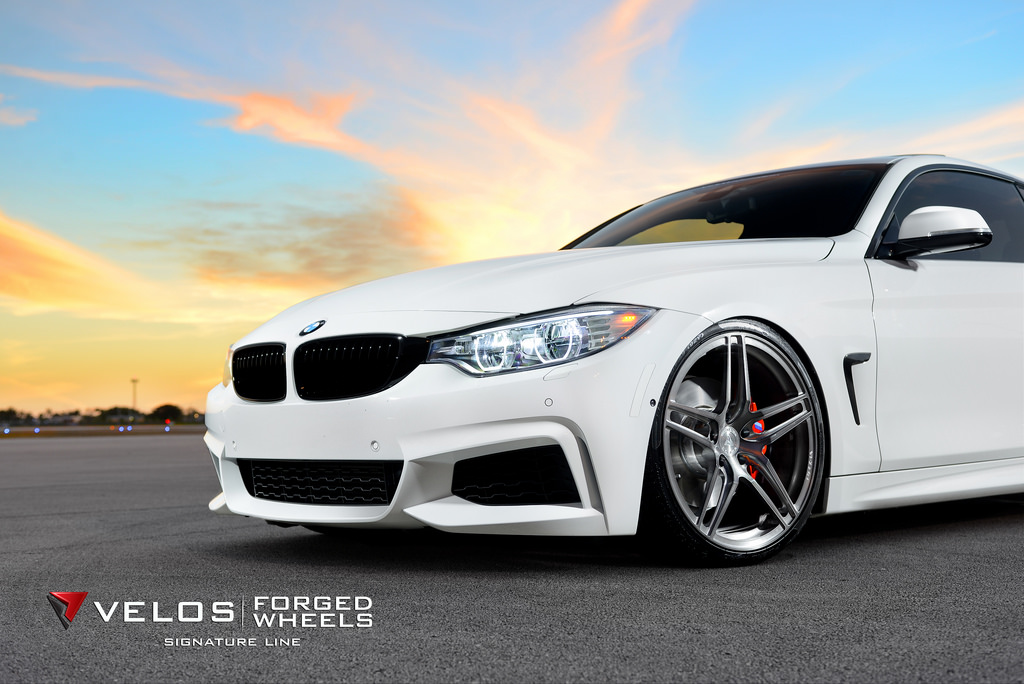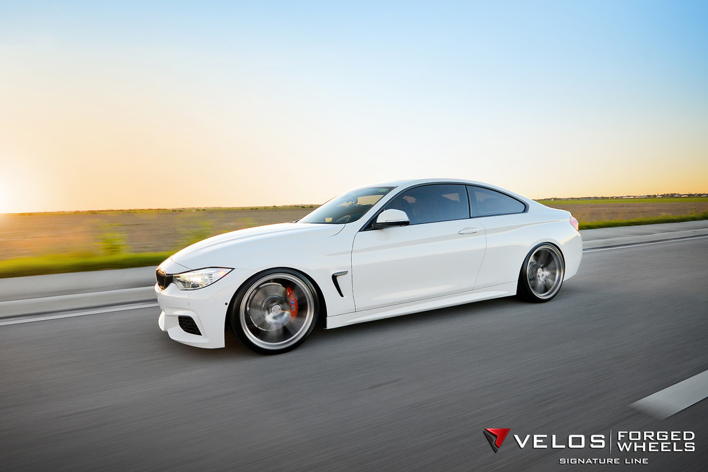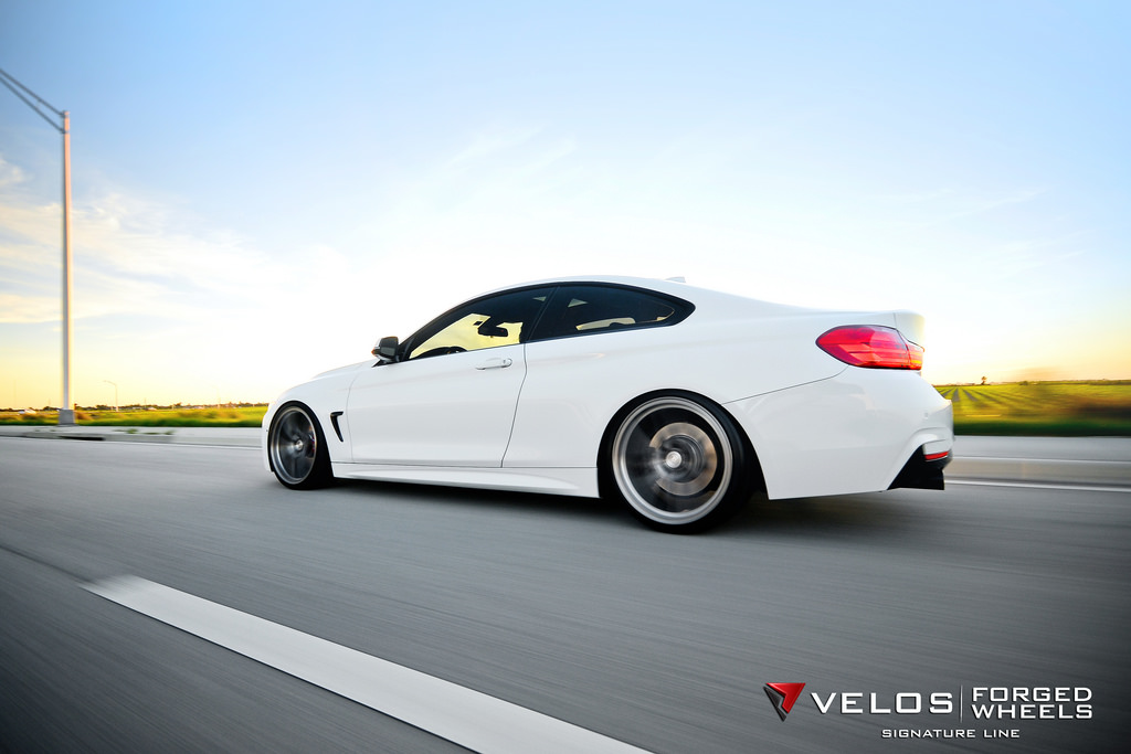揮別代號E92的舊款BMW 3系列雙門跑車,我們喜獲全新的4系列,而在性能旗艦M4尚未大量交車前,4系列旗下最強悍的版本還是搭載3.0升渦輪增壓、直列六缸引擎的435i。承襲過去3系列雙門跑車在市場中的熱銷模式,我們陸續見到不少4系列改裝版本出現,而今天帶給各位的是由改裝廠Velos Designwerks所操刀的BMW 435i,車身採用BMW獨有的Alpine White白色塗裝並於出廠時便選配全車M款空力套件,另外換裝鋼琴烤漆黑色水箱護罩與紅色M版本煞車卡鉗等部品。