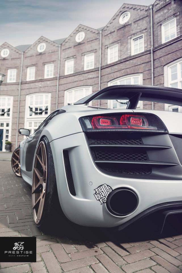 然而,現在還沒入手Audi R8 GT的朋友們可能會有些遺憾,畢竟它全球限量333部的配額已經全數銷售一空。今天帶給各位一部由Prestige Auto Couture所操刀的Audi R8 GT,換裝BC Forged Wheels消光銅色輪圈與高低軟硬可調式避震器組將車身降低,而車身貼著其近期參加歐洲知名Runball Rally的年度活動時所貼之車身貼紙,略微的妝點便讓這部Audi R8 GT跑格盡現。
