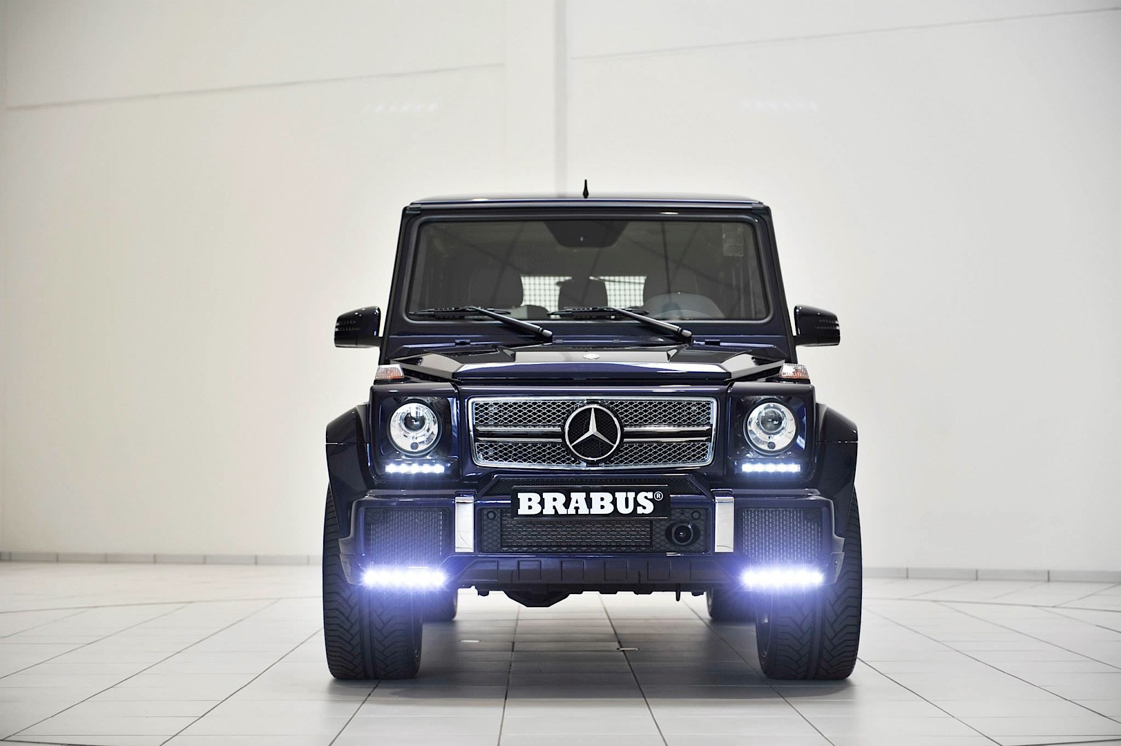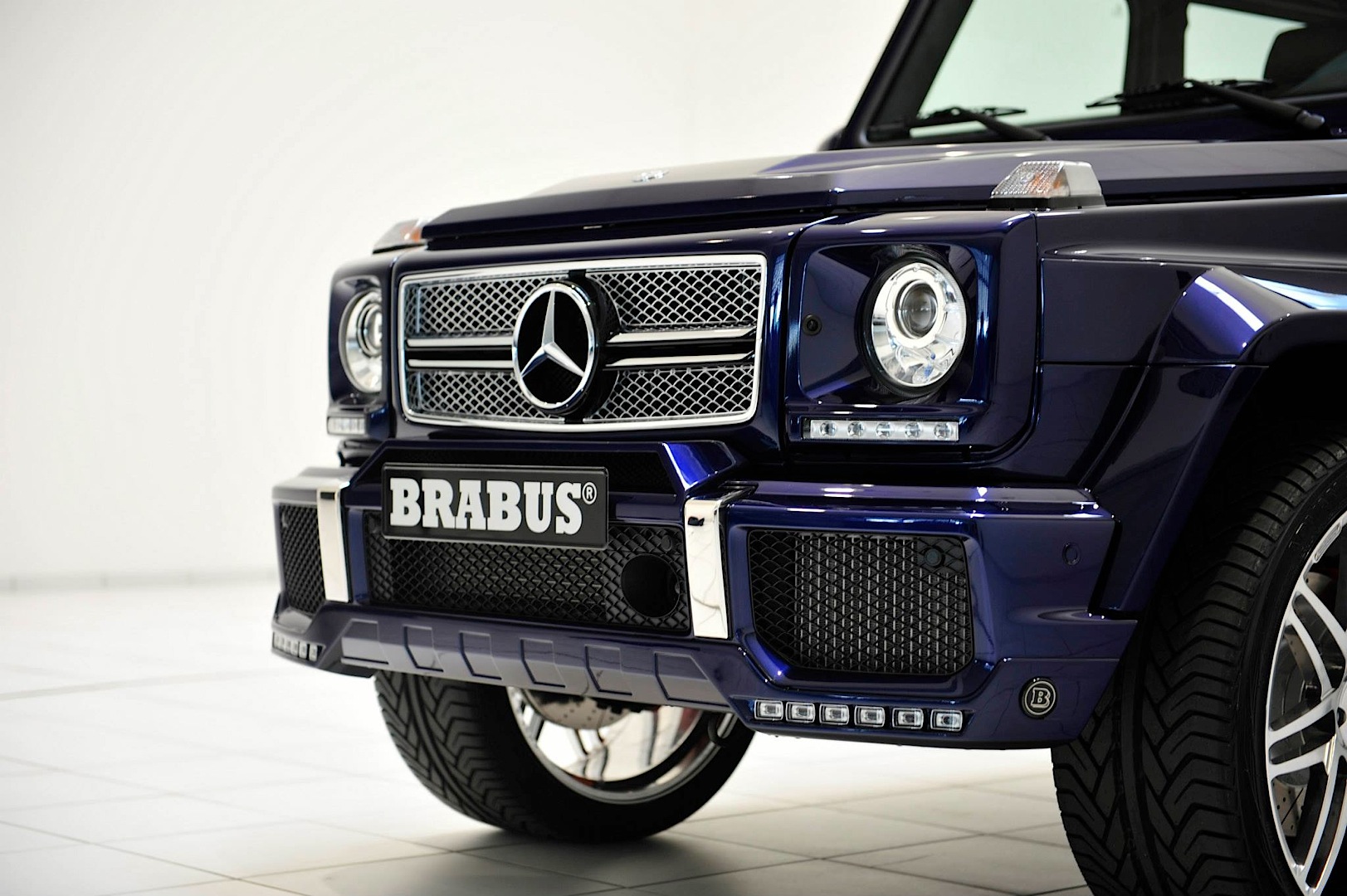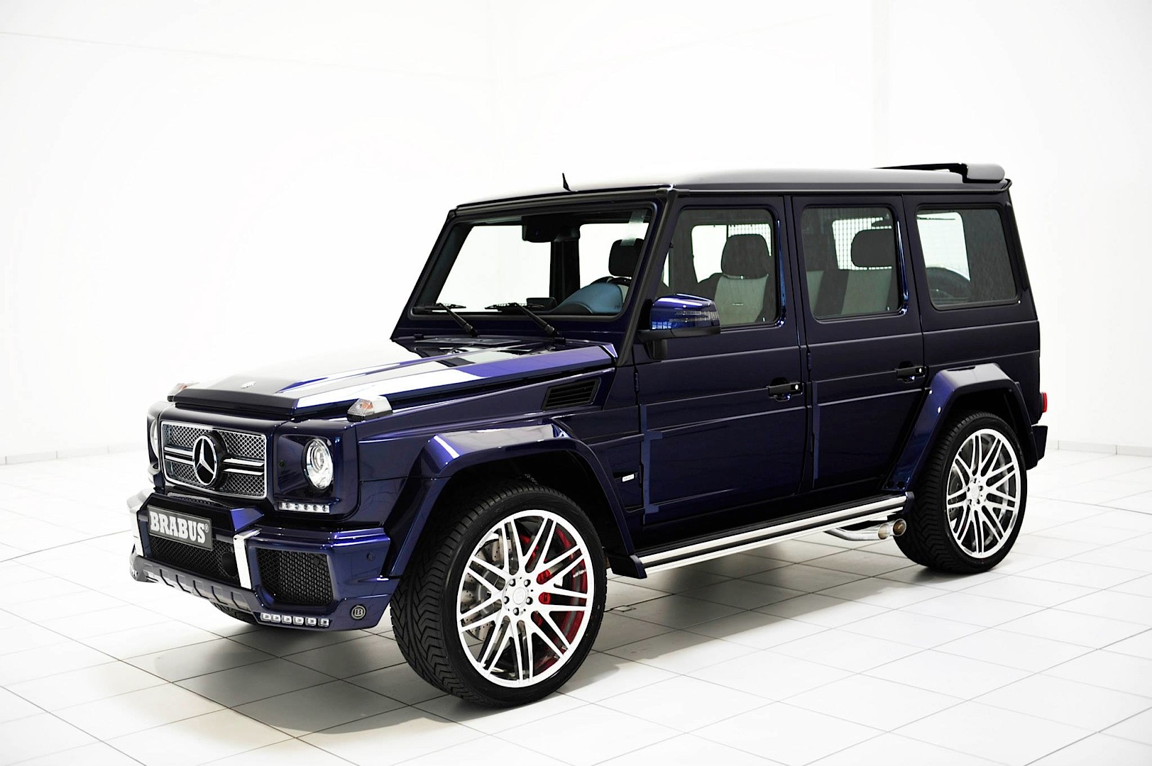 再者,選購Mercedes Benz G-Class的族群們往往具有難以馴服的靈魂,原廠規格有時不見得符合他們的胃口,因此訴諸改裝乃常見之事。今天帶給各位一部由知名改裝廠Brabus所操刀的Mercedes Benz G63 AMG,身披Brabus Widestar寬車體空力套件、足登23吋Brabus Monoblock F鏡面處理輪圈,其中前保桿下緣新增的LED日間行車燈辨識度極高,也是該款空力套件最迷人的亮點之一,而與常見的黑色或白色不同,這部粗曠風格德國悍將採用少見的Mystic Blue寶藍色塗裝,呈現出另類高質感風格。