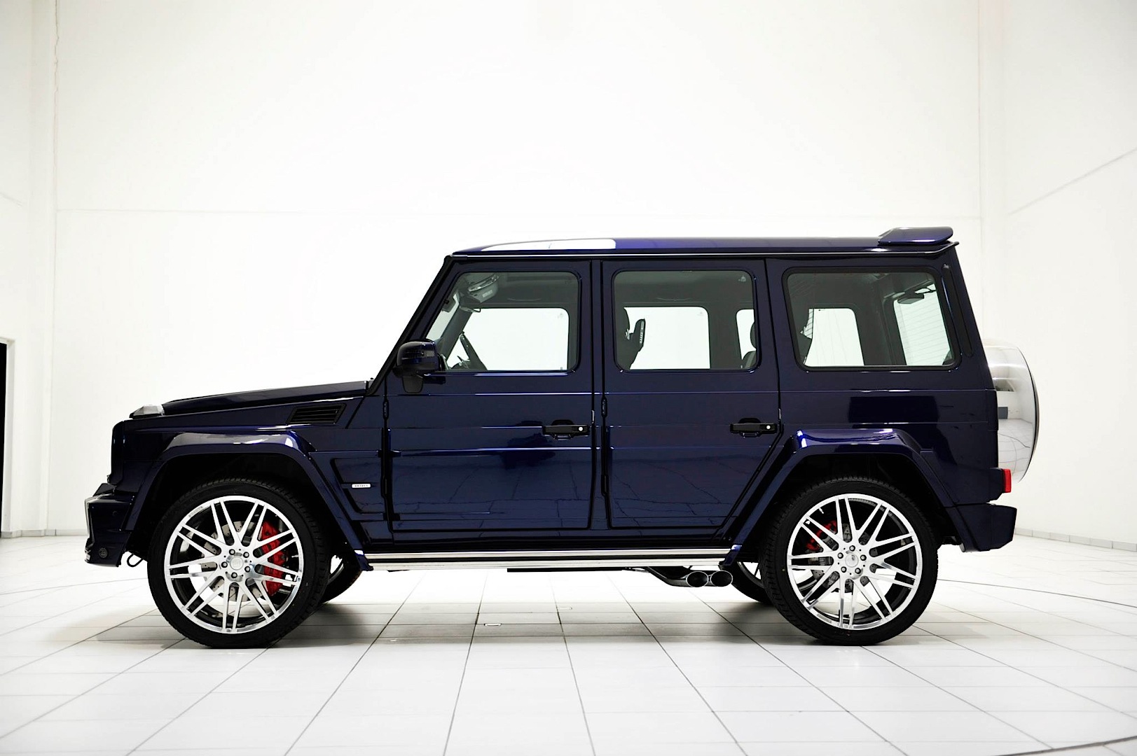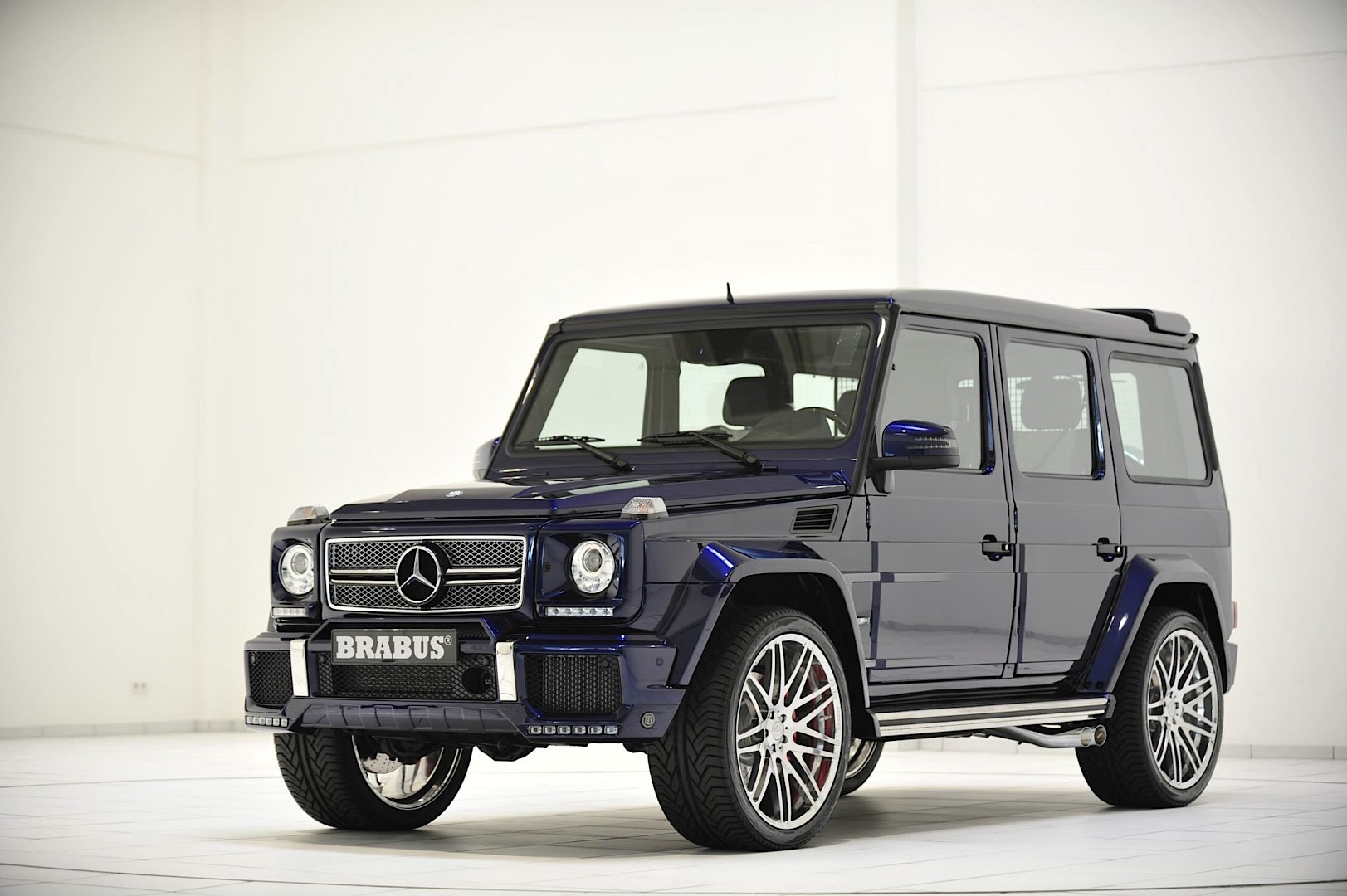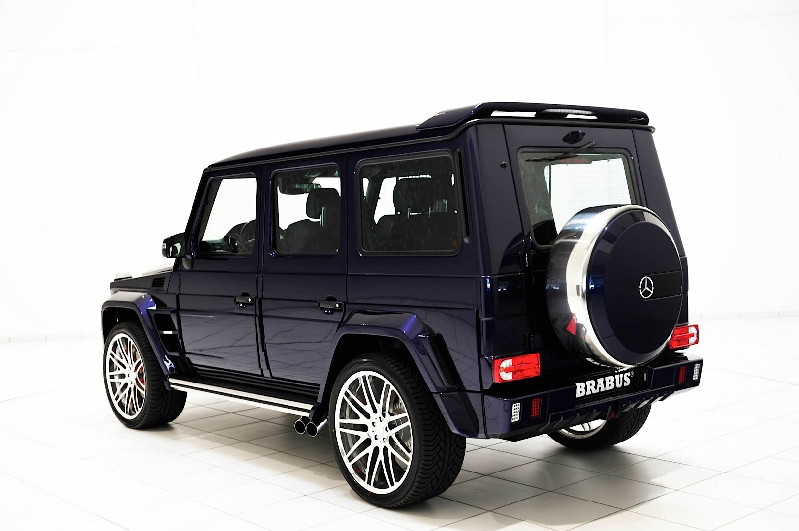 再者,選購Mercedes Benz G-Class的族群們往往具有難以馴服的靈魂,原廠規格有時不見得符合他們的胃口,因此訴諸改裝乃常見之事。今天帶給各位一部由知名改裝廠Brabus所操刀的Mercedes Benz G63 AMG,身披Brabus Widestar寬車體空力套件、足登23吋Brabus Monoblock F鏡面處理輪圈,其中前保桿下緣新增的LED日間行車燈辨識度極高,也是該款空力套件最迷人的亮點之一,而與常見的黑色或白色不同,這部粗曠風格德國悍將採用少見的Mystic Blue寶藍色塗裝,呈現出另類高質感風格。