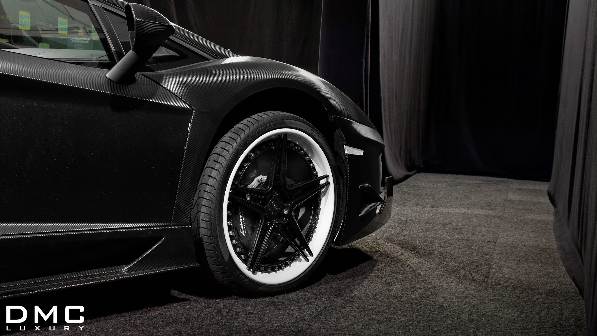 原來,這是換裝知名改裝廠DMC Germany、型號LP900-4 SV Limited Edition的空力套件之義大利超級跑車旗艦Aventador,包含前下巴、側裙、後下擾流板與後擾流尾翼等部品皆由碳纖維材質打造而成,輪圈選用ADV.1的產品並且施以黑白雙色塗裝,車身所包覆的3M碳纖維平光貼膜與DMC套件的亮面碳纖維紋路形成霸氣對比,即使靜靜地躺在現場展示,依舊散發出濃烈的肅殺氛圍。