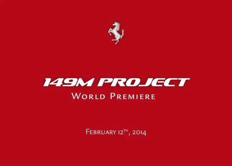 有鑑於此,Ferrari前幾天發布一張紅底網宣,寫上149M Project World Premiere(149M計畫世界首發)並附上2014年2月12日的日期,也就是說,他們將會於盛大的日內瓦車展(Geneva Motor Show)之前先有動作。沒有意外的話,取名149M的計畫變是意指新型Ferrari California的發表,而原廠極可能為了留點好戲給日內瓦車展,僅會在數天後發表概念車款。