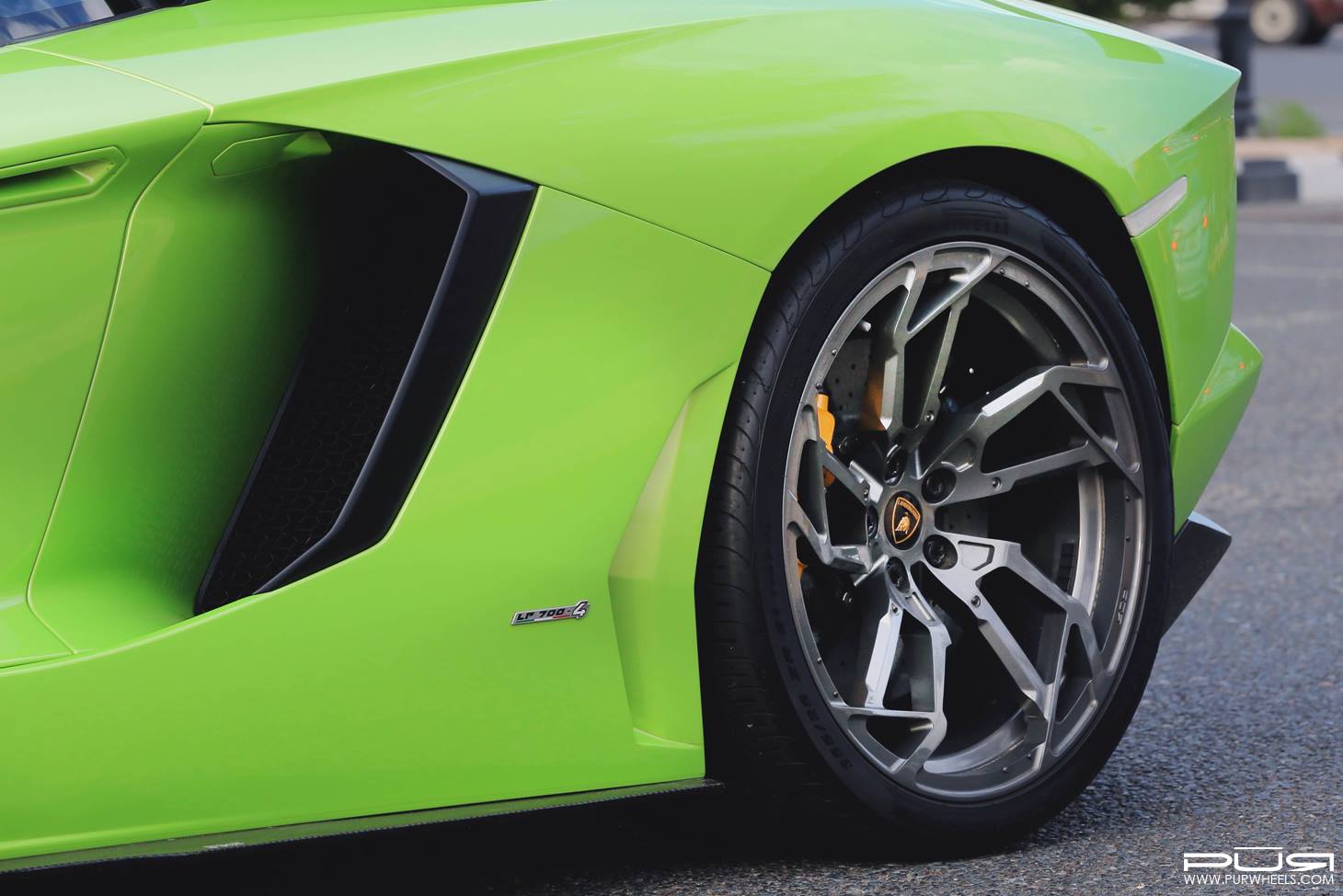 今天帶給各位一部來自科威特(Kuwaiti)的旗艦超跑Lamborghini Aventador LP700-4,車身便是耀眼的Verde Ithaca塗裝,搭配特選的黃色塗裝煞車卡鉗,車主另外換裝知名品牌PUR Wheels出品、型號RS05的輕量化輪圈,有點神似概念車款Lamborghini Egoista的造型相當醒目。除此之外,這部V12超跑還加裝碳纖維前下巴、側裙組、後下擾流板與後擾流尾翼等部品,視覺完整度極高。