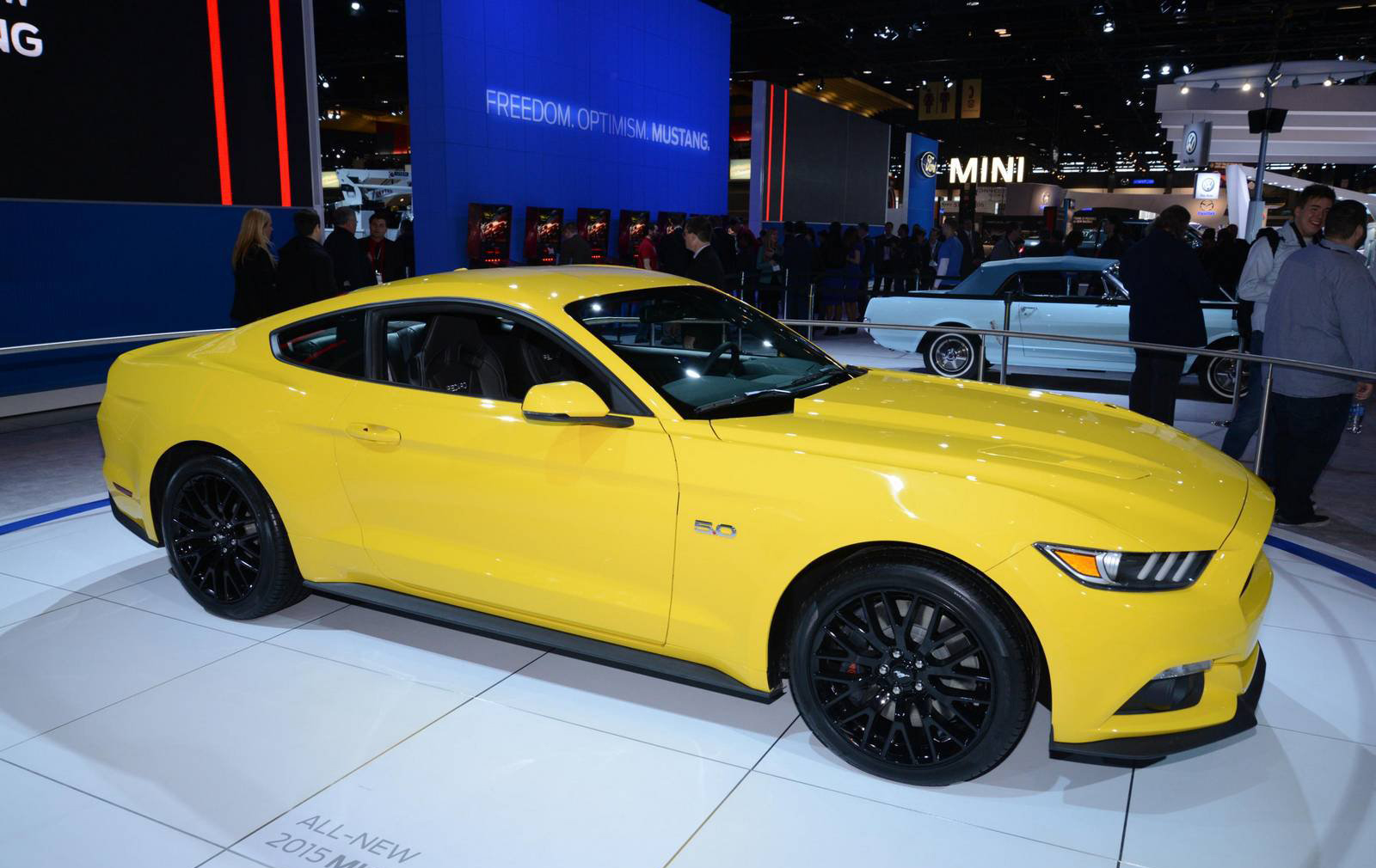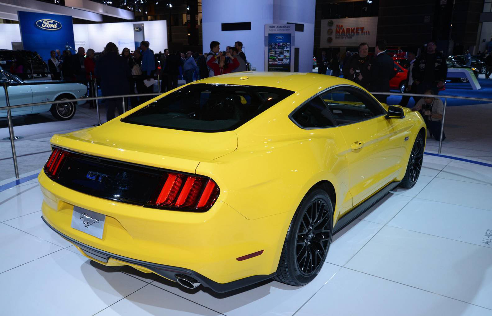 近來芝加哥車展如火如荼展開,就讓我們來看看2015 Ford Mustang及Shelby Mustang在Ford攤位上的姿態,身為一輛美國本土的性能車,Ford肌肉車的確吸引了不少的注意及話題。 2015 Ford Mustang將採用三種動力鏈3.7升V-6引擎、全新的EcoBoost2.3升以及更有力的5.0升V-8引擎,這樣的多樣化的確能夠滿足不同顧客的需求,那一具EcoBoost2.3升引擎採用缸內直噴技術,渦輪增壓系統使其最大馬力上看305hp、扭力為300 lb-ft。目前看來Shelby GT500還不會出現,也許她會以不同的樣貌現身,目前還沒有任何關於她的訊息,也許還要稍微等等,但是有另一車型可能我們會先見到,也就是Ford Mustang的wagon車型。